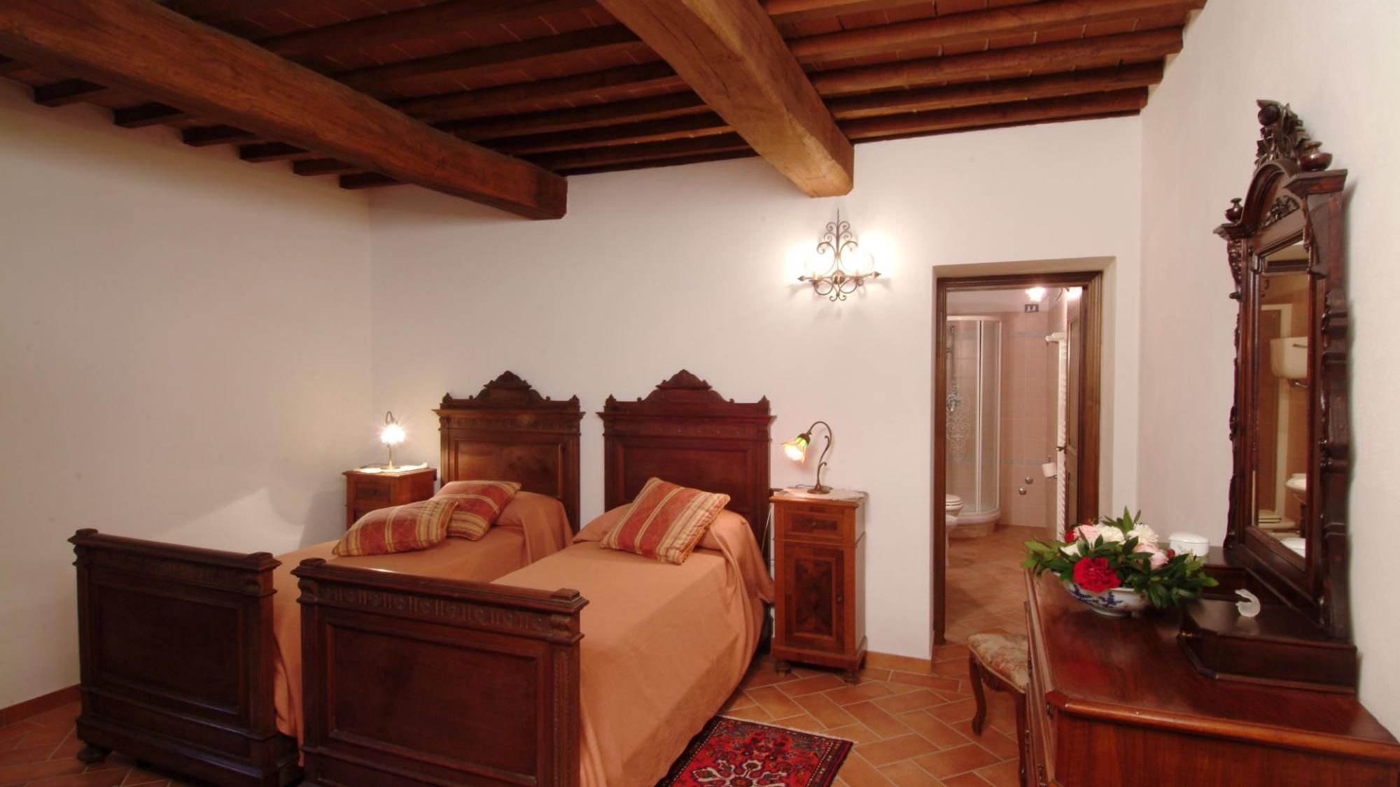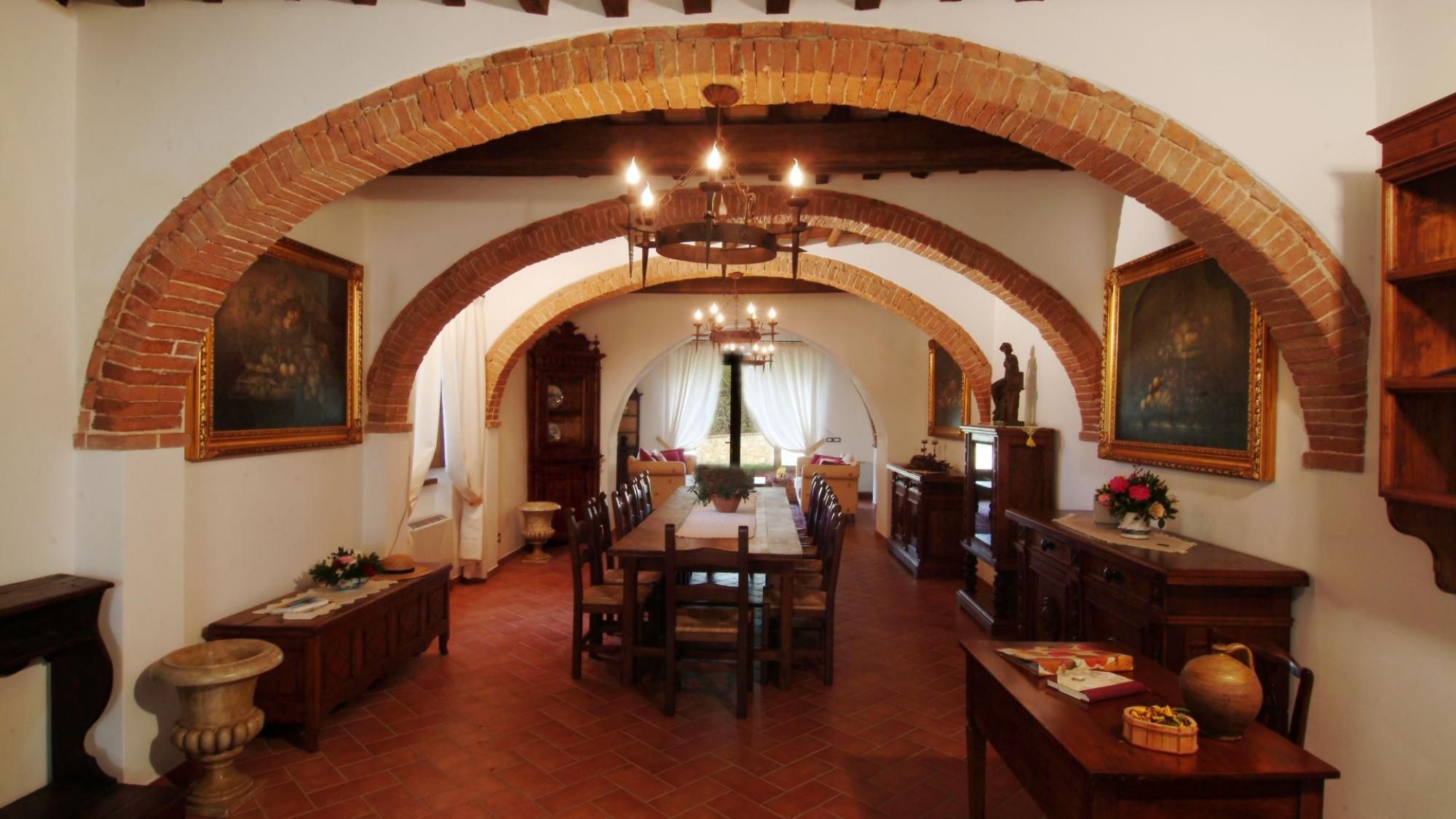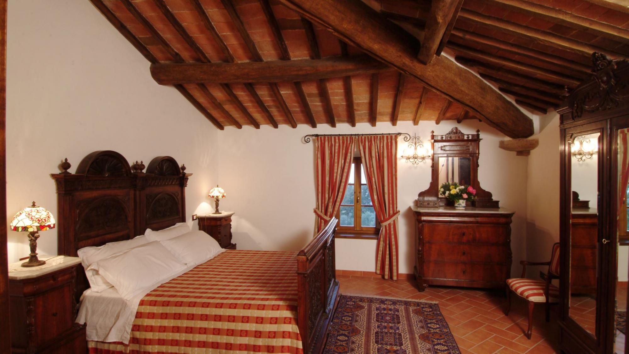 What this villa lacks in contemporary design, it makes up for with old-world character. It's traditionally Tuscan, from the timber ceilings down to the terracotta floors. While the dated and dark interiors won't be for everyone, we can't help but find it all rather charming – especially when the fire is blazing in the two brick hearths. On sunny days, the sprawling garden is a lovely spot to unwind, boasting a private pool and alfresco dining area. You can prepare meals in the pizza oven, or your host can arrange for a private chef to whip up an Italian feast. As for location, the Val d'Orcia is on your doorstep, with Pienza and Monticchiello both easily accessible by car.