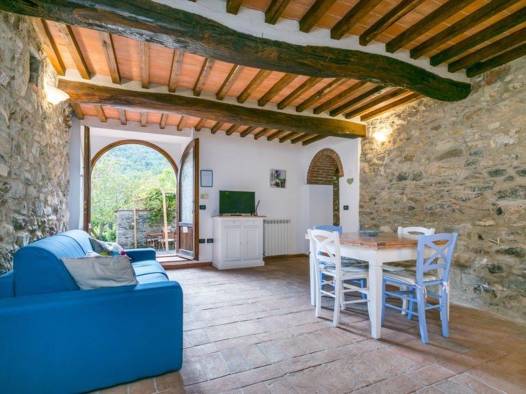 The house is very remote and difficult to reach via a rocky gravel path (approx. 1 km). Only those looking for peace and seclusion are in the right place here. The kitchen equipment and the garden furniture are a bit old, but the vine-covered roof provides pleasant shade... The shower needs to be replaced, otherwise the bathroom is fine. The living units are separate and each has its own terrace. Outdoor area.