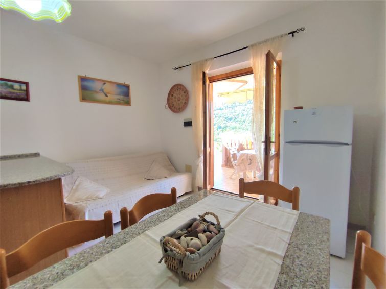 "Terrazza Cala Rossa", 2-room apartment 45 m2 on 1st floor. Bright, simple furnishings: living room with 1 double sofabed, TV and fan. Exit to the terrace. 1 room with 1 x 2 bunk beds, 1 double bed and shower/bidet/WC. Open kitchen (4 hot plates, oven) with dining table. Shower/bidet/WC.