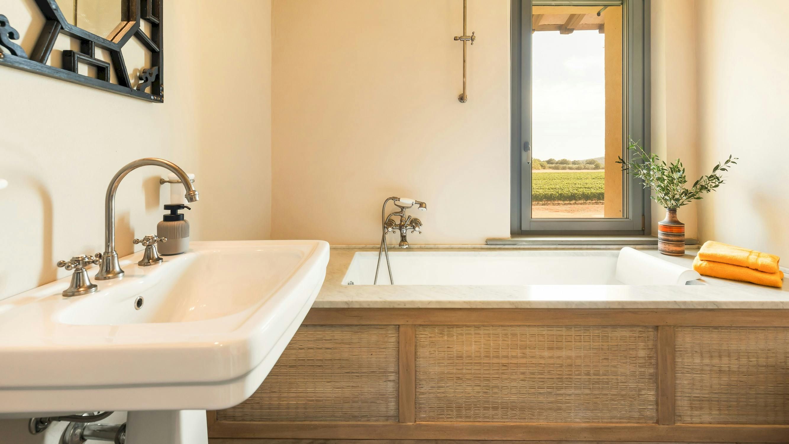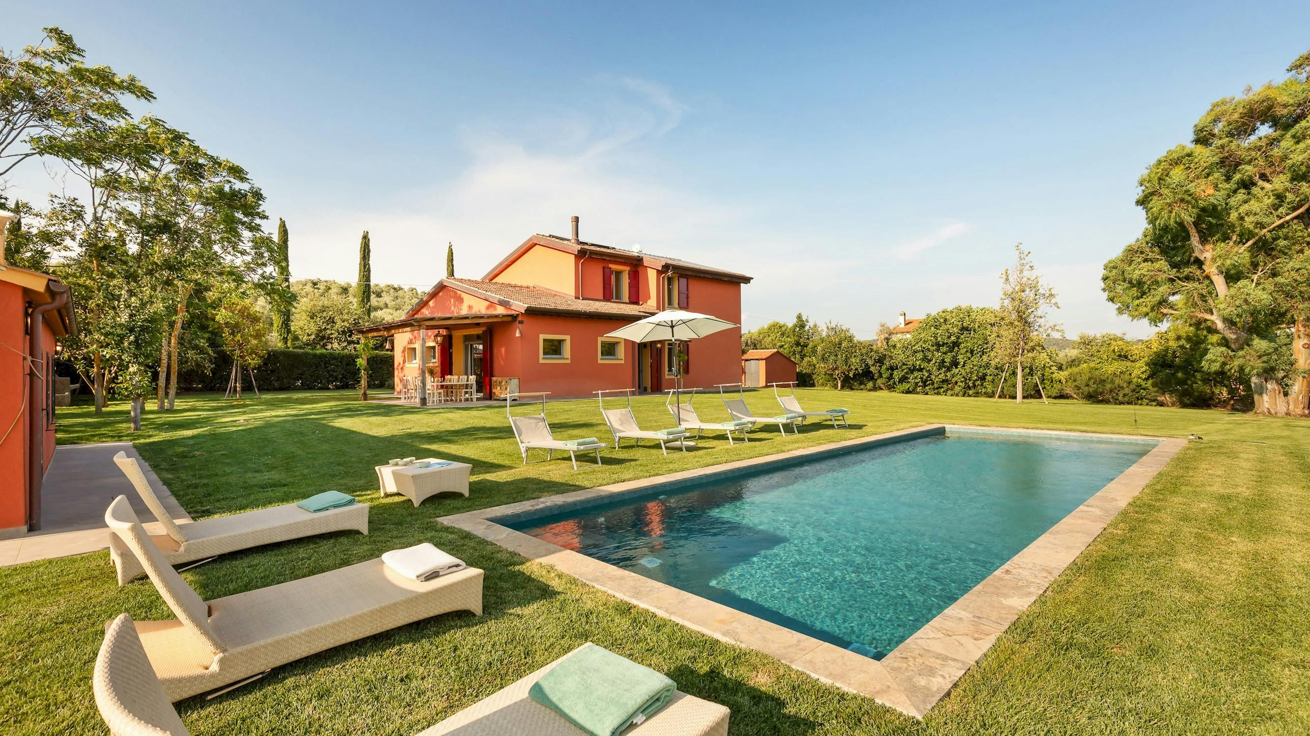 Nestled in the heart of the peaceful Maremma countryside, this charming home has tranquillity running through its core. With contemporary interiors, it’s made up of the main villa, sleeping eight, and a separate annexe that gives one guest some extra privacy. But for us, the star of the show is the outdoor space. Including the family vineyard, there’s an impressive amount of room to spread out here and soak up the Tuscan sun. With views of the hills surrounding you, it’s just the spot to relax, and the private pool and sun-drenched terraces are just the place to do so.