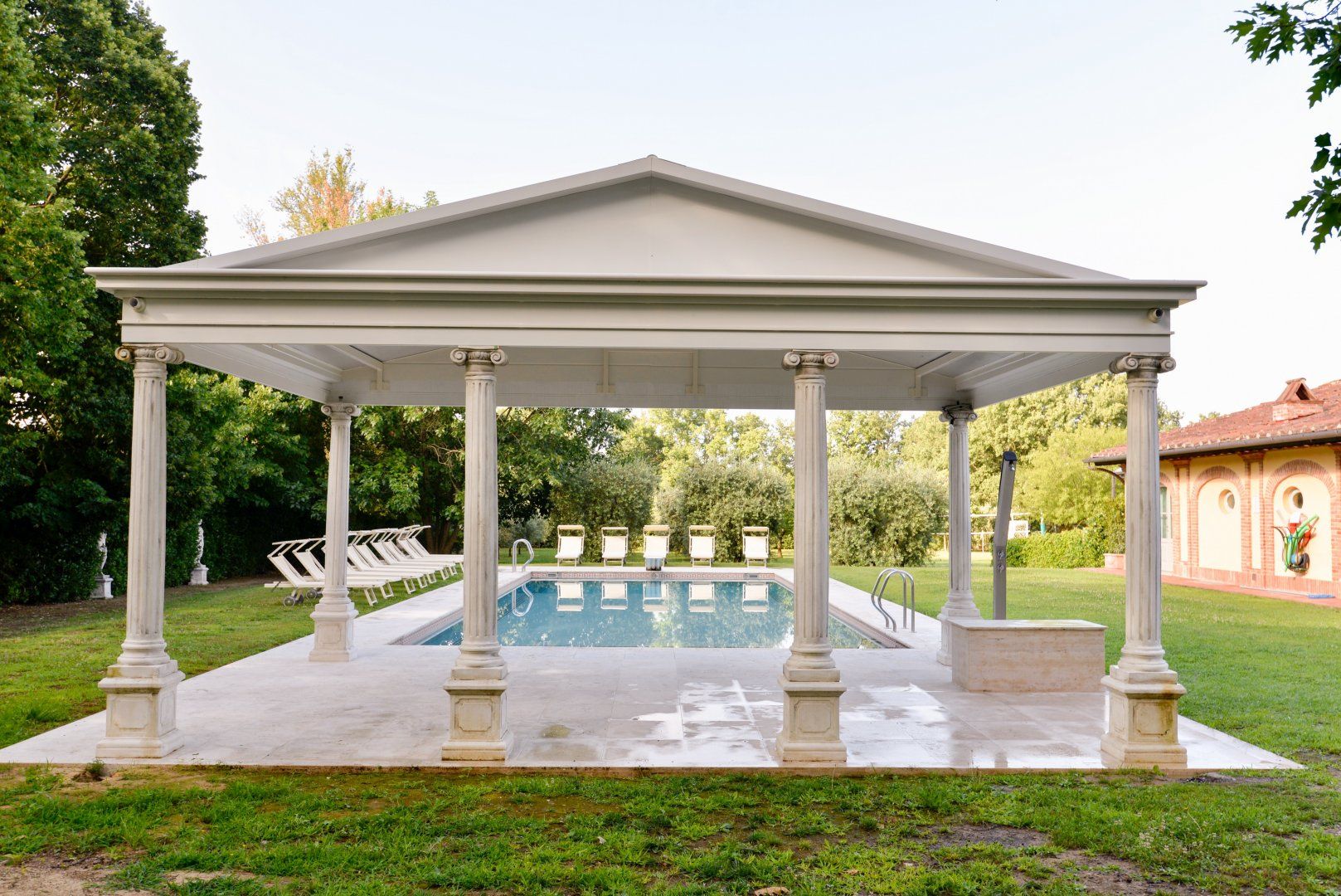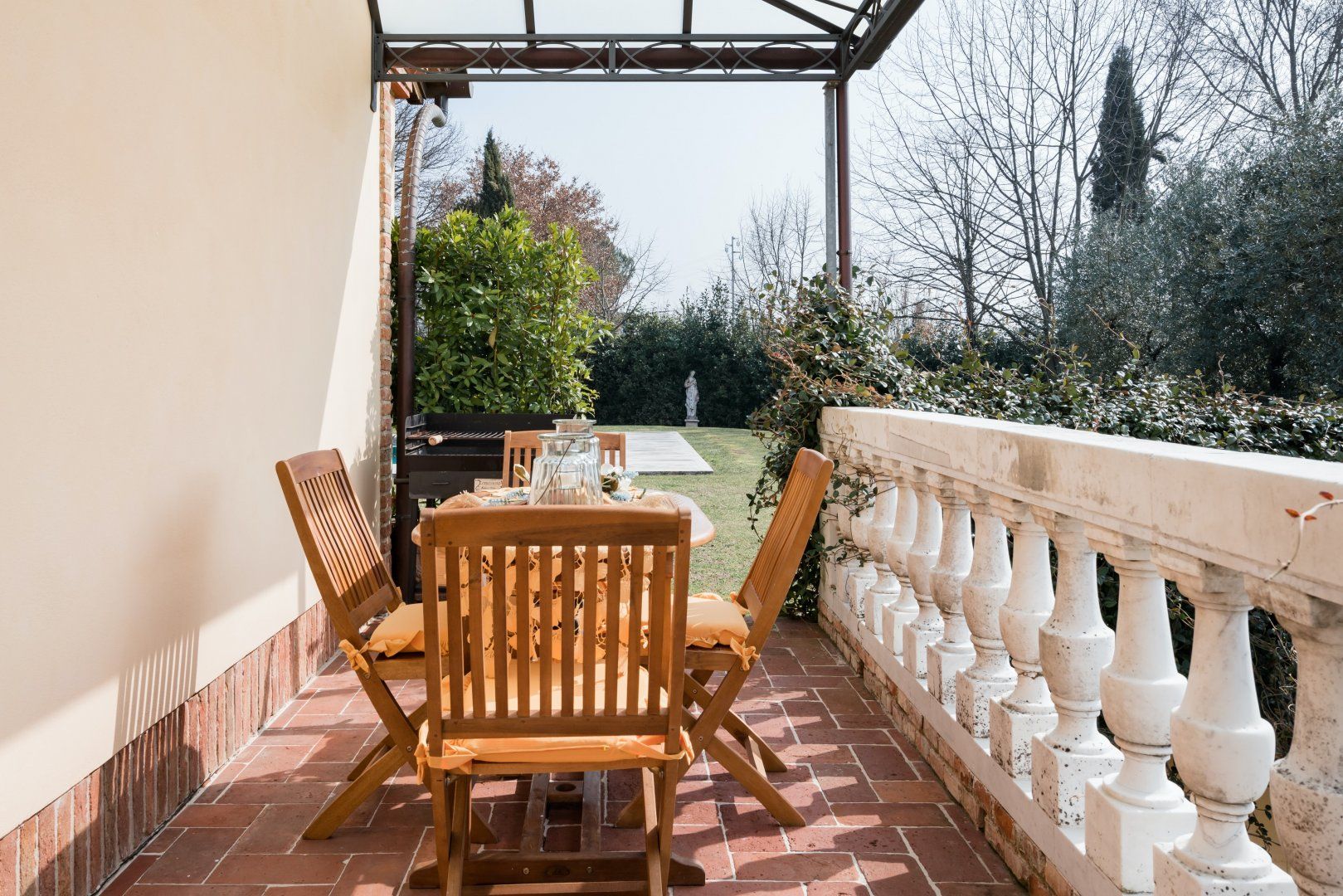 From its tiled floors to its beamed ceilings, there’s an air of old Tuscan tradition here, bringing together classical and contemporary furnishings in elegant fashion. We love the large windows here that give way to views of the shared grounds – a lush green garden dotted with centuries-old trees and a glistening communal pool framed by sun loungers. Spend your days taking cool dips in its waters, soaking up the sun on the deck chairs and enjoying the table tennis, foosball and football field on offer. You’ve also got a private alfresco dining area adjacent to your apartment, the ideal spot to gather for sunny breakfasts or a celebratory barbecue feast under the stars.