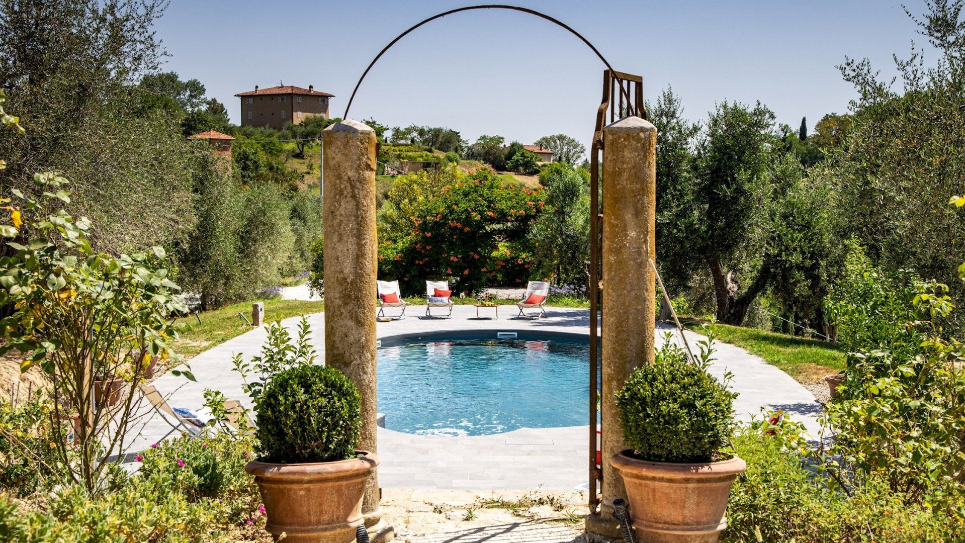 Located within the rural Tuscan countryside in the commune of Palaia – this impressive 15th-century villa is well-equipped for families and large groups. While the striking interiors won’t be to everyone’s taste, the vast lush gardens, private swimming pool, and jacuzzi guarantee a relaxing Tuscan retreat. Designed with entertaining in mind, the outdoor dining area complete with a gazebo is perfect for group meals as the sunsets. Set upon a private estate of around thirty hectares, you needn’t explore further than your authentic surroundings, but if you’re looking for a day trip – the town of Palaia isn’t too far.