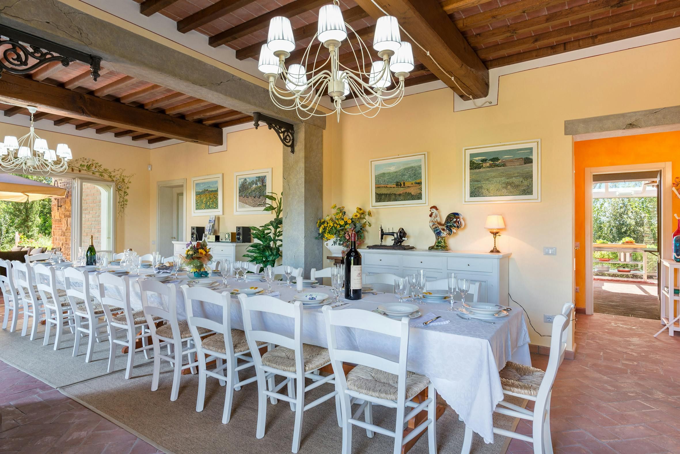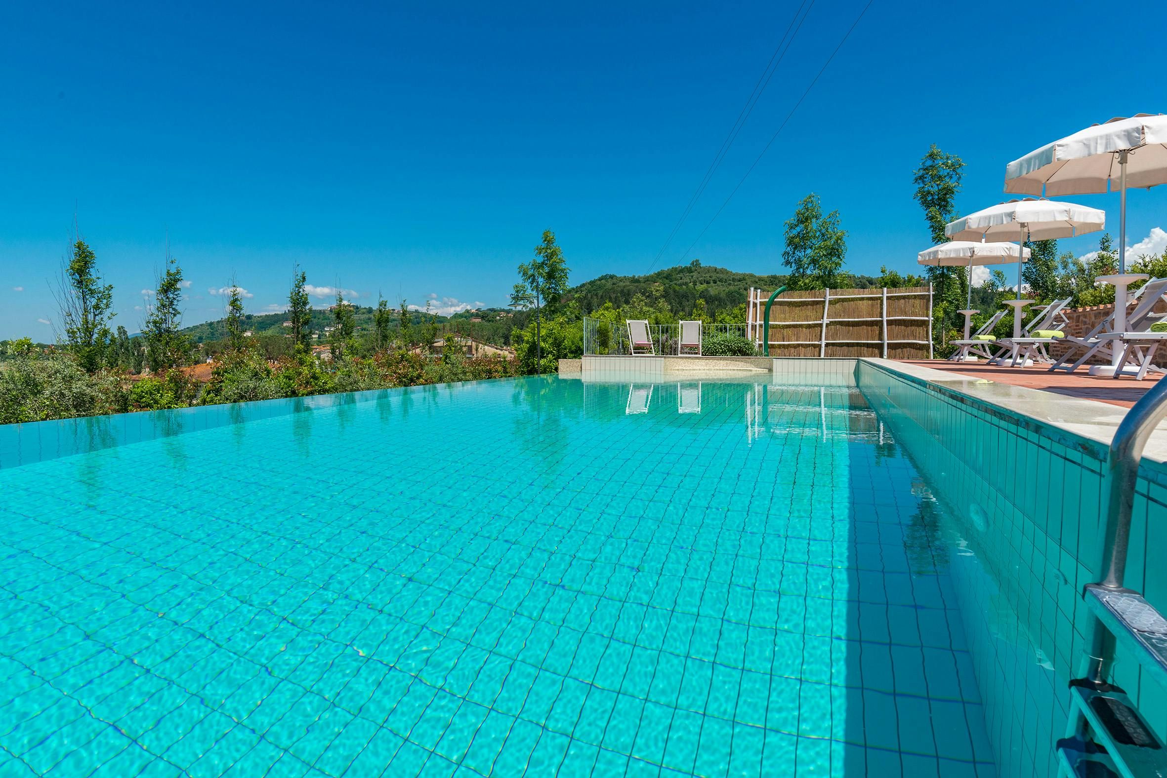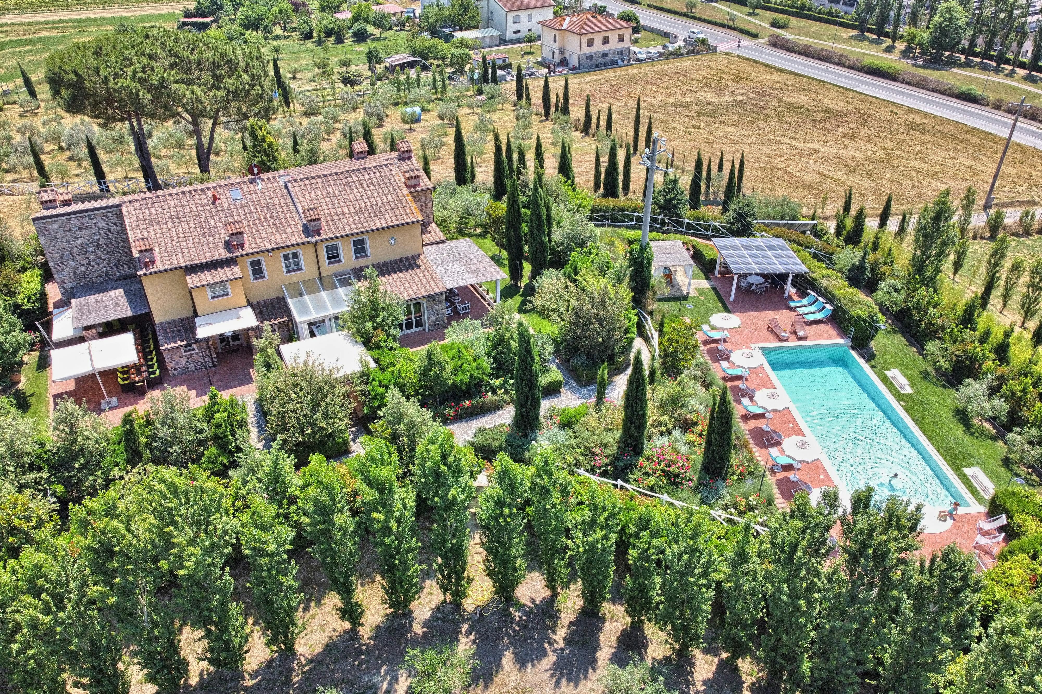 Set in the hills of Pisa, this villa offers a relaxing retreat from the fast pace of modern life. With a main villa and multiple apartments with separate kitchens and living areas, there are plenty of private spaces if you’re visiting as a large group. For socialising altogether, you’ll find multiple spots around the gardens, with shaded terraces, alfresco dining spaces, a children’s playground, an outdoor exercise area and a private pool. This 18th-century farmhouse is on the traditional side, so expect some older features, though we think that’s part of the charm of this home. Conveniently located between Valdera, Volterra, San Gimignano, and Pisa, you’ll be able to make the most of the Tuscan countryside and vineyards here.