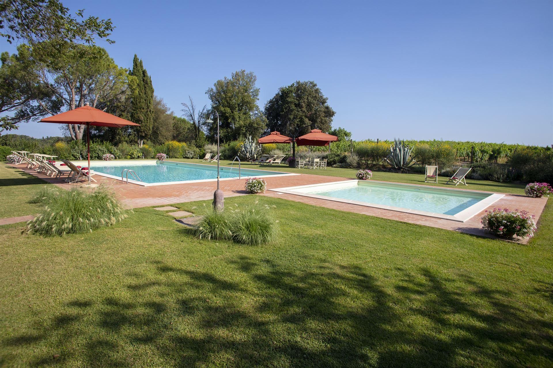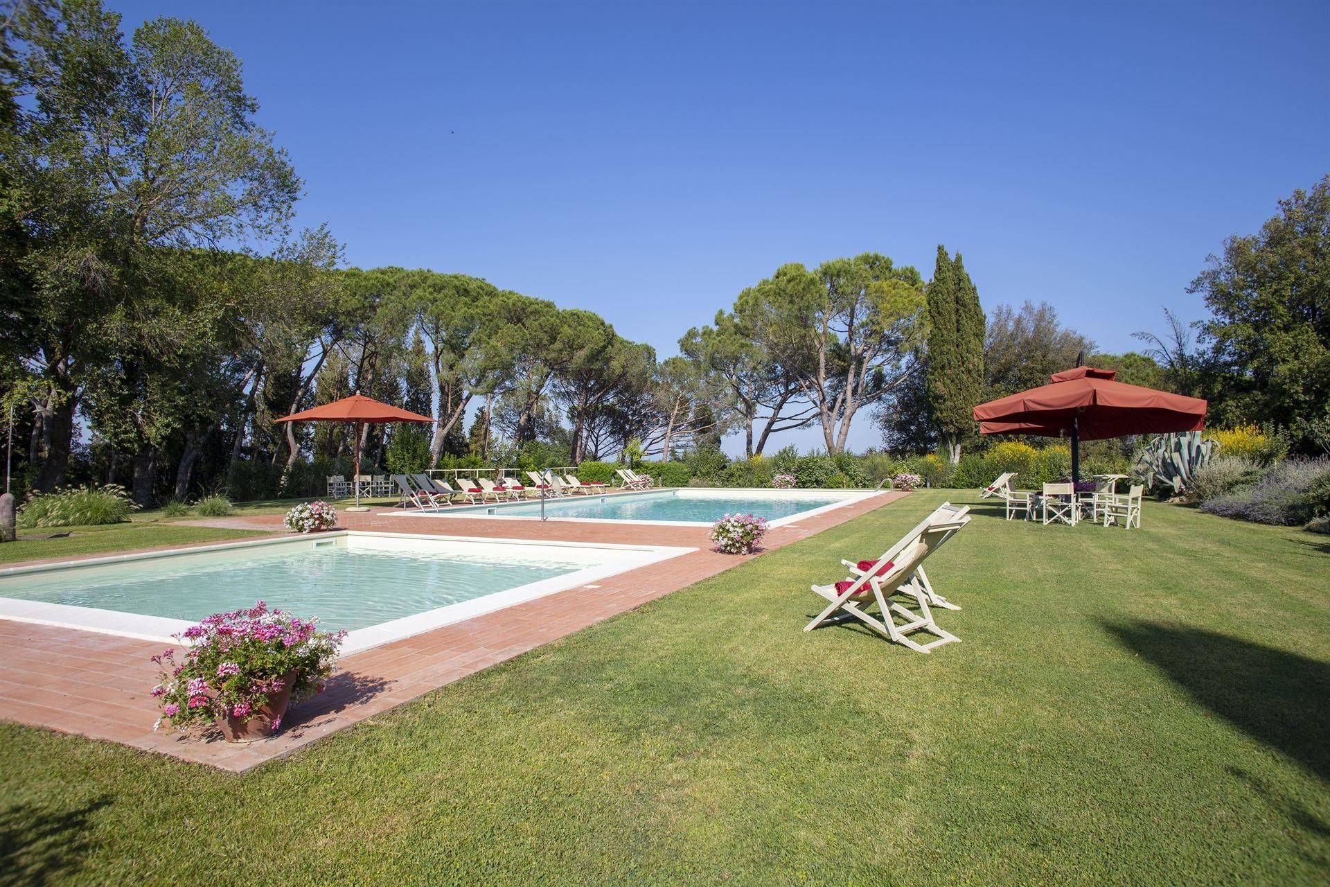 Nestled on a wine-producing estate in the heart of Tuscany, this traditional villa is built for grand gatherings. There's an extensive garden with not one but two pools, as well as a sprawling terrace that has alfresco feasts written all over it. With ten bedrooms, ten bathrooms, and an array of cosy lounges, there's more than enough room indoors to spread out. The design is a little dated, but we think there's a certain charm to it. And we can't forget the views. Tuscany's rolling countryside beckons from every angle. When you're ready to explore, you'll find Pisa, Florence, Palaia, and Volterra all within easy driving distance.