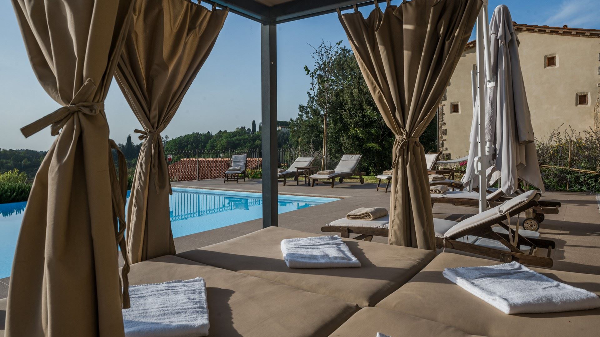 Elegant and attractive, this home boasts a peaceful location in the green hills of the Valdera Valley, southeast of Pisa. It feels a million miles from the hustle and bustle, but it’s close to the restaurants and shops of the village of Palaia. You can also easily visit Volterra and San Gimignano – if you can tear yourselves away from the private pool, that is. The south-facing terrace is a real suntrap, and you can dine alfresco thanks to the barbecue and pizza oven. There’s a main house and a converted barn, making this home ideal for a couple of families travelling together.