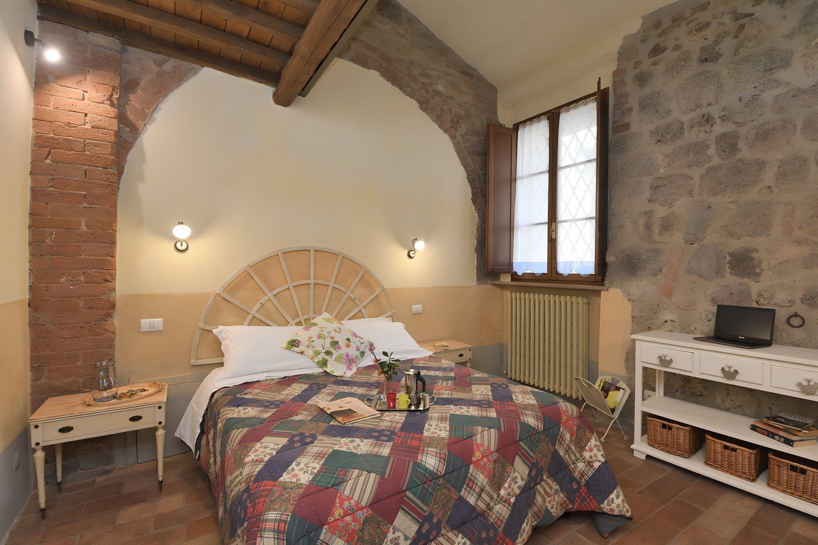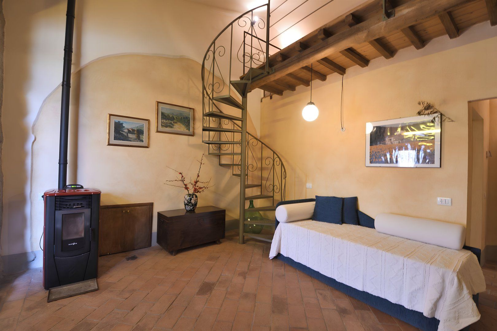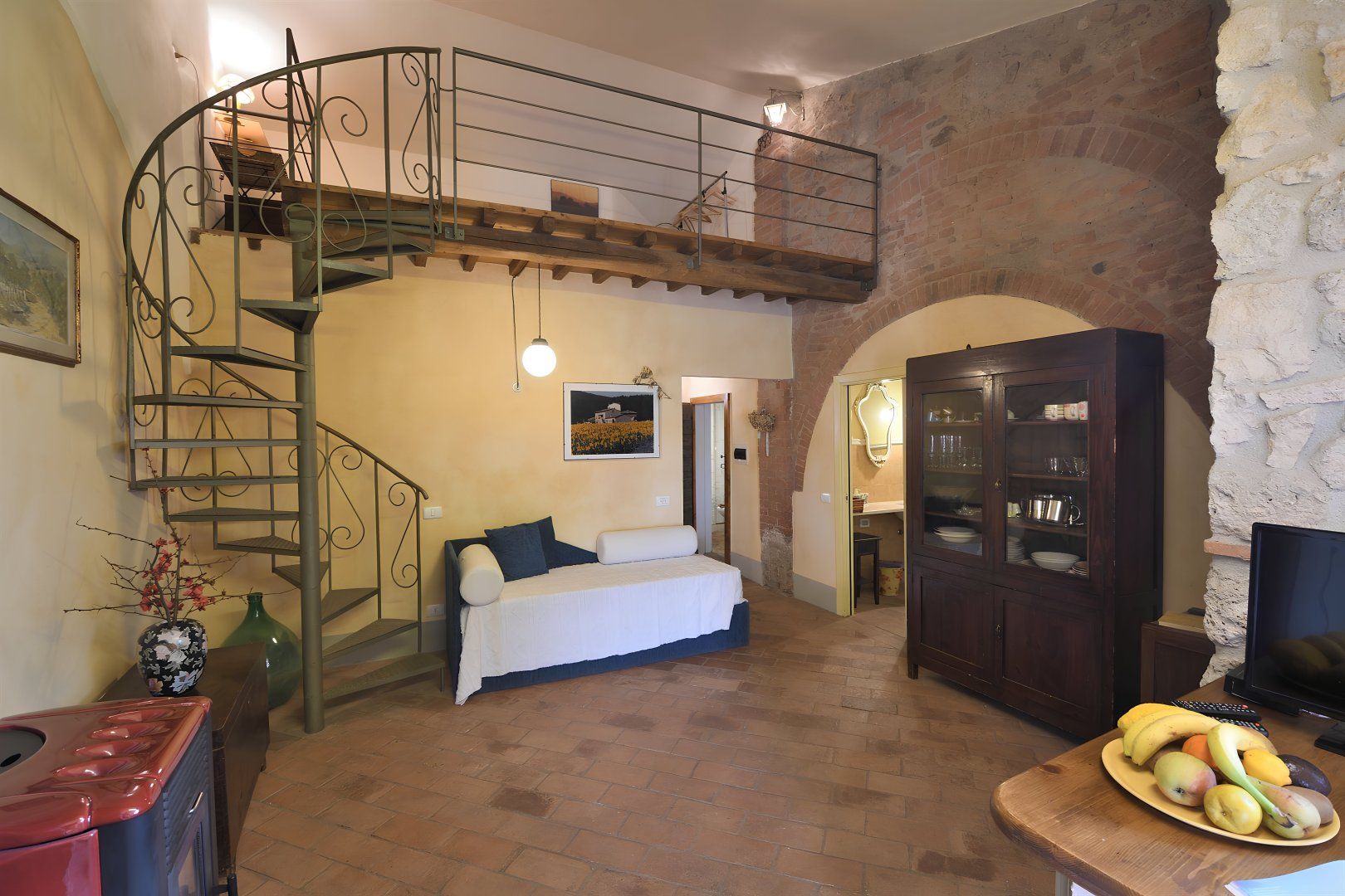 Once an old watermill, this apartment sits within an estate of cottages, just a stone's throw from Siena. Prepare meals in the kitchen, or head to the communal terrace to grill dishes on the barbecue. The designs are somewhat dated, and at full occupancy, one guest will be sleeping on the mezzanine, but with a shared pool, garden and multiple spots to enjoy the beauty of this rural setting, you’ll likely spend most of your time outside. Your host can guide you to the area's hidden gems, from picturesque freshwater swimming spots to the Royal Golf La Bagnaia course. With the charming town of Sovicille nearby and easy access to Florence, every day holds a new adventure.