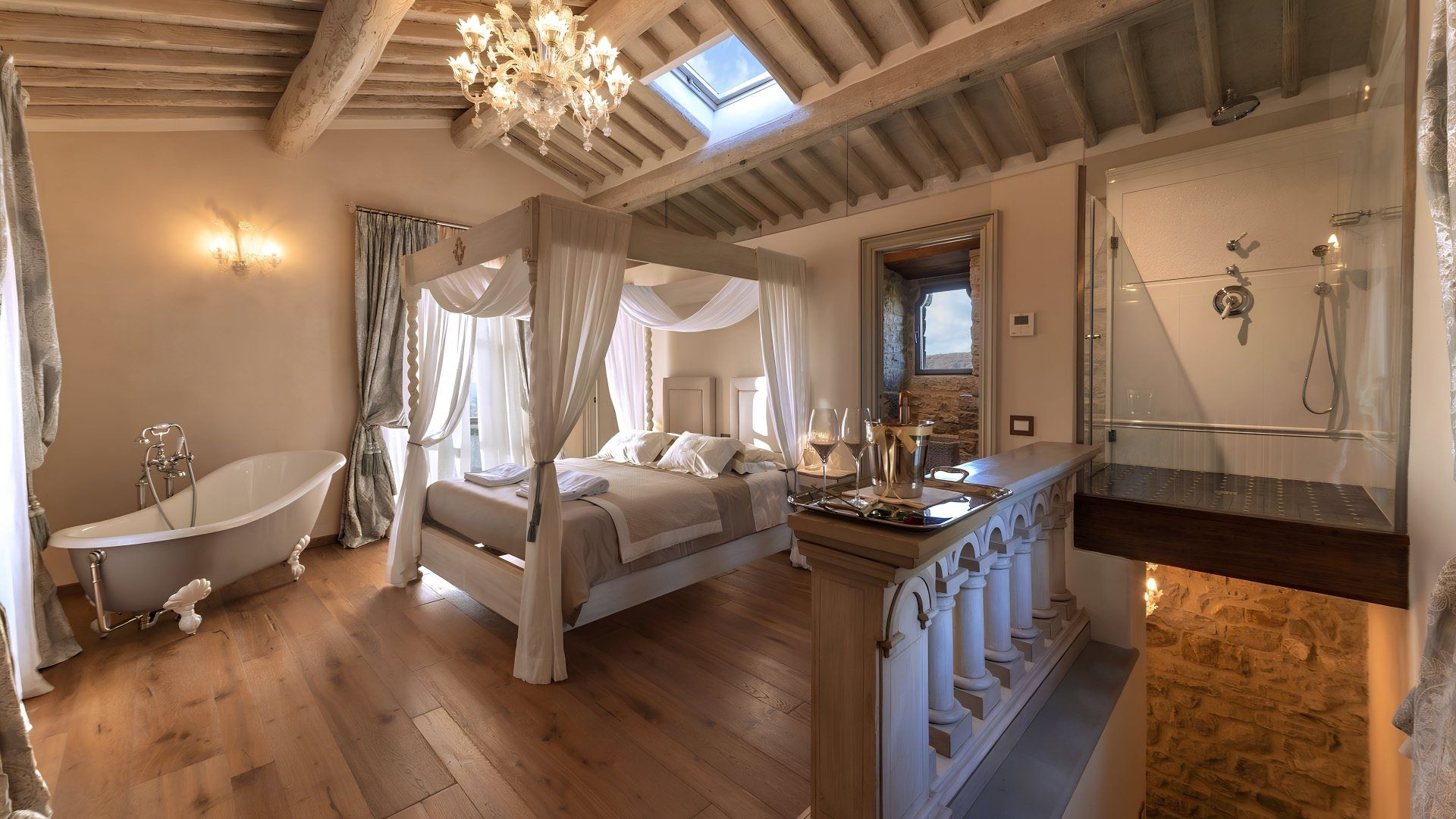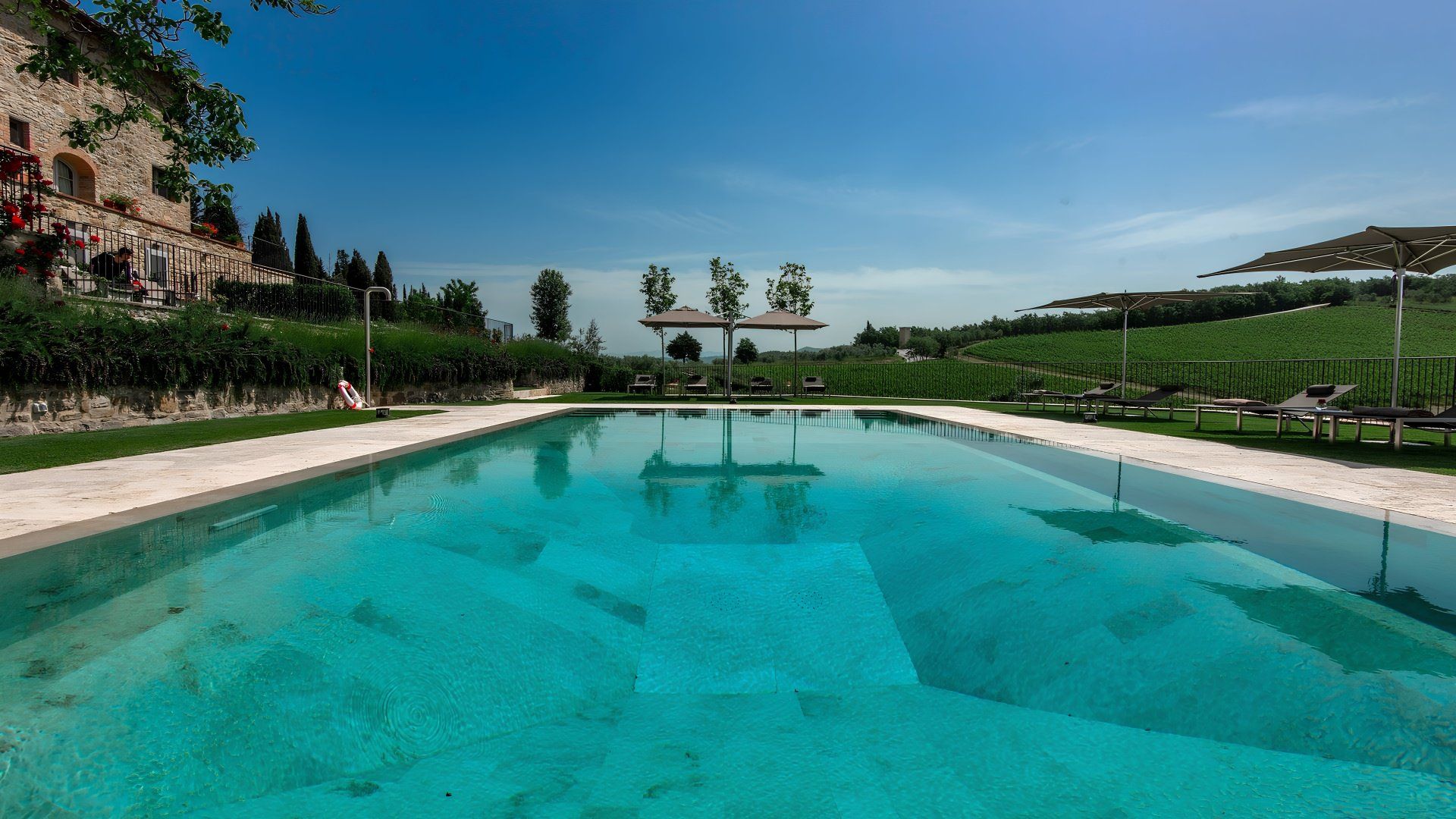 This home is in the heart of Chianti country, just outside of pretty Panzano in Chianti. It’s been crafted from Tuscan stone and boasts a watch tower with a romantic bedroom. You’ll have a private pool to cool off in, and access to a Jacuzzi and sauna when you need to take your vacation relaxation to the next level. We love the terraced gardens and the wonderful views of the vineyards and countryside. You’re only a twelve-minute drive from Greve in Chianti, and Florence and Siena are also within easy reach for day trips – we’d definitely recommend hiring a car to make the most of your stay.