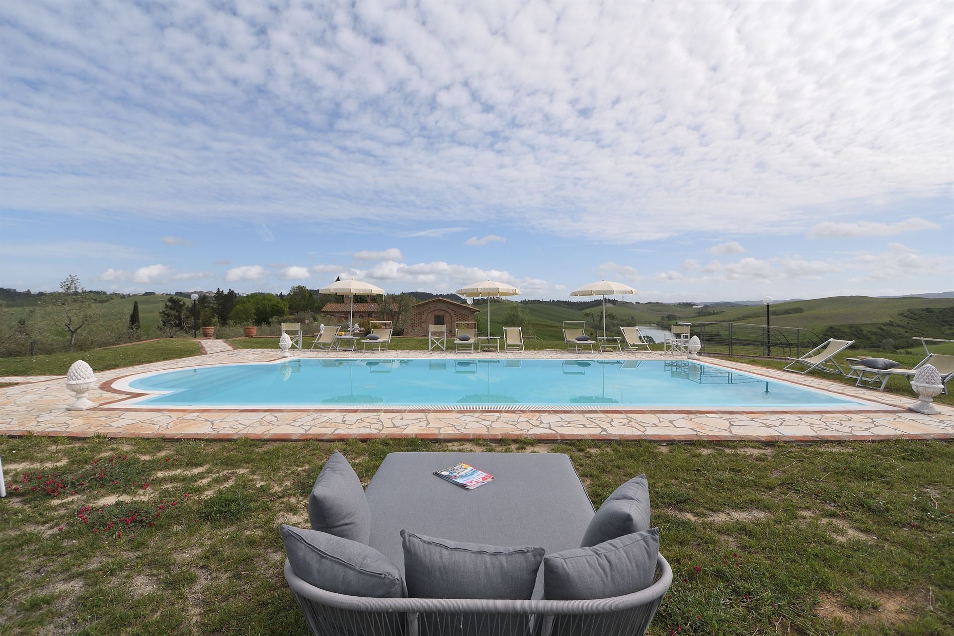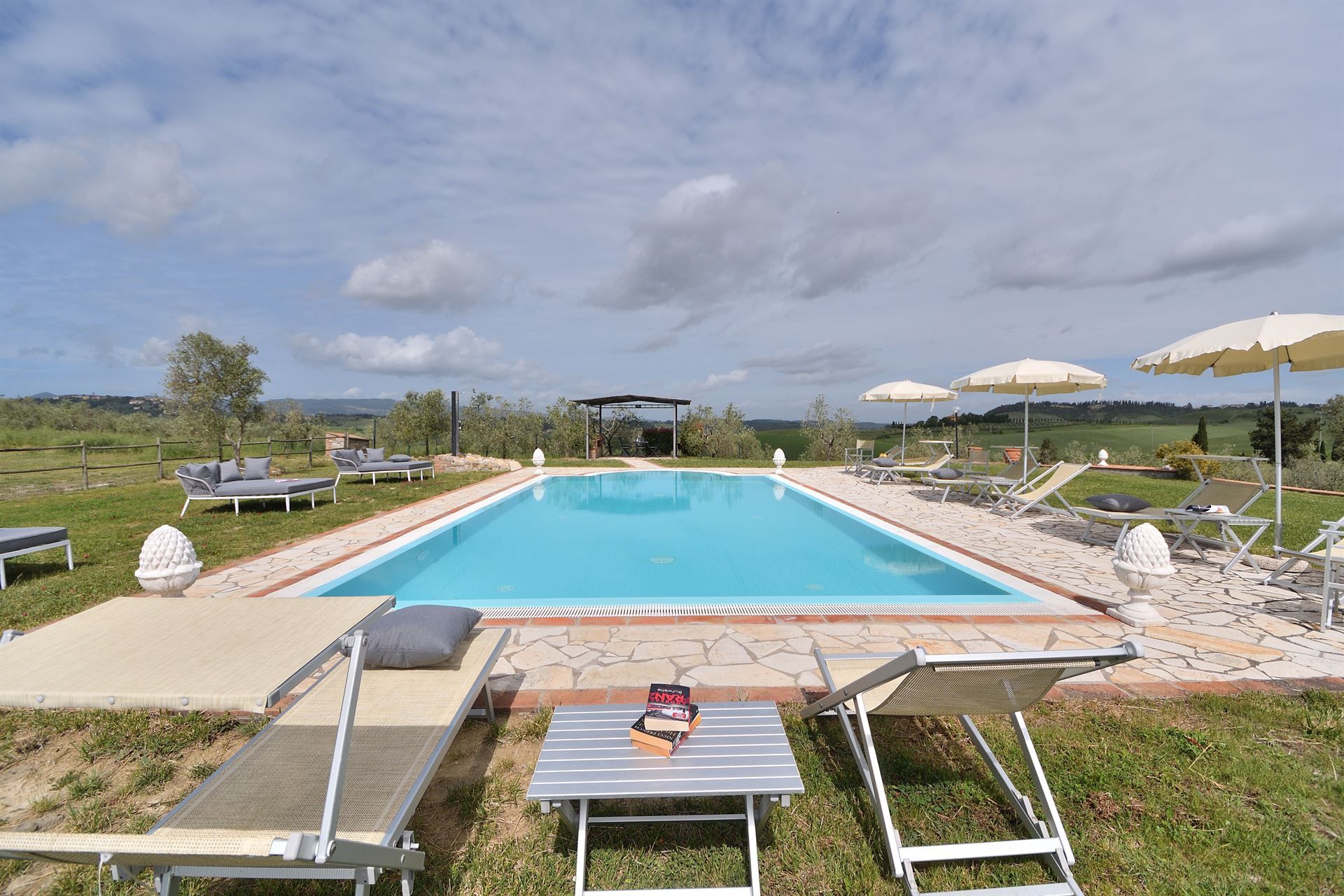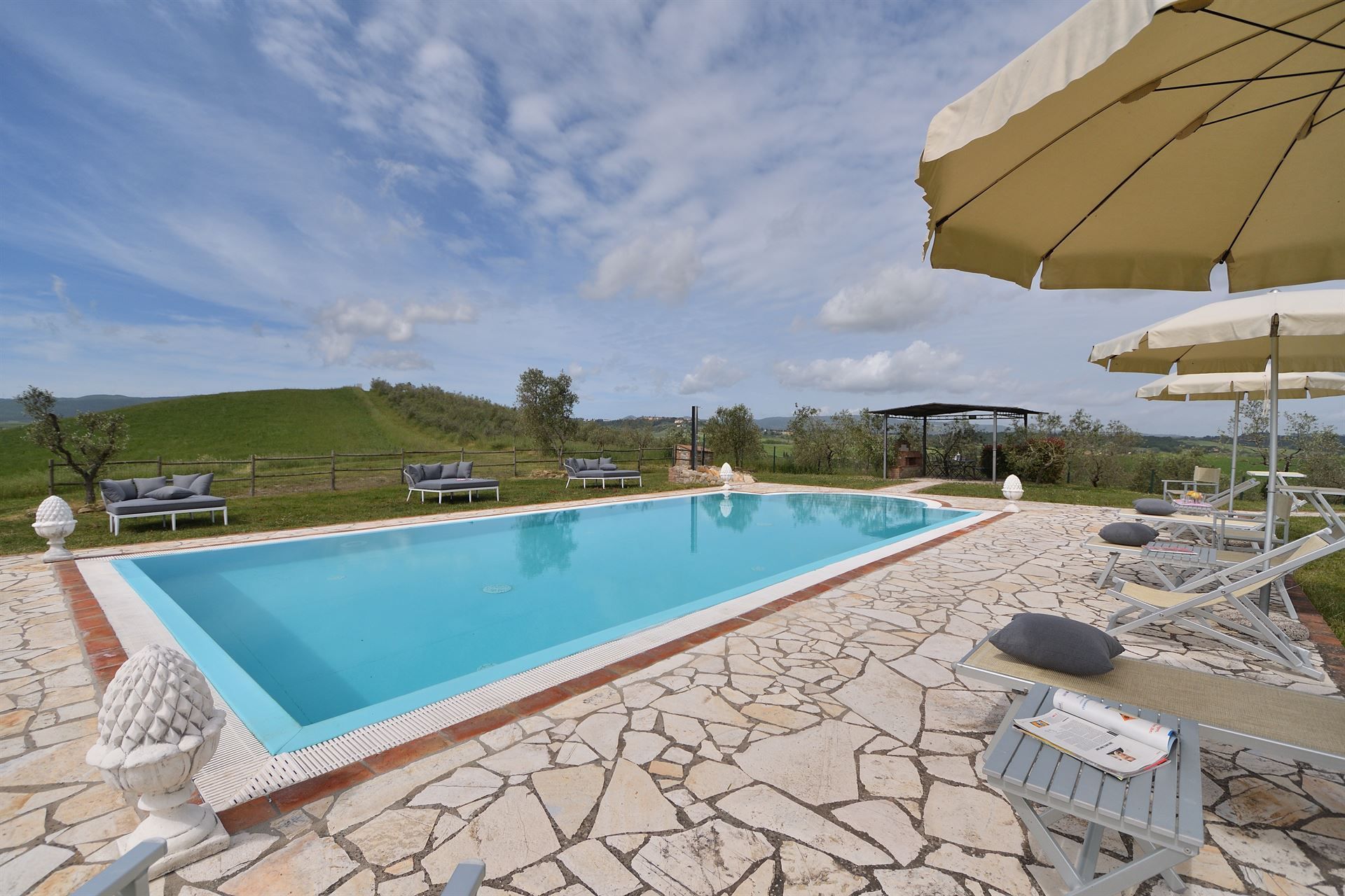 Nestled on a farm amongst fields and olive groves, this charming villa offers a tranquil escape in the heart of the Tuscan countryside. Relax on the spacious terraces, each with breathtaking views, or unwind by the hillside pool – it’s all about taking it easy here. Location-wise, this home is perfectly positioned for day trips to Pisa and Volterra. Closer to home, the small town of Fabbrica is just four kilometres away, where you’ll find a restaurant and grocery shop. Slightly further on, you can reach Peccioli in under twenty minutes, where a greater selection of authentic Italian eateries awaits.