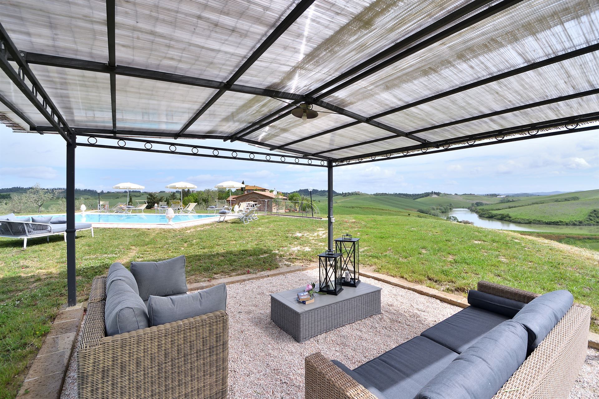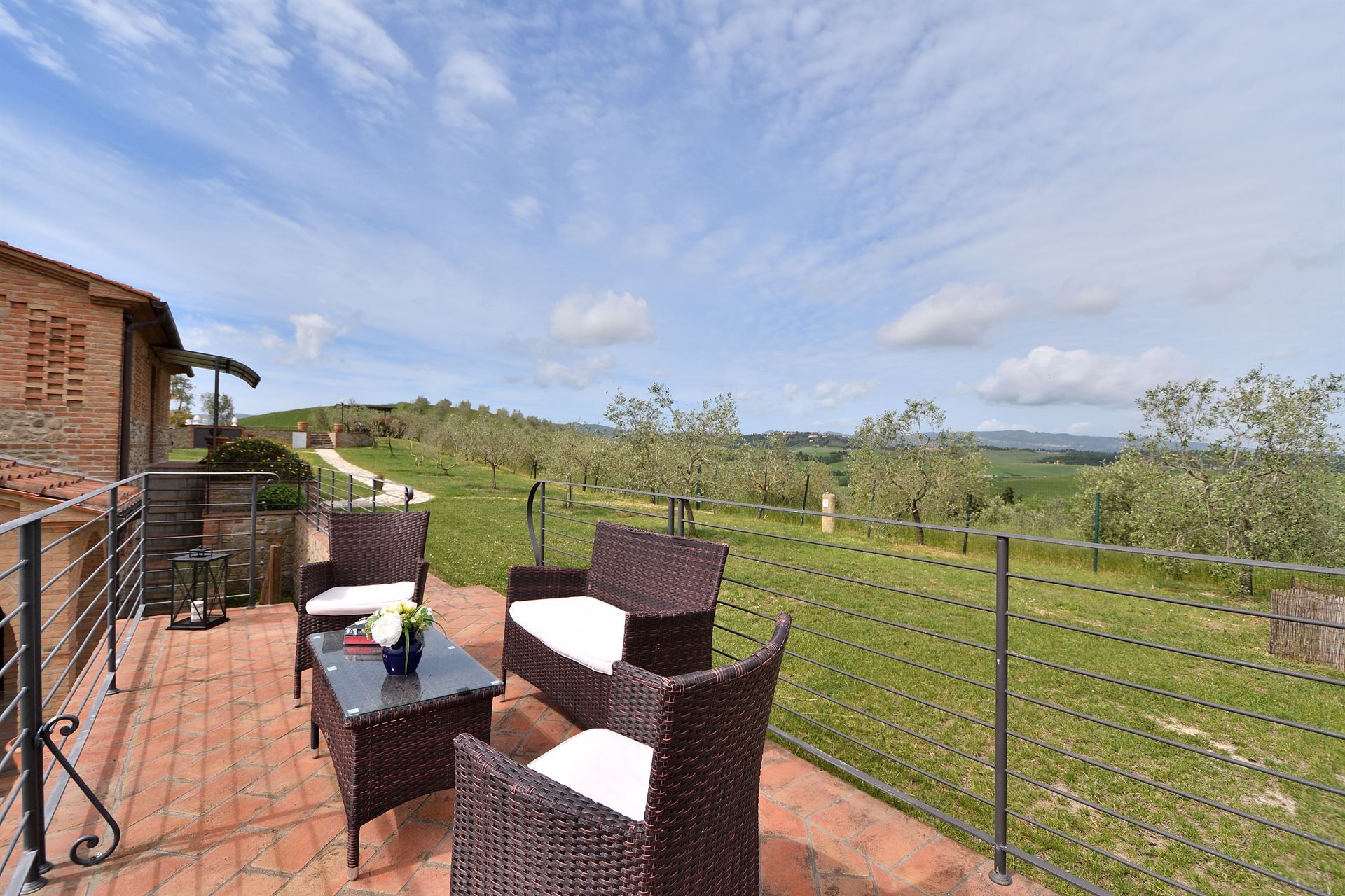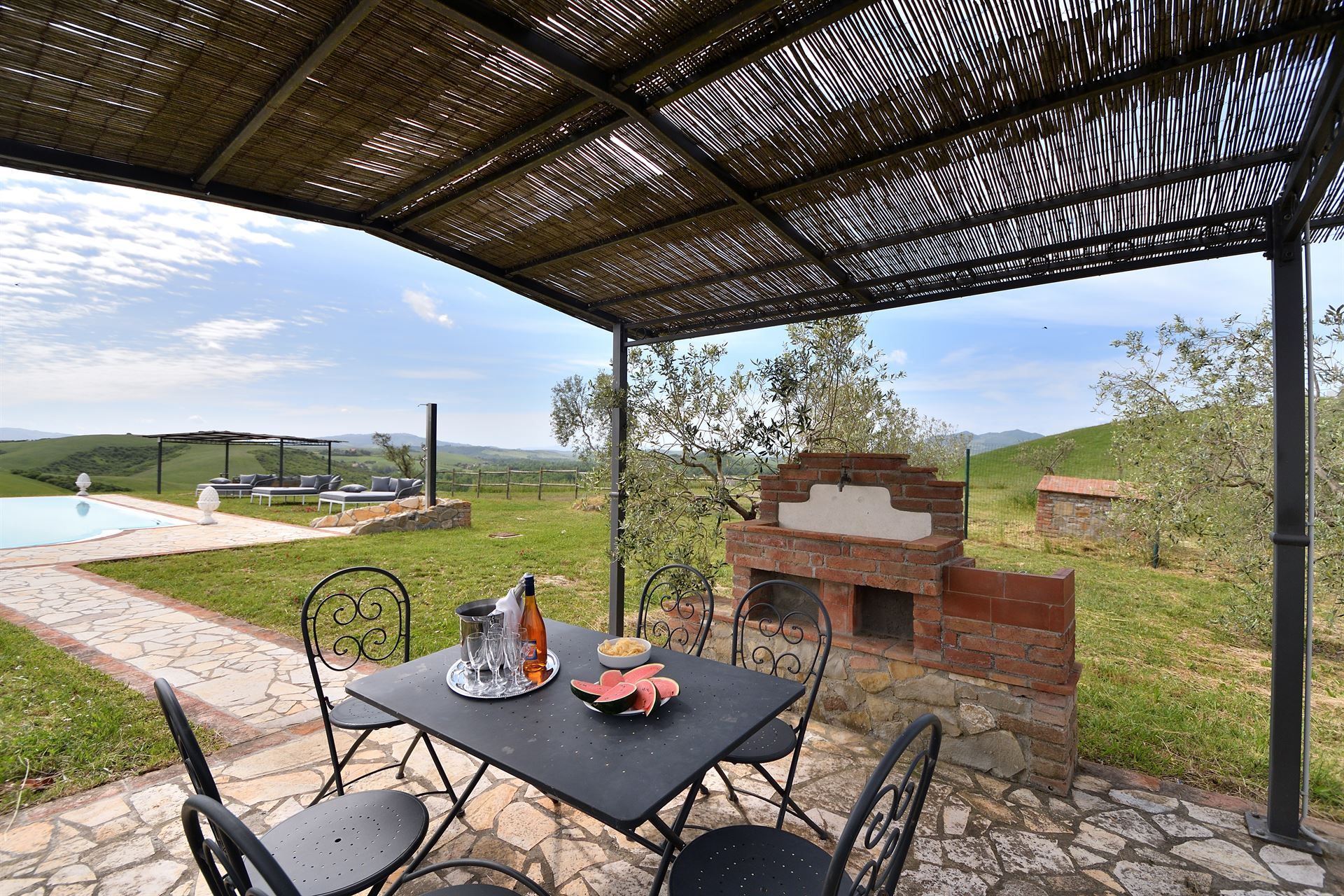 Nestled on a farm amongst fields and olive groves, this charming villa offers a tranquil escape in the heart of the Tuscan countryside. Relax on the spacious terraces, each with breathtaking views, or unwind by the hillside pool – it’s all about taking it easy here. Location-wise, this home is perfectly positioned for day trips to Pisa and Volterra. Closer to home, the small town of Fabbrica is just four kilometres away, where you’ll find a restaurant and grocery shop. Slightly further on, you can reach Peccioli in under twenty minutes, where a greater selection of authentic Italian eateries awaits.