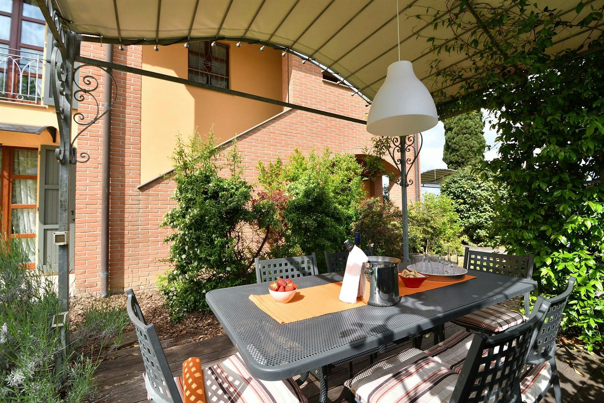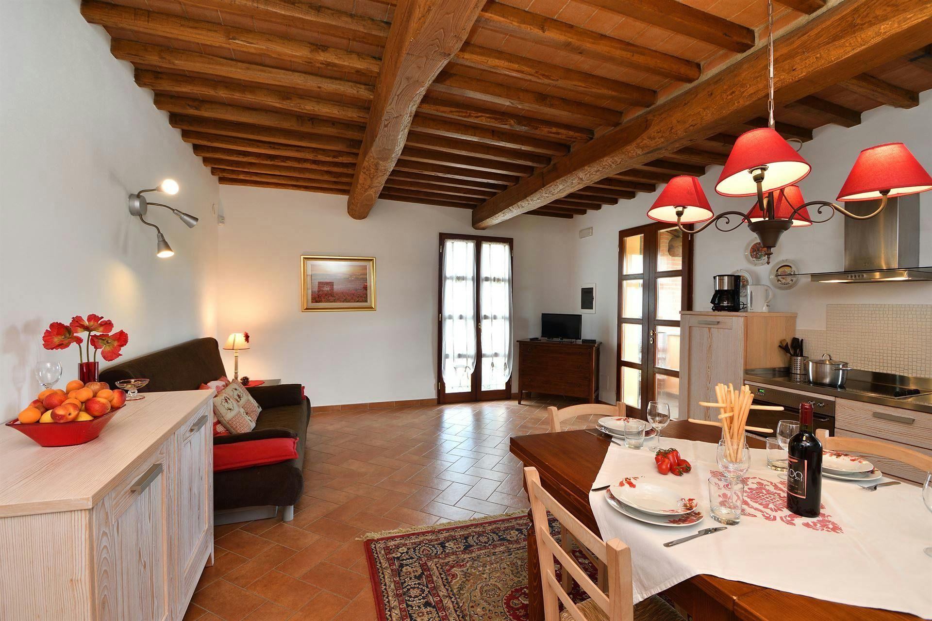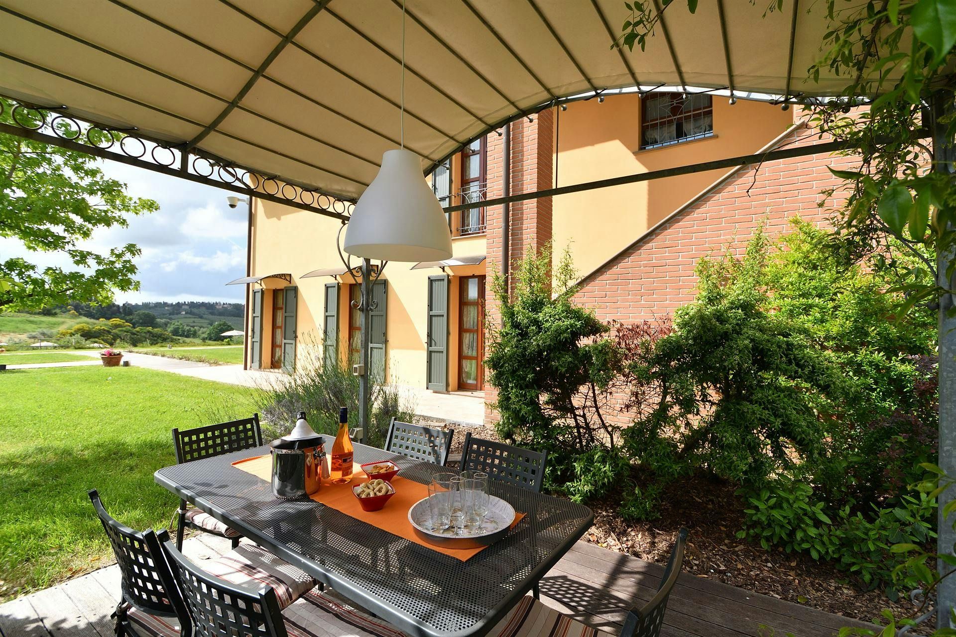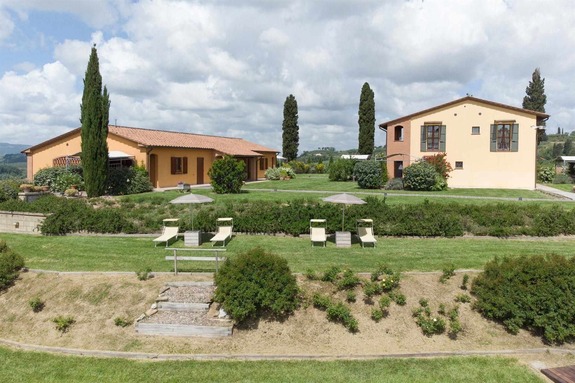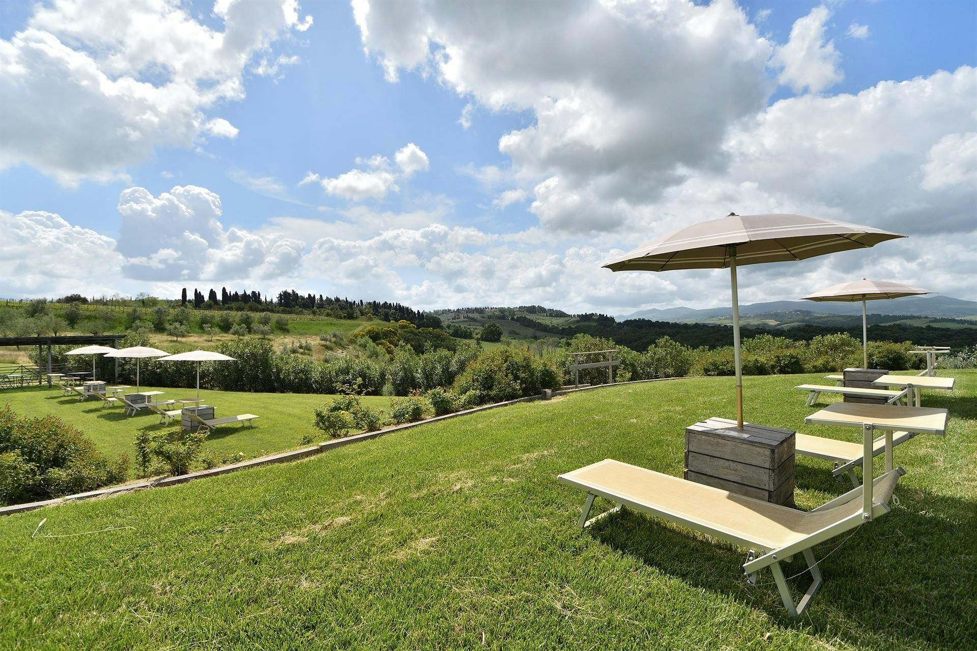 Set on a hilltop in the heart of the Tuscan countryside, this home has views over the rolling vineyards and olive groves. There’s a private alfresco dining area to enjoy as well as communal gardens and a shared swimming pool. Inside, the traditional interiors have character features such as beams. Located on a beautiful, small wine estate, the resort’s manager is always on hand so you can sample the organic first-press olive oil, wines and seasonal produce. When you want to explore the area, there are a couple of towns less than 5 kilometres away. Or visit Volterra and its Palazzo dei Priori – it’s within driving distance.