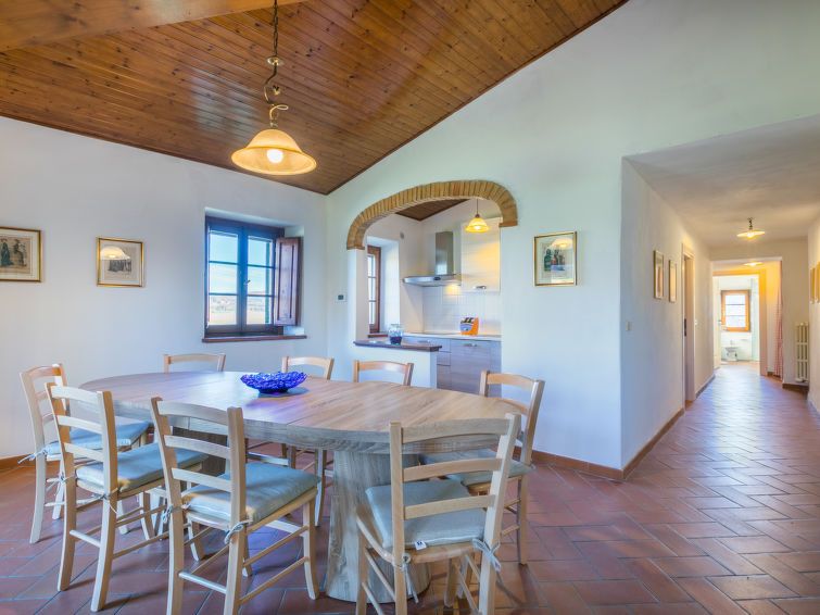 6-room house 260 m2 on 1st floor. Practical and cosy furnishings: open living room with open-hearth fireplace (only for decoration), cable TV. Open dining room. Exit to the swimming pool. 3 double bedrooms. 1 room with 2 beds. 1 small room with 1 bed and shower/WC. Kitchenette (4 hot plates, oven, dishwasher, toaster, kettle, freezer).