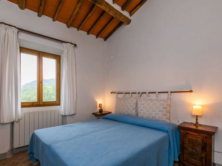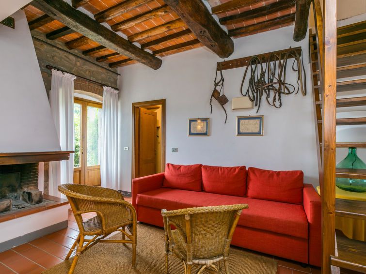 "Podere Sondino / Apt. Le Stalle", 2-room apartment 50 m2 on 2 levels. Simple and rustic furnishings: living/dining room with open-hearth fireplace, dining table and satellite TV. Kitchenette (oven, 5 gas rings, freezer, electric coffee machine). Shower/WC. Upper floor: (steep stair), 1 double bedroom.