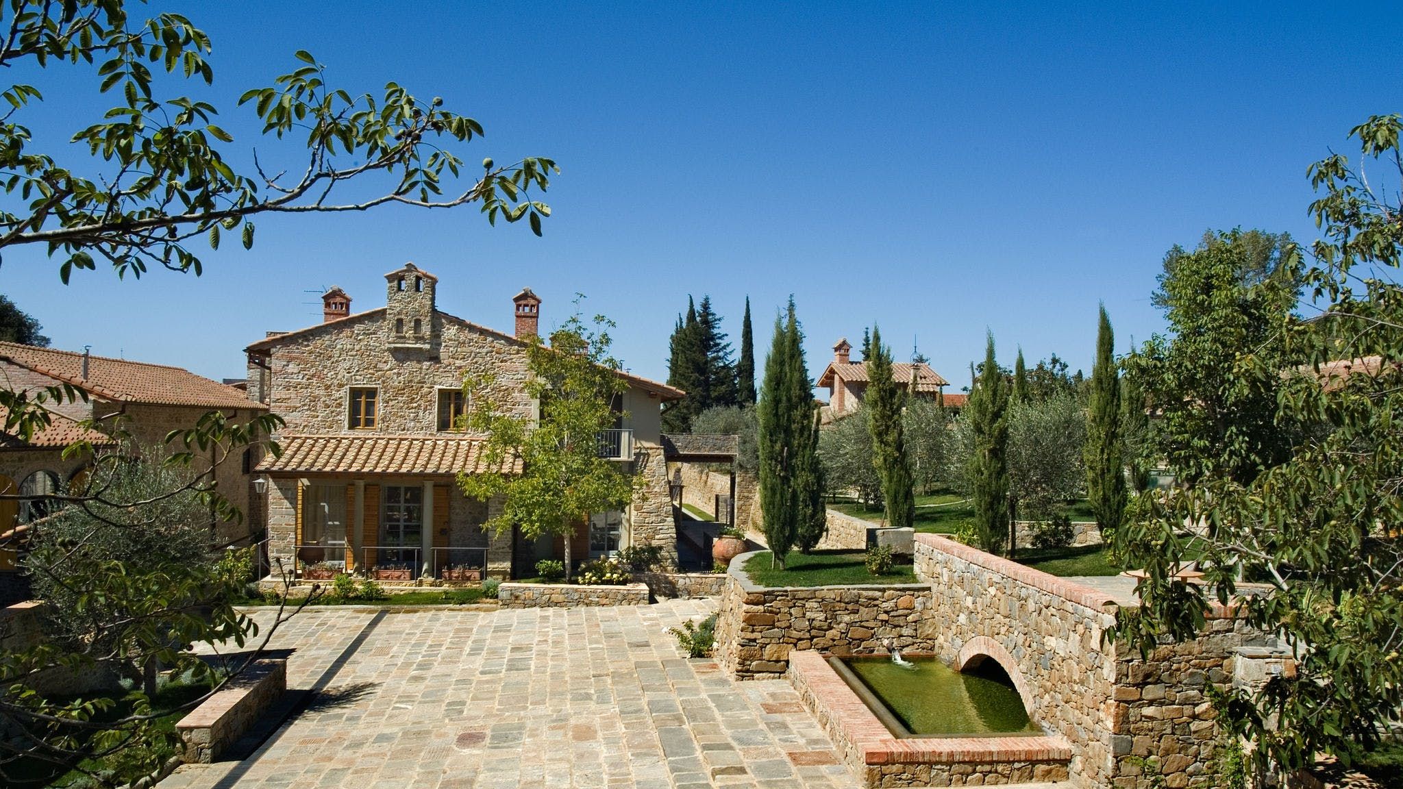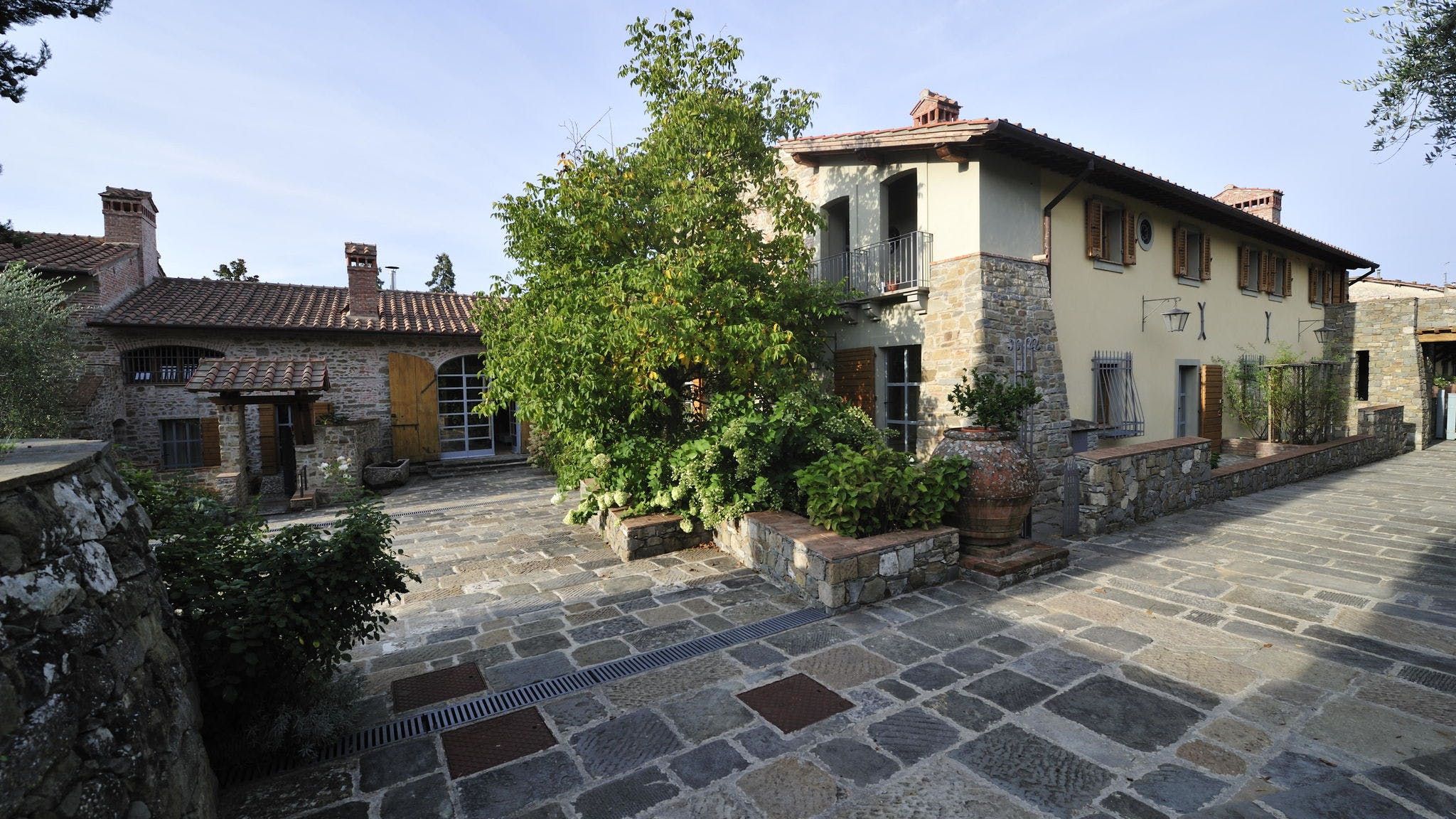 In and of itself, this stone and brick villa is rather dreamy. The timber roof trusses and tiled floor bring an easy rustic charm, and the furnishings are unshowy. Large glass doors can be opened on warm afternoons — plenty of those in Tuscany — to let a cooling breeze circulate through the interior. They also look out to a lovely view of the Pratomagno mountains. However, the home is part of a compound with some excellent communal amenities. Pass through the lemon grove, for instance, and you'll come across a large infinity pool with a covered pavilion at the side for alfresco lunches. Elsewhere, there's a well-stocked library and a theatre space where musical and artistic events often take place. Guests can embark upon a stroll in the surrounding private park, where you'll find olive trees, traditional stone walls and waterfalls on the Resco River. You might find there's very little need to leave the address, but the local town of Pian di Scò takes just over twenty minutes to reach on foot if you fancy a change of scenery.