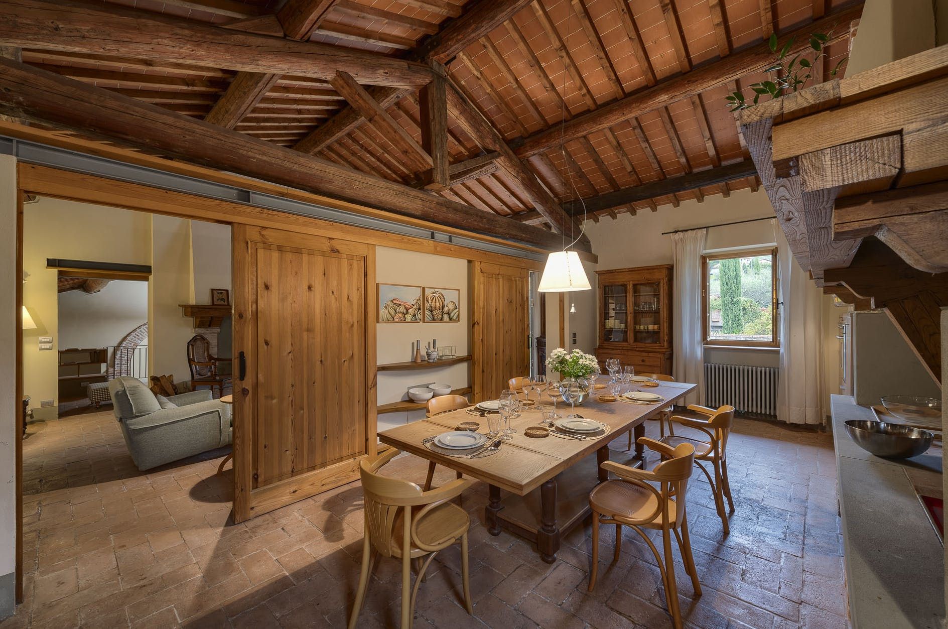 Perfectly placed, this home awaits midway between charming Arezzo and famous Florence – two cities steeped in rich history. Appreciated by nature lovers and artists for centuries, we're certain that this woodland scenery will inspire you to explore the great outdoors with your loved ones. Perhaps you'll stay by the Resco river, or maybe you'll lace up your hiking boots for a challenging trail along the Pratomagno mountains.