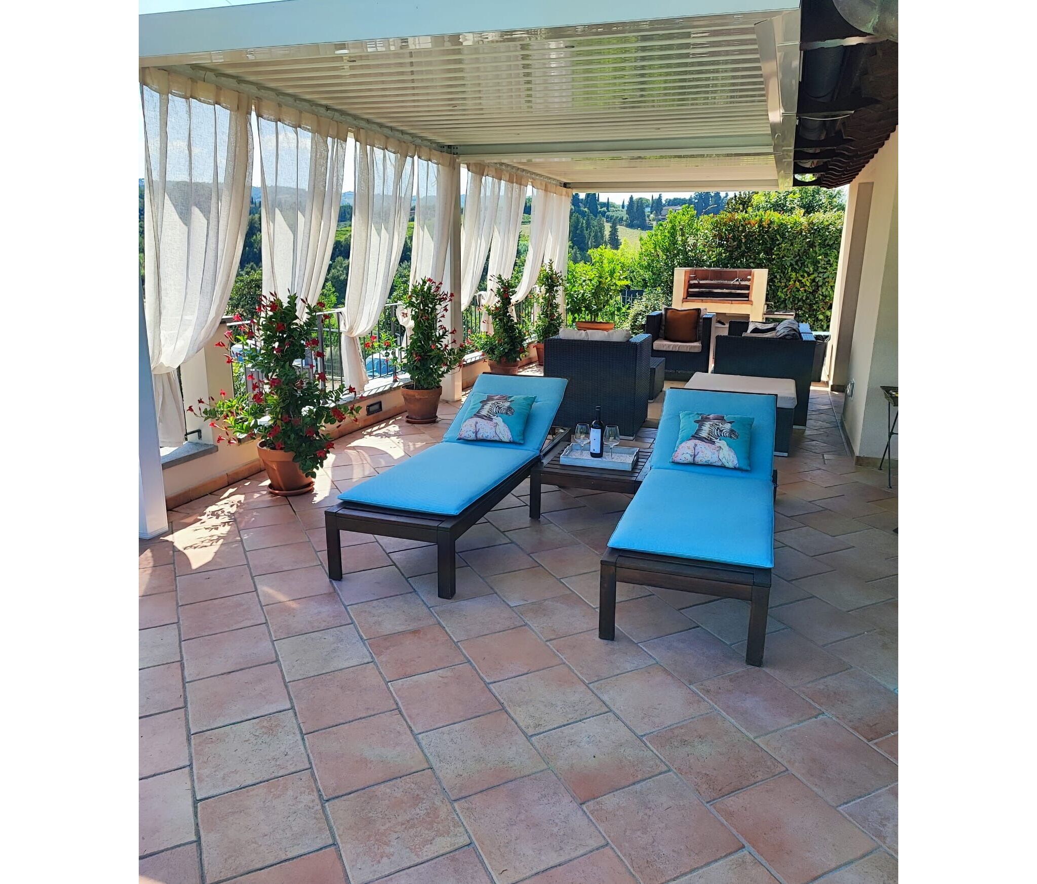 Set in Gambassi Terme, this villa overlooks the rolling hills between Siena and Florence – you'll be spoilt with picturesque views from multiple parts of the home. Spread over three floors, the interiors feel contemporary while keeping some traditional features like the wooden beam ceilings. The real draw, though, is outside: there's a pool and two loggias where you can barbecue, dine alfresco, or just relax and take in the scenery. If you’re a full group, one bedroom has a sofa bed that’s probably best for kids or families. Location-wise, there's a restaurant and winery just a three-minute walk away, or the town centre is a short drive for more options.