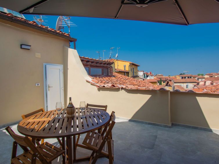 2-room apartment 50 m2 on 4th floor. With sloping ceilings, fully renovated in 2025, comfortable and tasteful furnishings: living room, ceiling height 300 - 20 cm with 1 sofabed, air conditioning and forced-air heating. Exit to the terrace. 1 double bedroom with digital TV, air conditioning and forced-air heating.