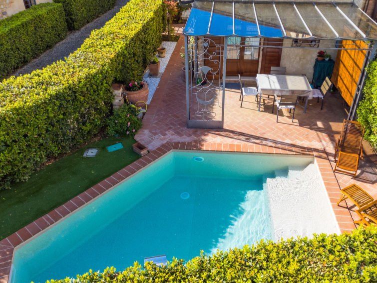 The accommodation is very quiet and picturesque in one of the most beautiful areas of Tuscany. It offers every comfort, such as a dishwasher, washing machine, coffee maker, kettle, toaster, etc. There are more than enough dishes and cooking utensils. The same applies to towels and bed linen. The parking spaces are much closer to the accommodation than stated in the description. Particularly noteworthy is the beautiful terrace, lovingly furnished with freshly planted flowers. The warm landlady took excellent care of our needs. All in all, the accommodation is highly recommended.