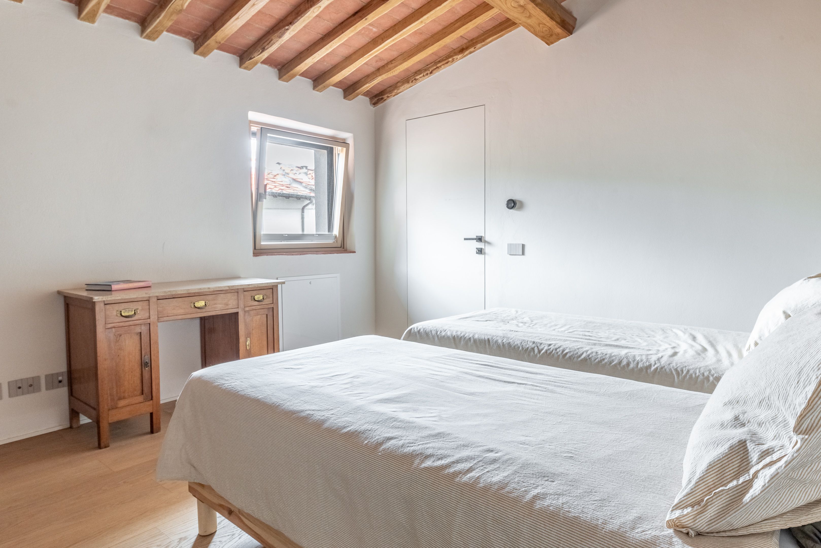 Perched in a small hillside village, this pet-friendly home is a tranquil retreat in rural Chianti. Inside, the space is bright and characterful, with a few rustic touches – exposed brick walls, wooden beams and a fireplace for cosy evenings. The kitchen opens directly onto the garden, where there's a covered seating area for long summer lunches, while the bedrooms overlook the rolling countryside. Stroll down to the local shop or taverna, or hop in the car for day trips to Florence, San Gimignano and Pisa.