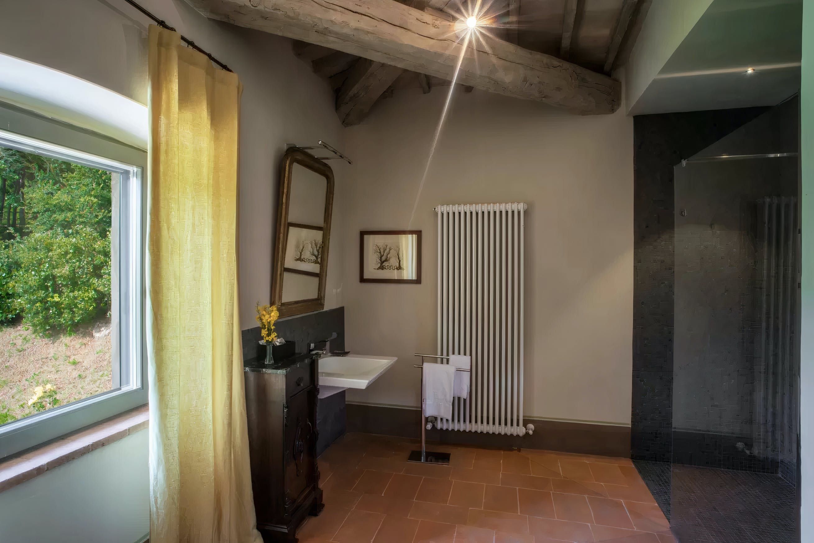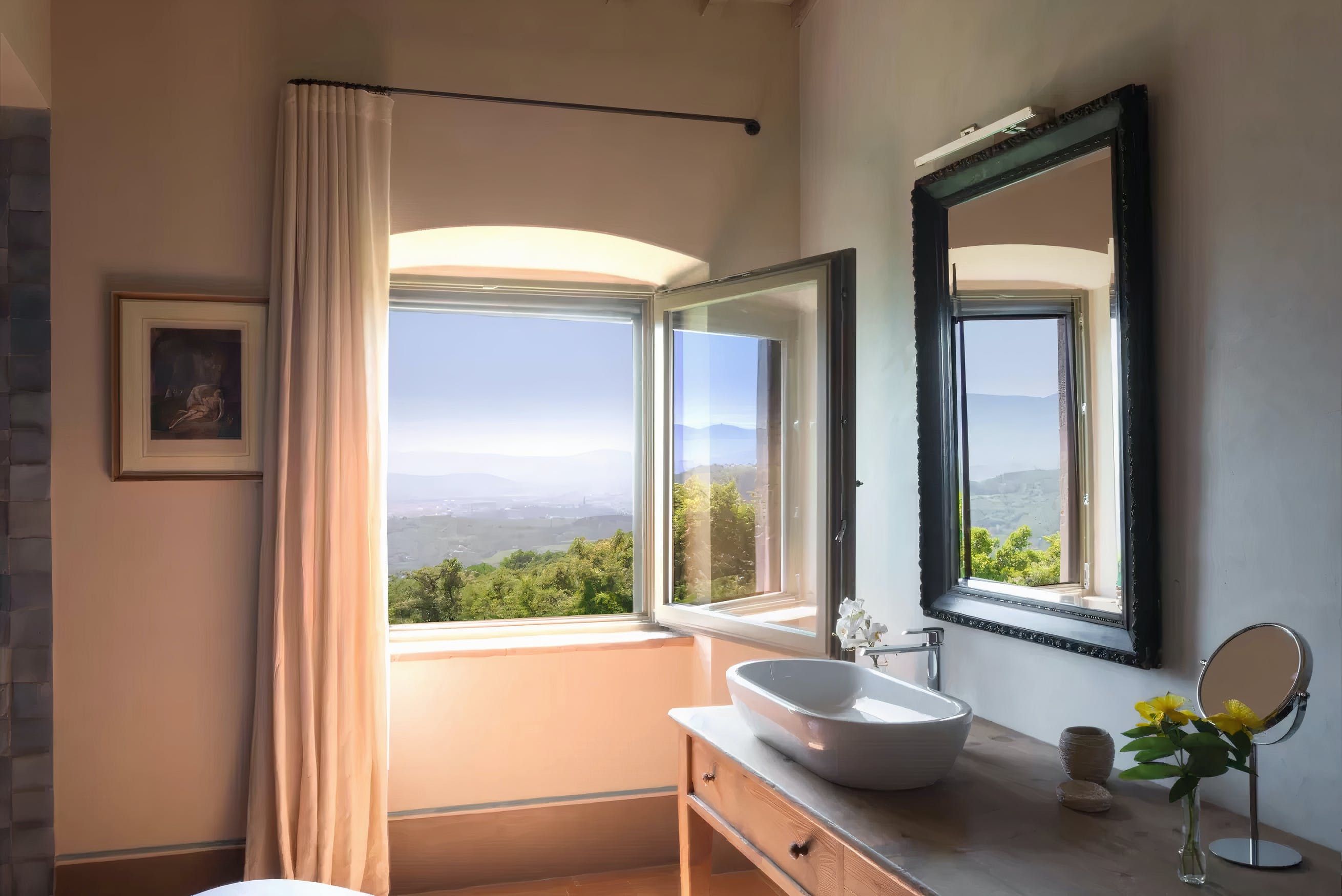 Not far from the hilltop town of Arezzo, this villa offers a chic and rustic stay in the Italian countryside, with gorgeous views and a private pool. We think this home is well-suited to two families or friend groups travelling together – the two floors act as separate apartments, each with its own kitchen, living room and entrance. The ground floor enjoys direct access to the alfresco dining area, while the first floor benefits from lovely views across the Tuscan landscape. We recommend having a car here – the cities of Siena and Florence are just over an hour's drive away.