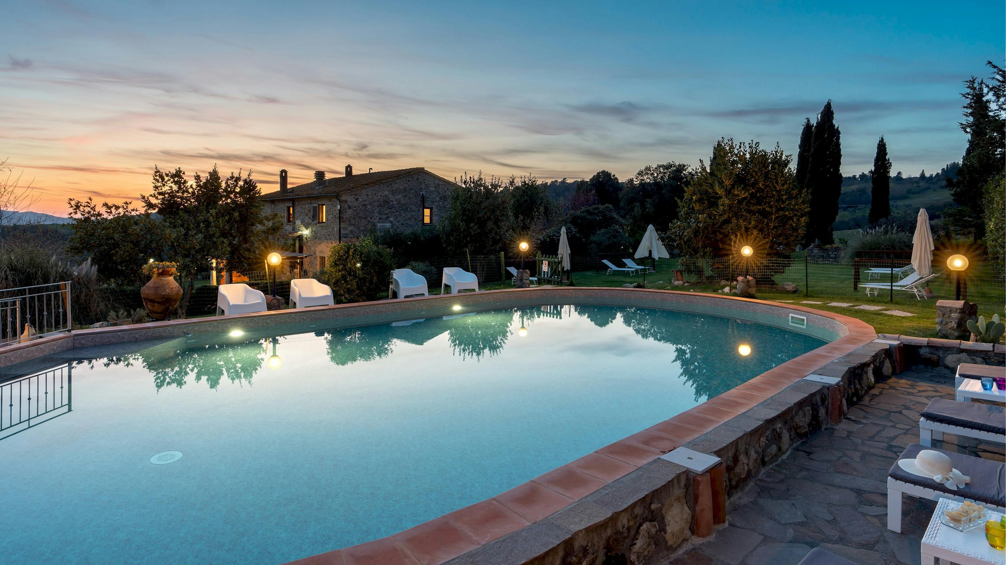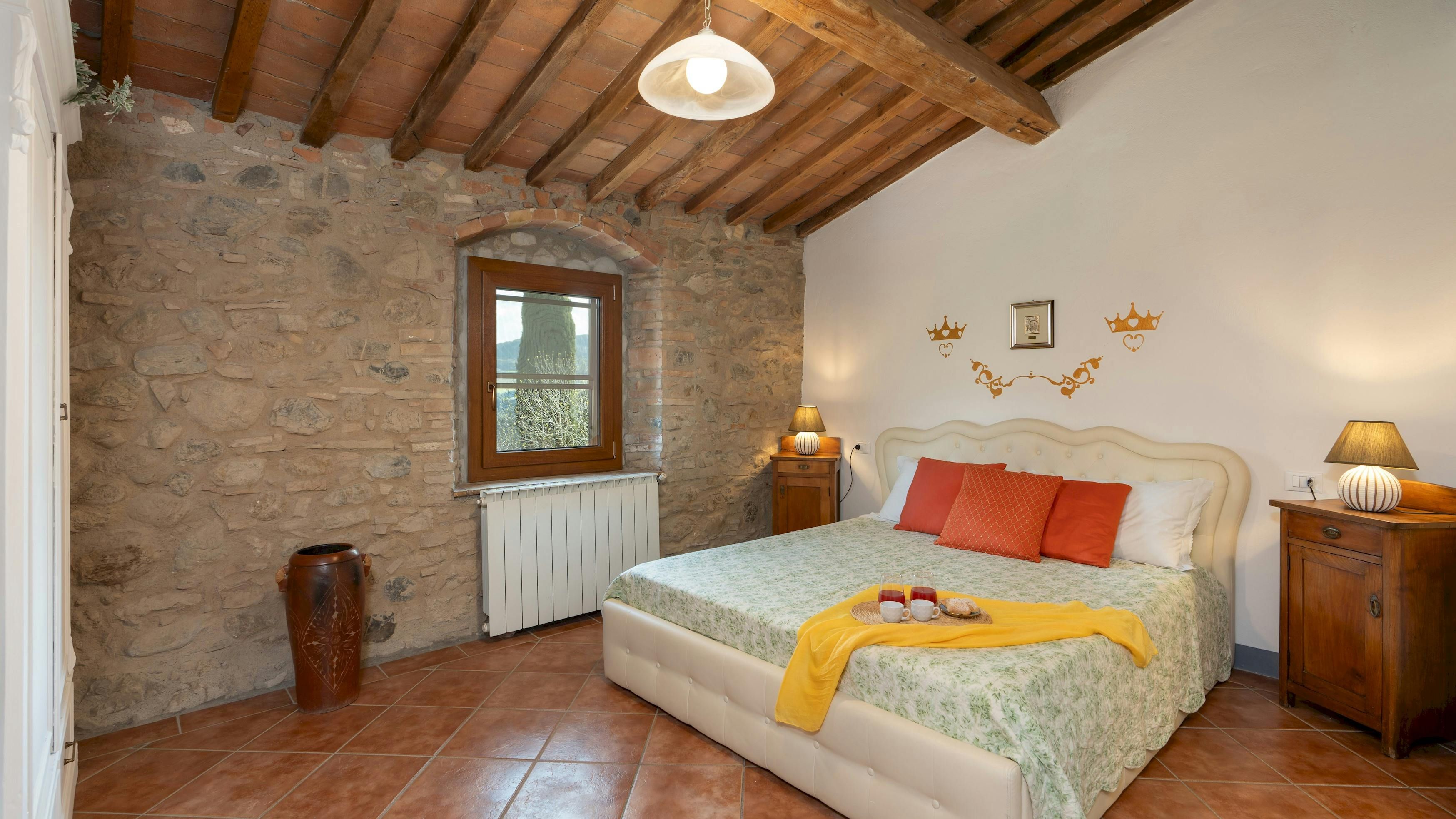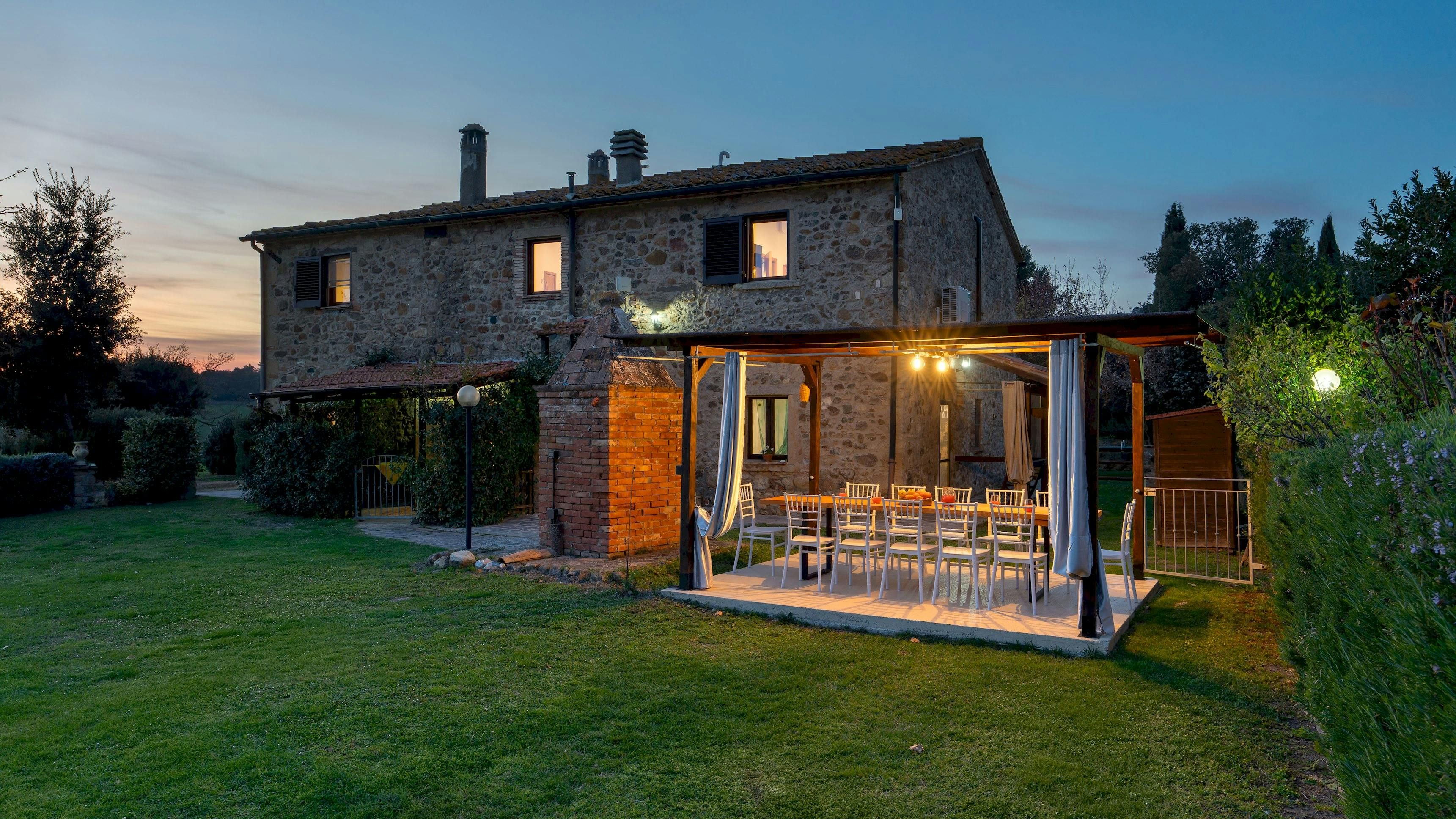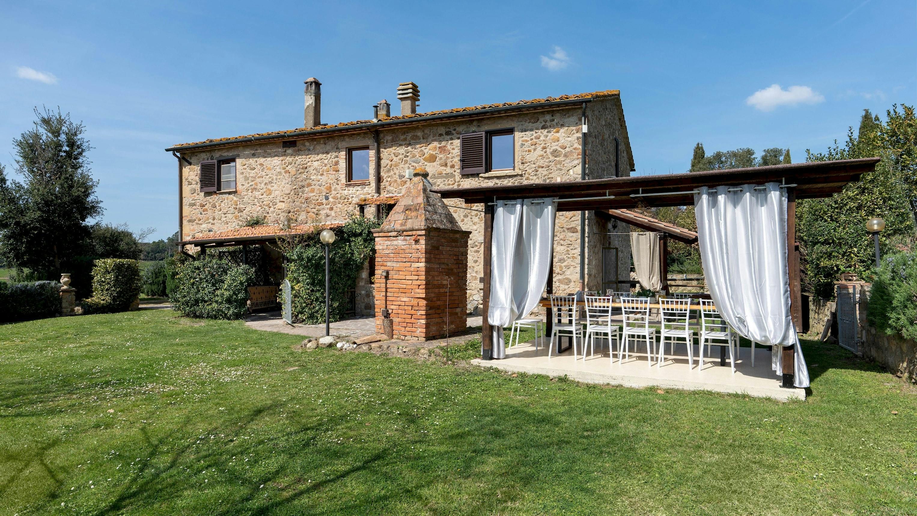 This charming Tuscan farmhouse is located on a family farm in the Val di Cecina, surrounded by beautiful hill views. Built in 1883, the farmhouse has been lovingly renovated to retain historic features while adding modern comforts. It’s a peaceful home-from-home perfect for a large family group – children will love the play area and swimming pool. The garden is filled with rosemary, cypress, and oak trees, and features a delightful gazebo for dining outside – there’s a stone barbecue to cook on. If you don’t fancy cooking, the home-owner has a restaurant just 600 metres away.