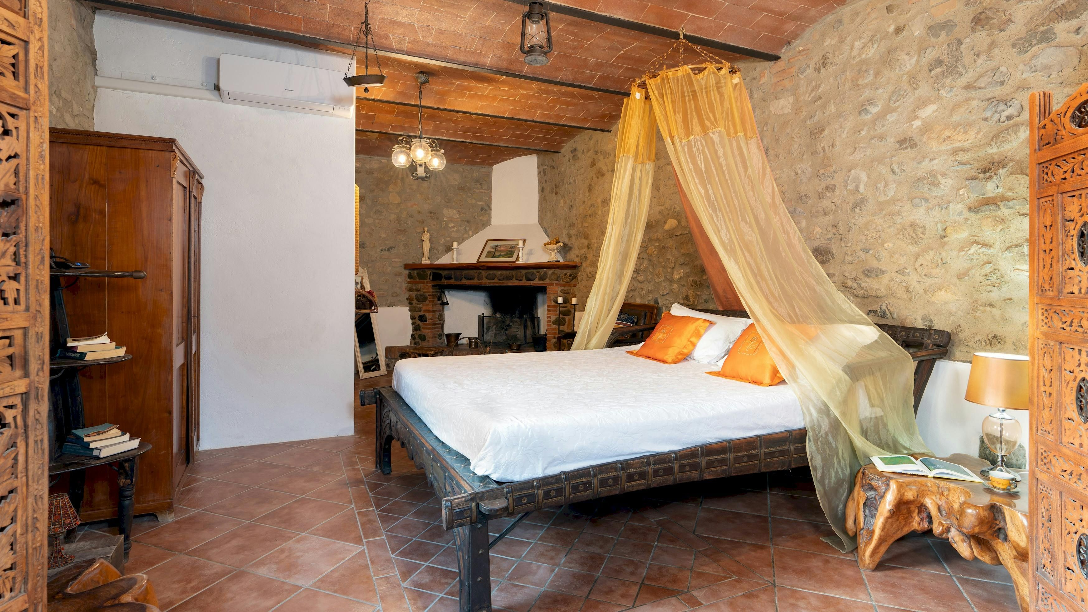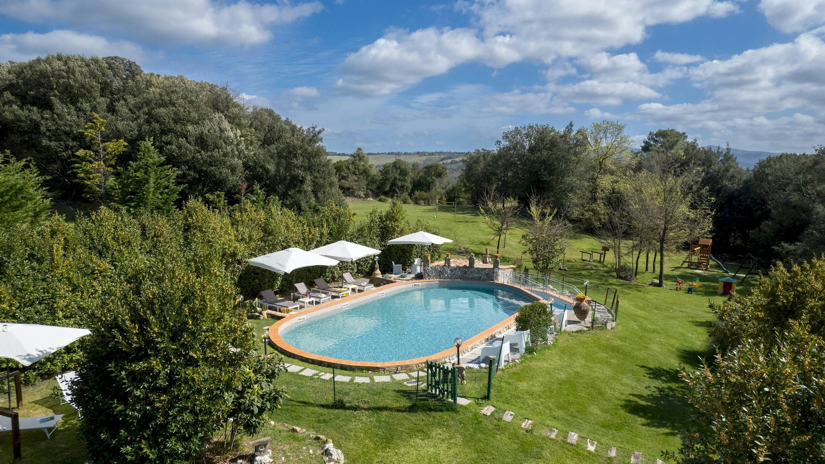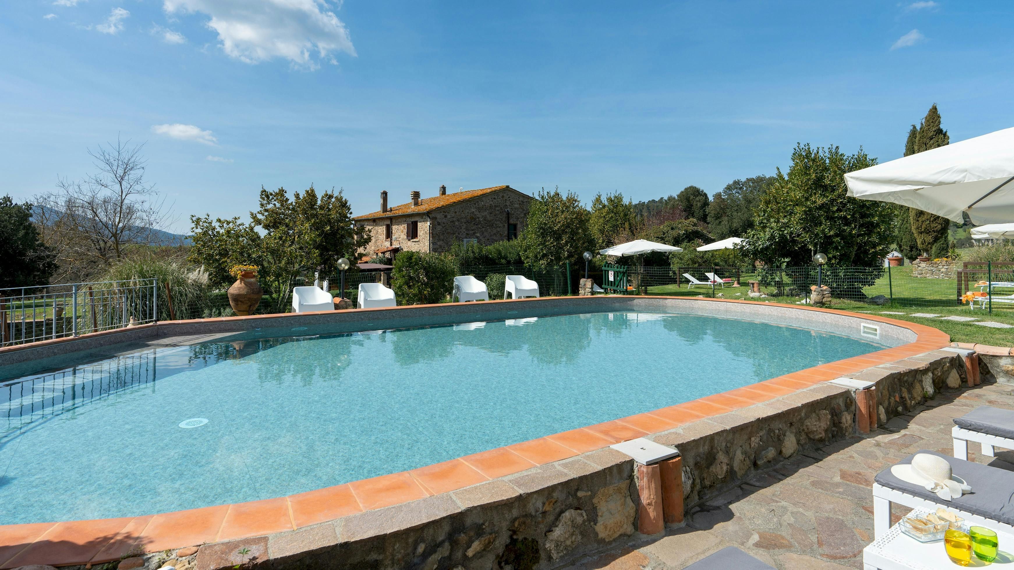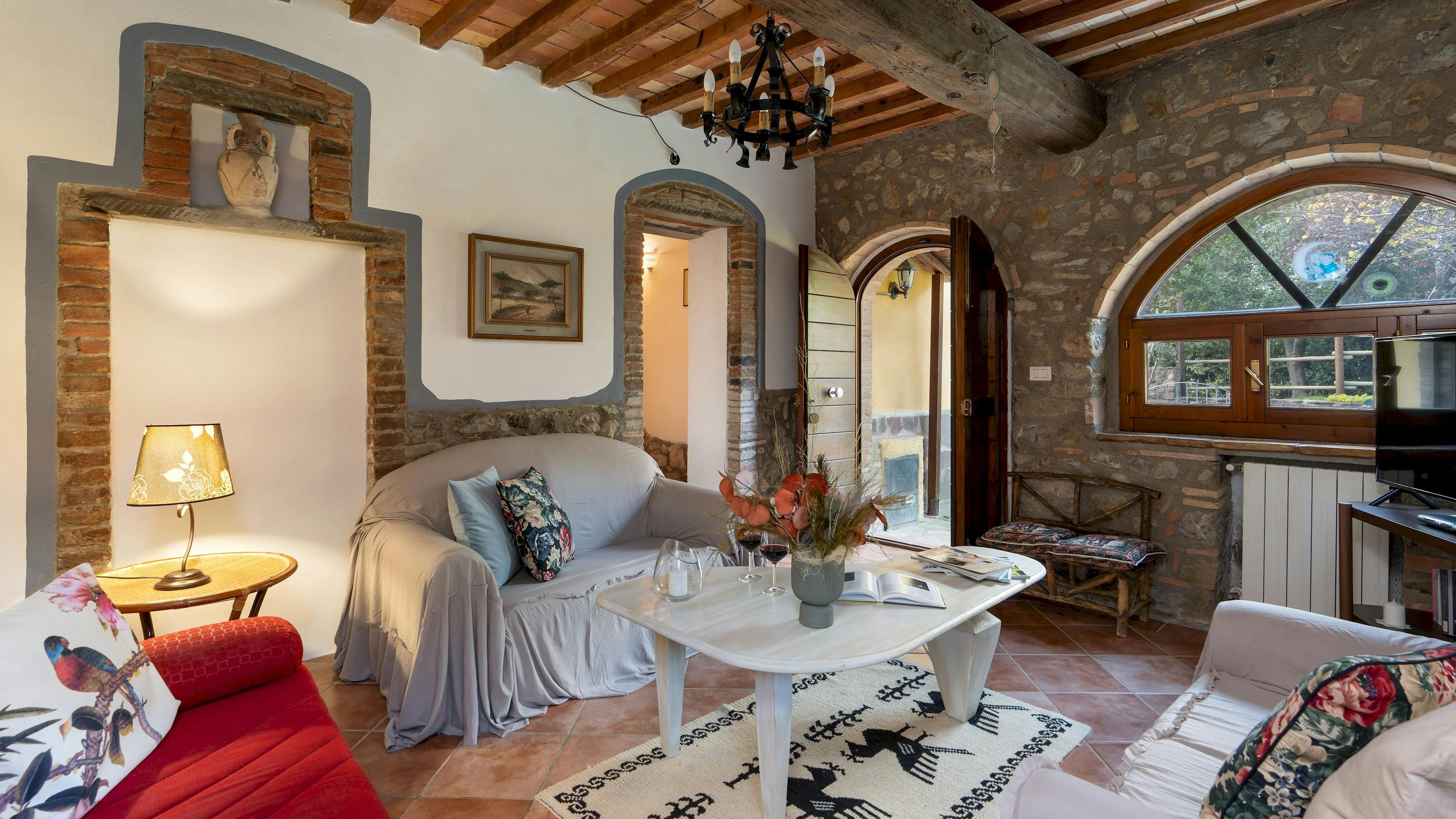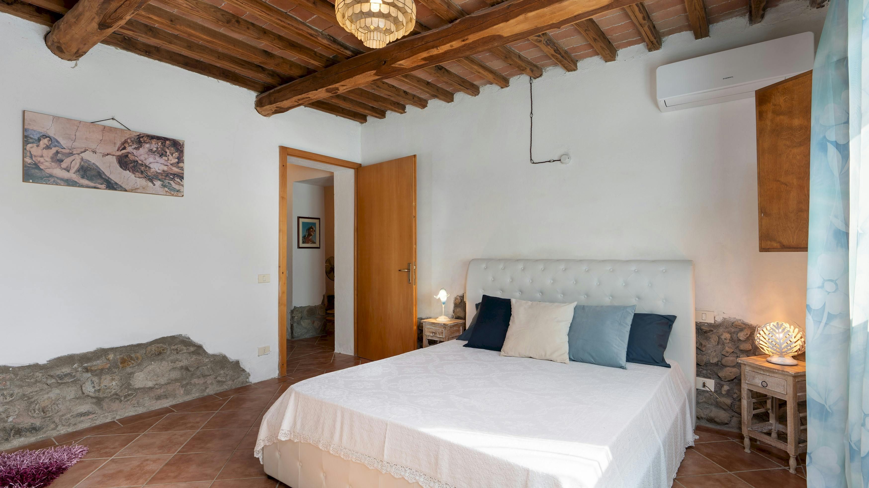 This charming Tuscan farmhouse is located on a family farm in the Val di Cecina, surrounded by beautiful hill views. Built in 1883, the farmhouse has been lovingly renovated to retain historic features while adding modern comforts. It’s a peaceful home-from-home perfect for a large family group – children will love the play area and swimming pool. The garden is filled with rosemary, cypress, and oak trees, and features a delightful gazebo for dining outside – there’s a stone barbecue to cook on. If you don’t fancy cooking, the home-owner has a restaurant just 600 metres away.