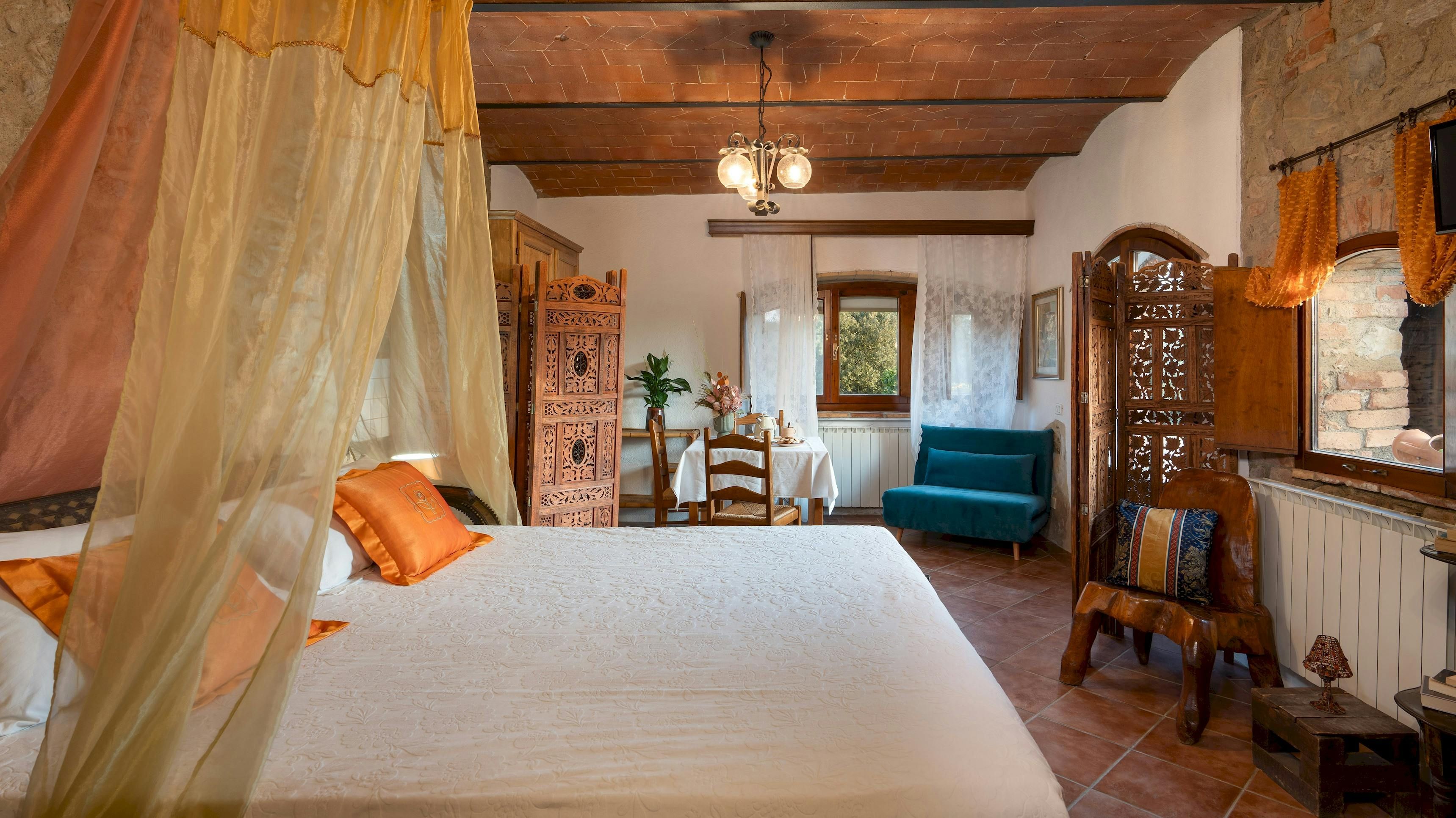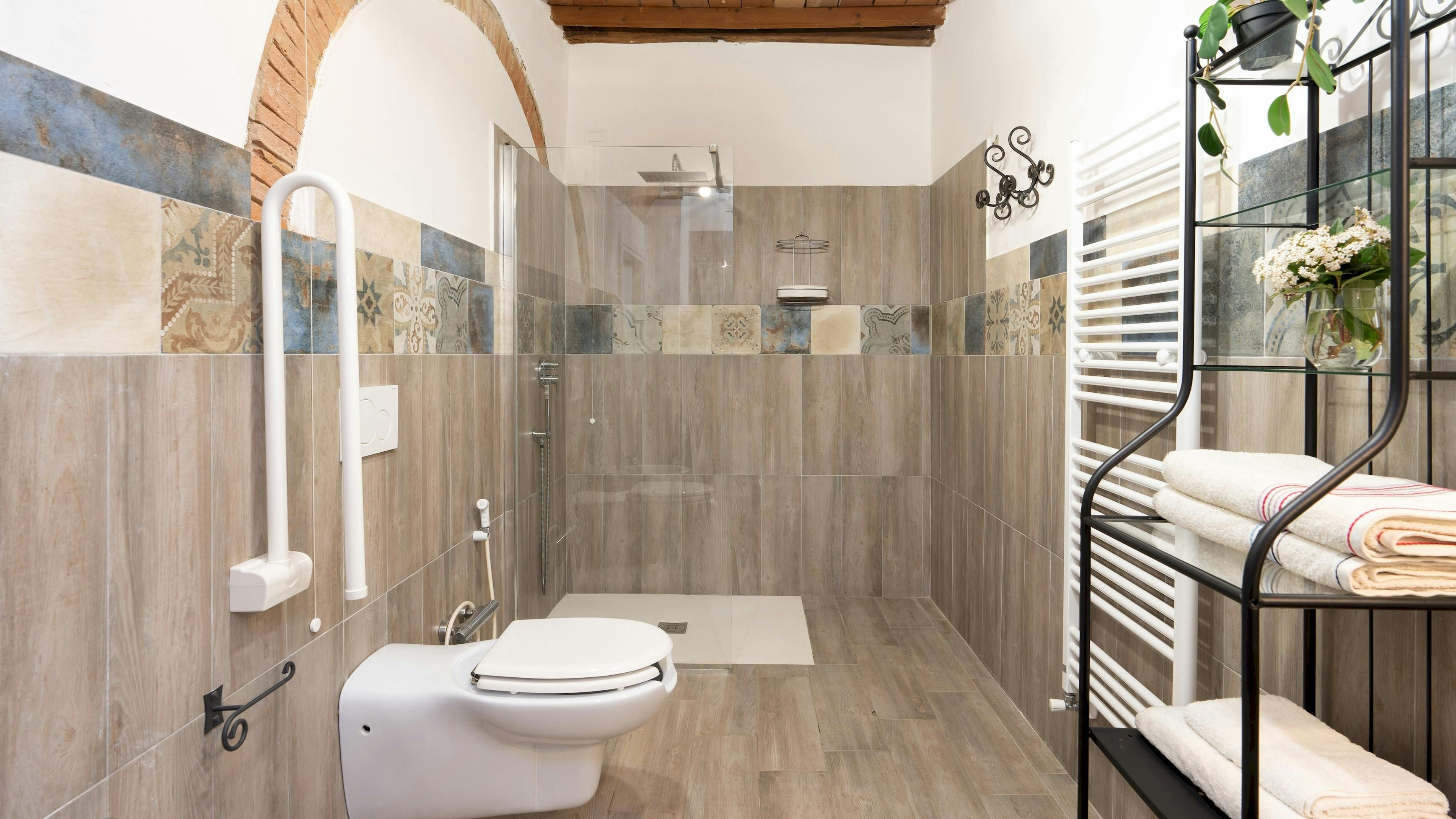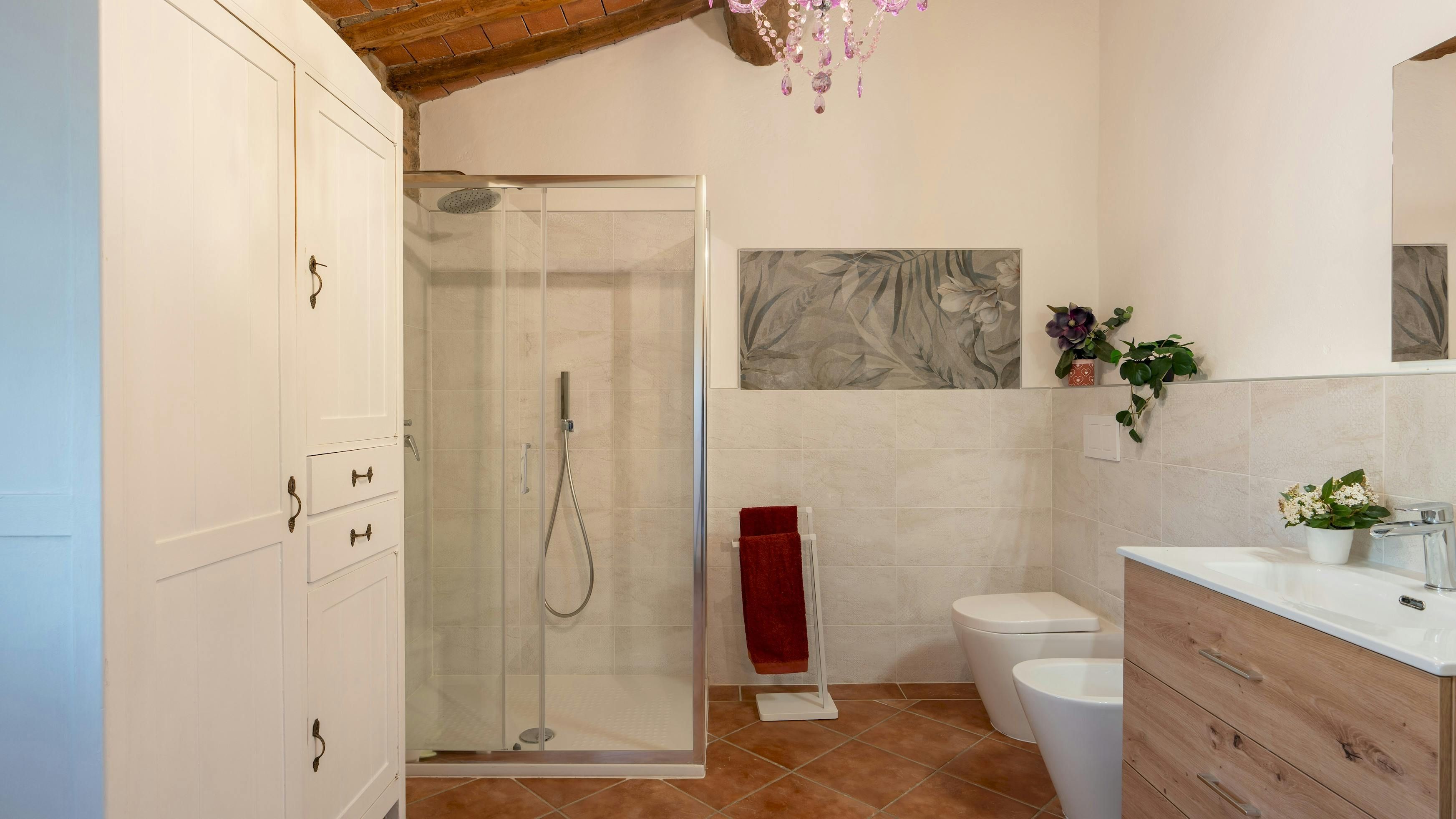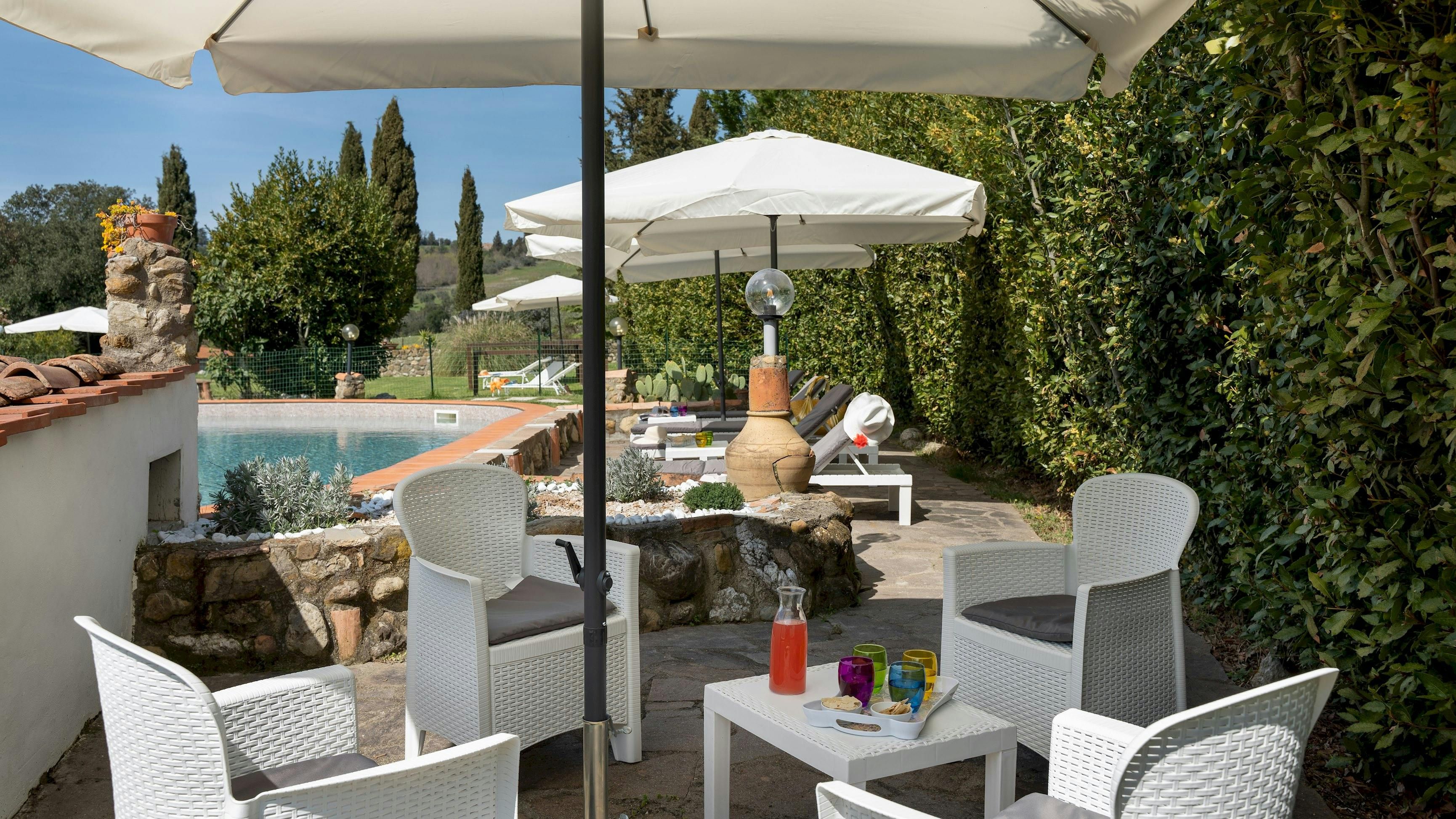 This charming Tuscan farmhouse is located on a family farm in the Val di Cecina, surrounded by beautiful hill views. Built in 1883, the farmhouse has been lovingly renovated to retain historic features while adding modern comforts. It’s a peaceful home-from-home perfect for a large family group – children will love the play area and swimming pool. The garden is filled with rosemary, cypress, and oak trees, and features a delightful gazebo for dining outside – there’s a stone barbecue to cook on. If you don’t fancy cooking, the home-owner has a restaurant just 600 metres away.