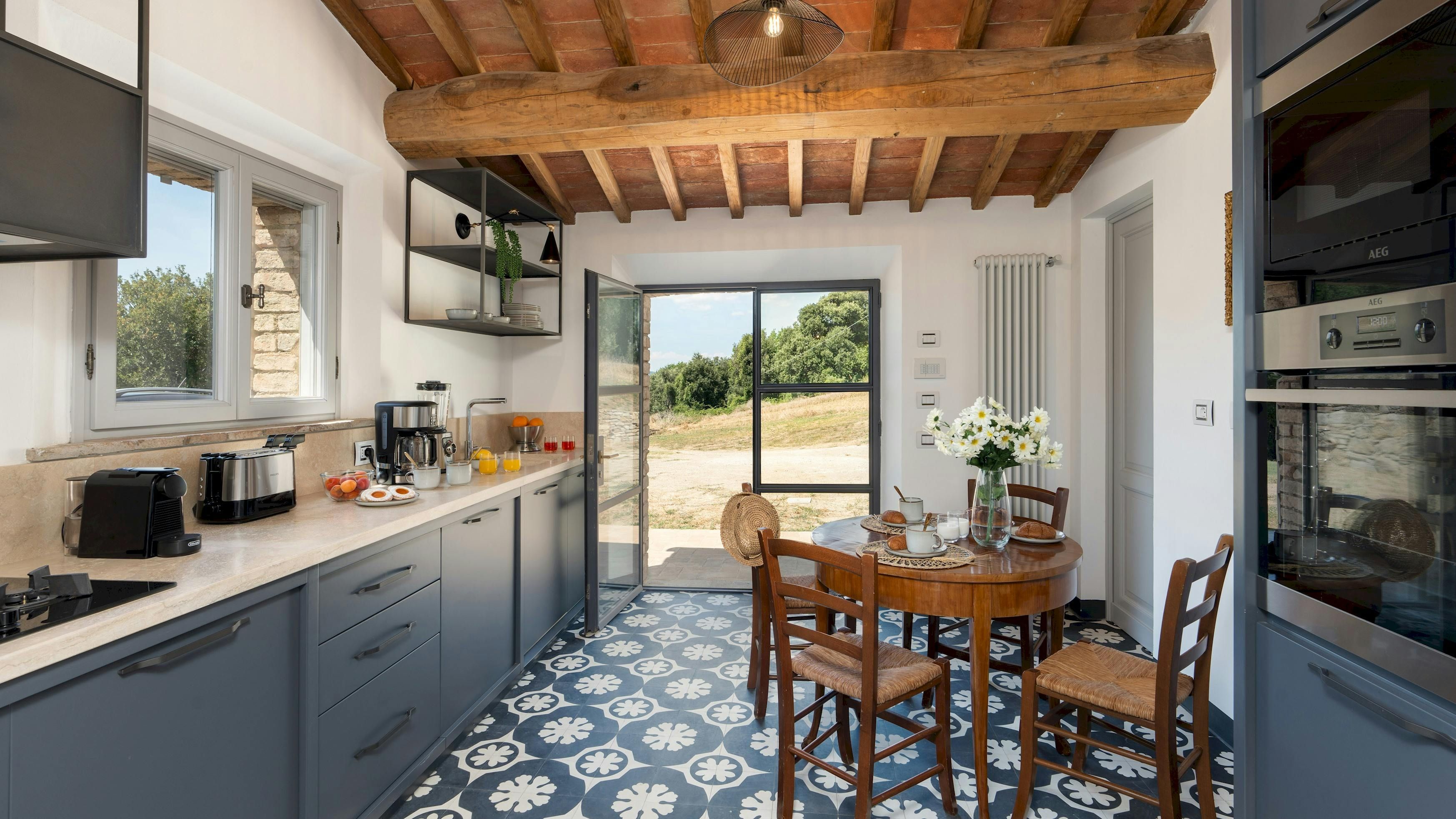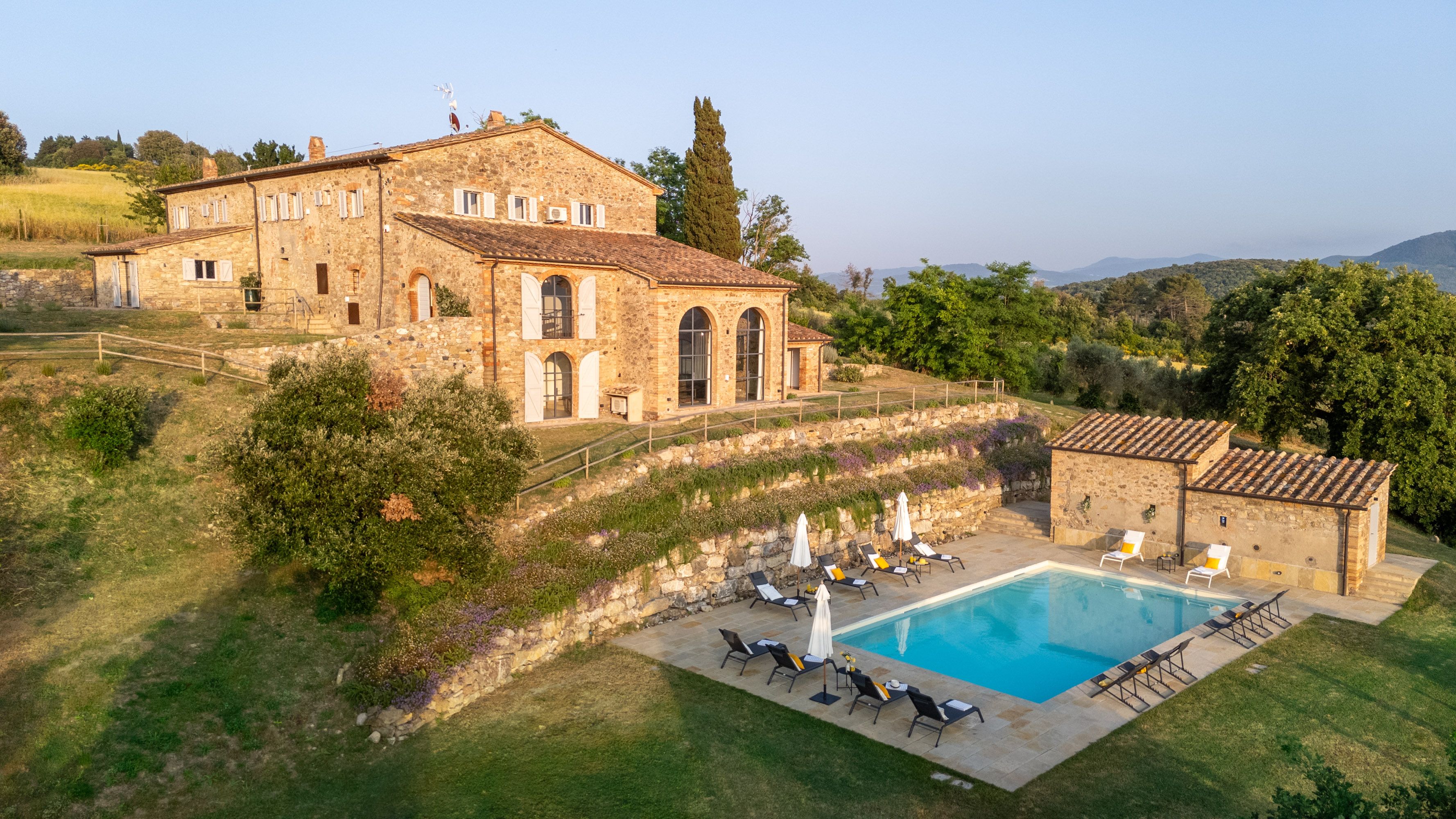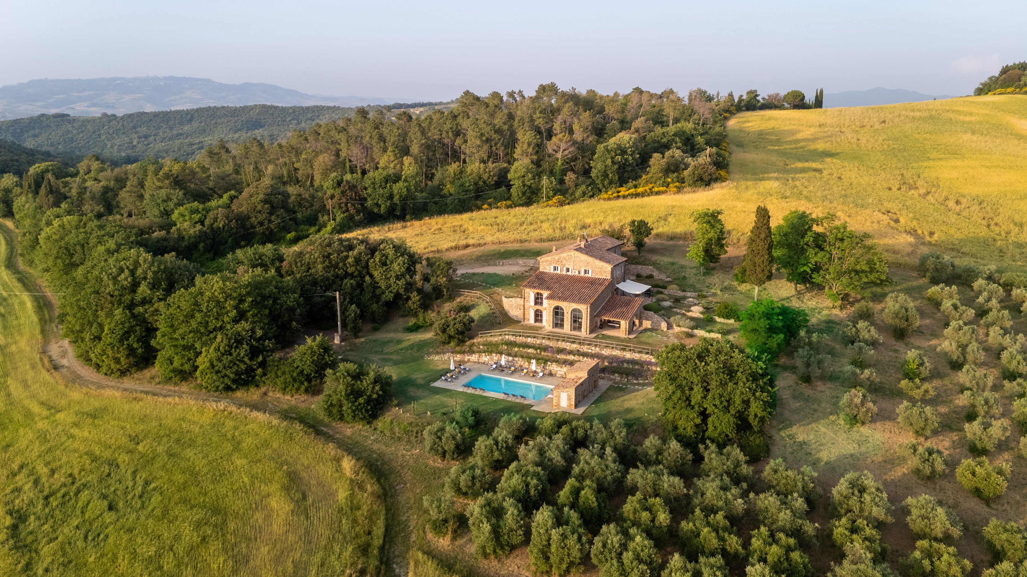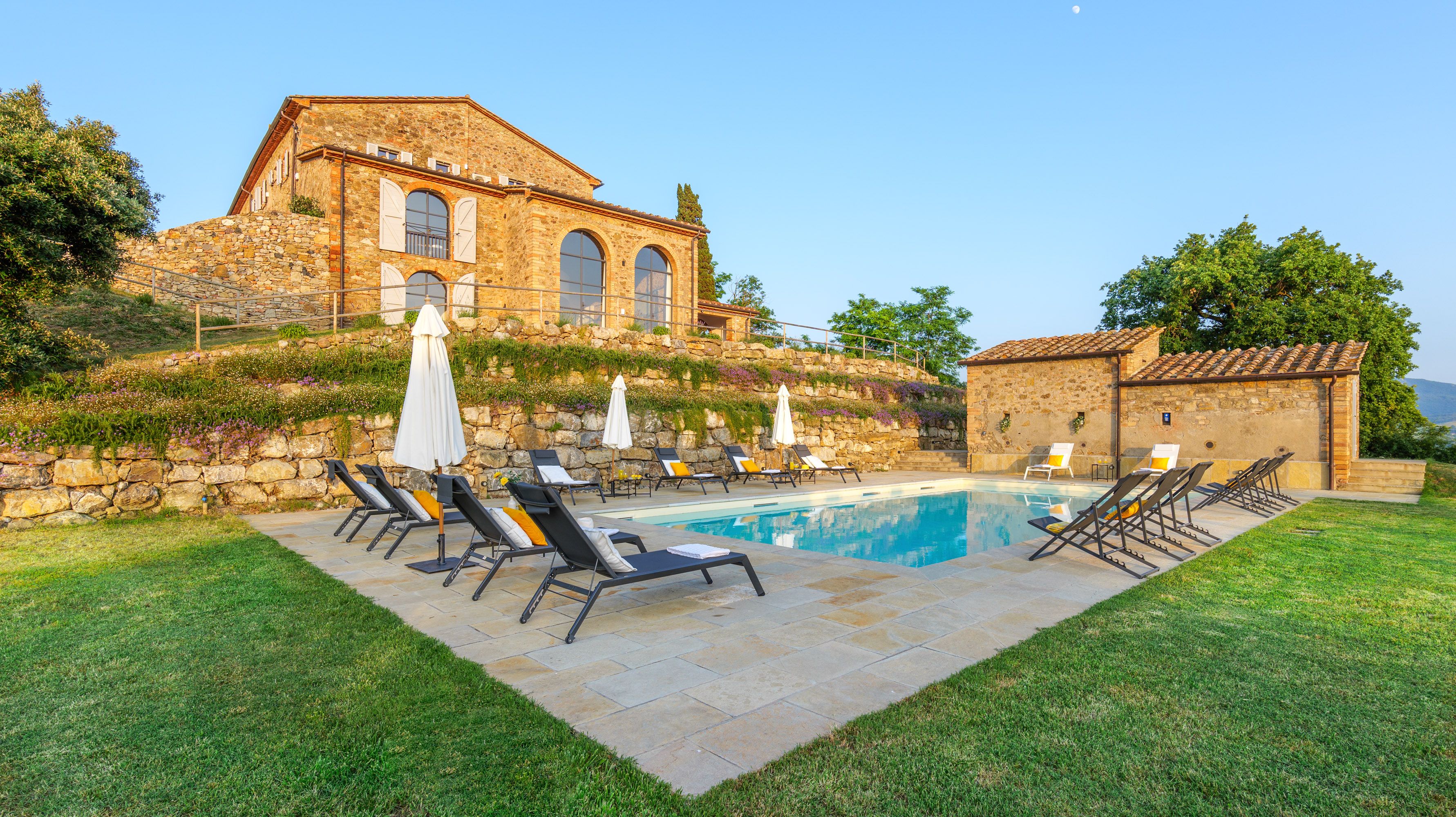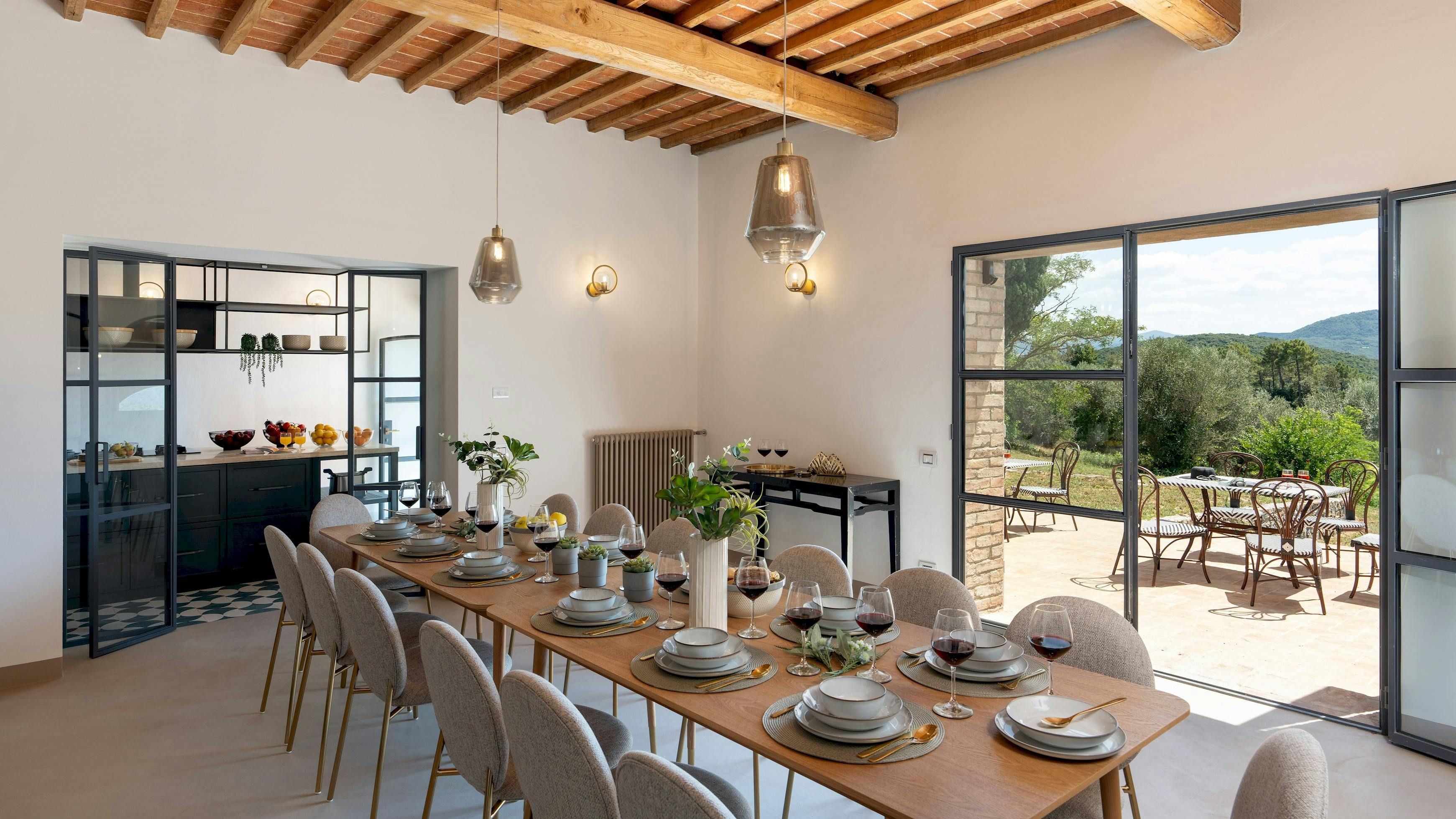 This glorious villa is nestled amid the hills of Val di Cecina, within easy reach of Volterra, San Gimignano, and Siena. From its raised position, it offers panoramic views of the countryside, adding to the tranquil vibe. The farmhouse, dating back to the mid 1800s, has been renovated to retain its charm while adding contemporary touches. We love the exposed beams and terracotta floors paired with floor-to-ceiling windows that show off the stunning vistas. Swim in the private pool in the well-kept garden, before dining on the terrace – it’s a splendid spot for sunset.