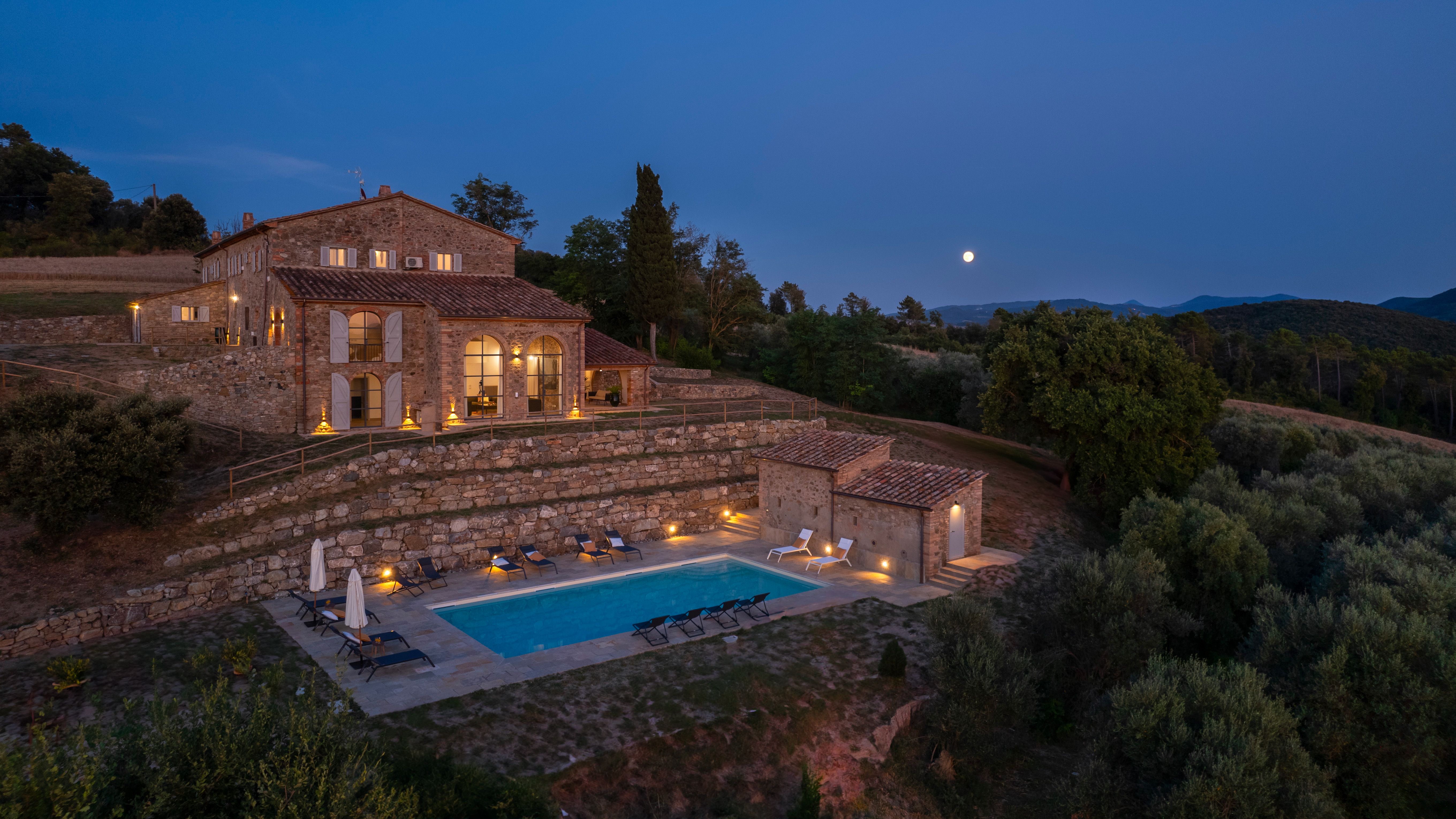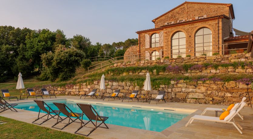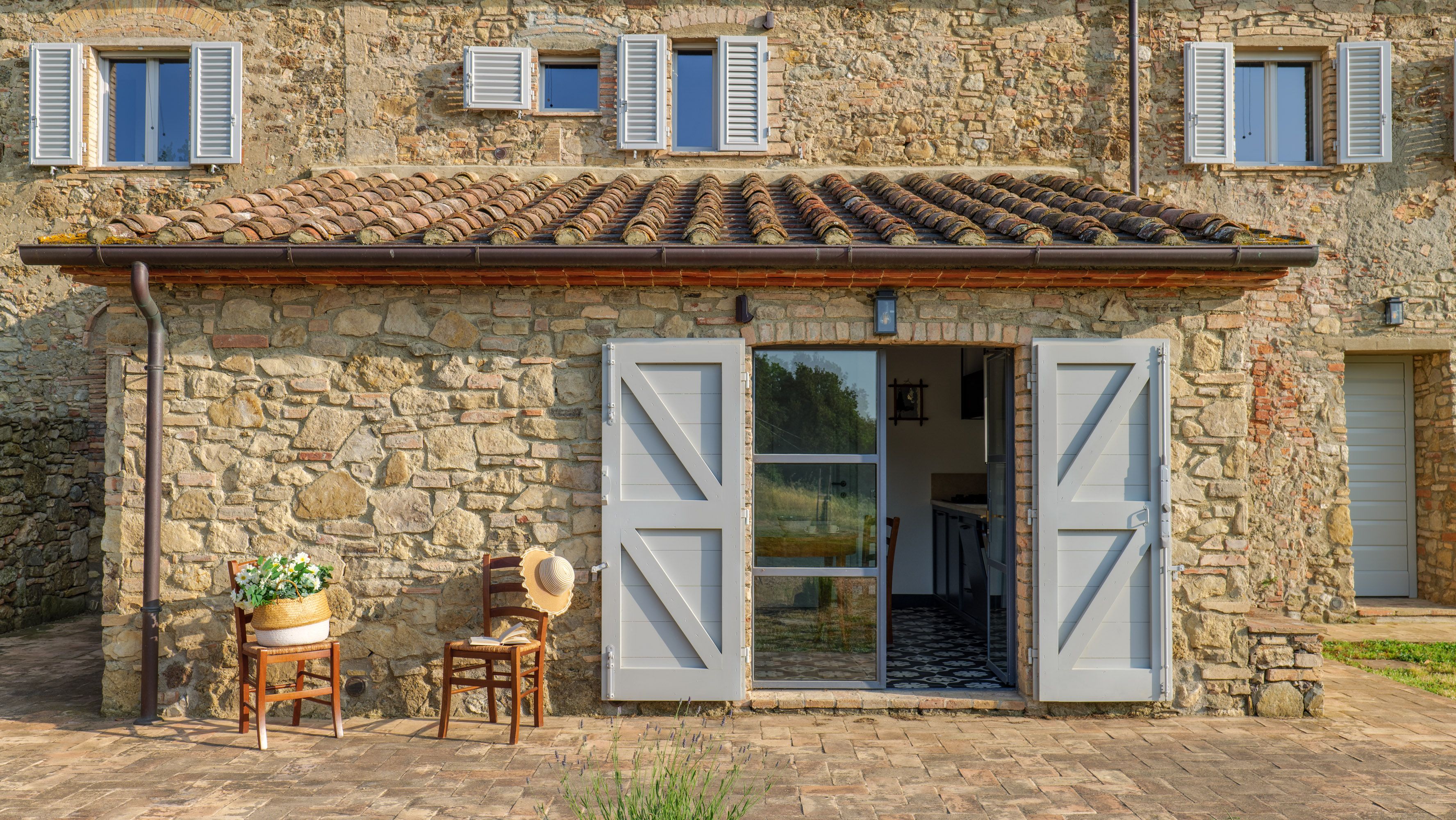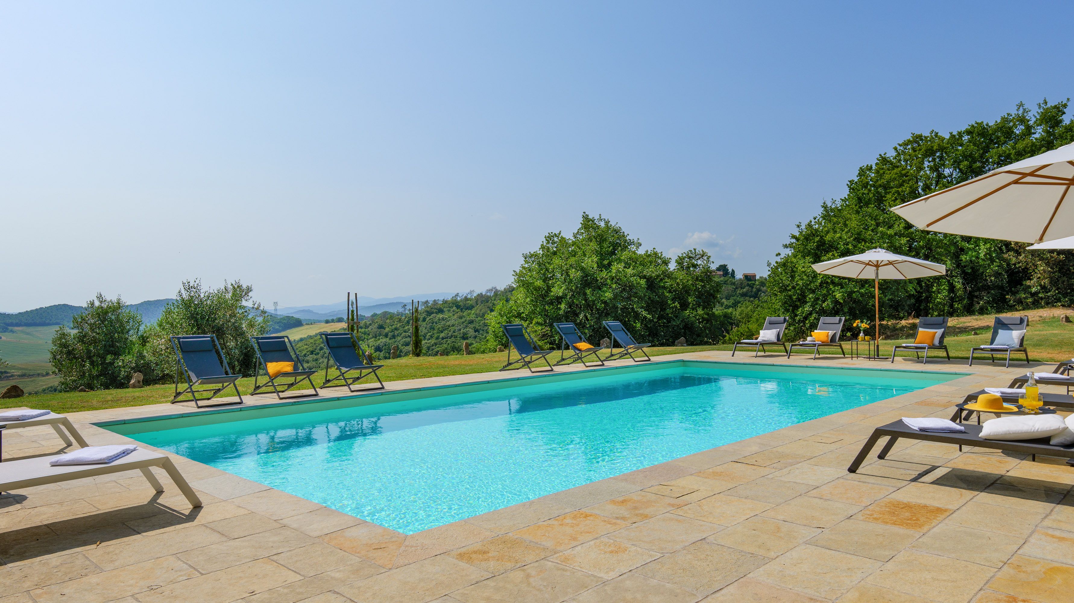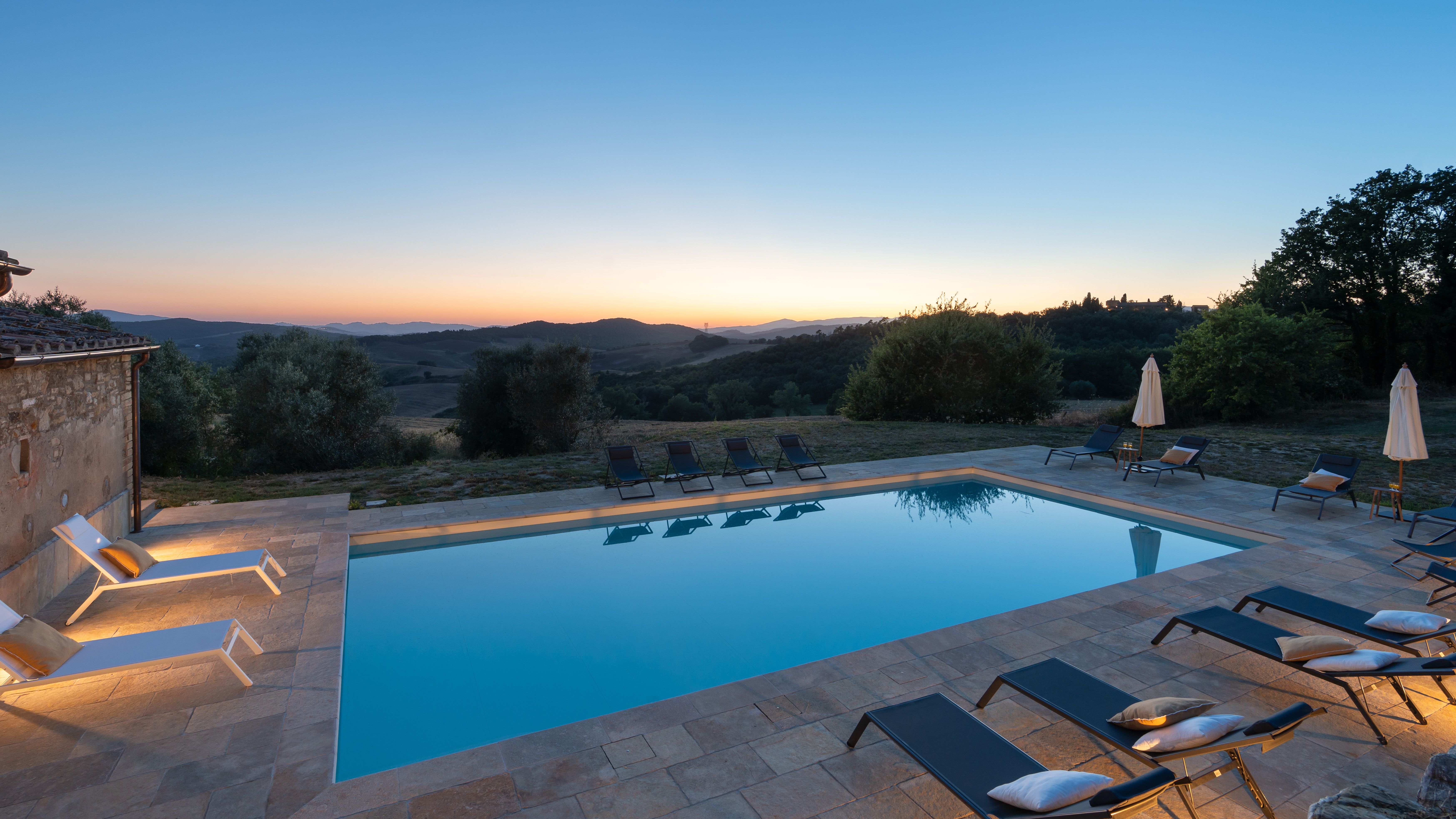 This glorious villa is nestled amid the hills of Val di Cecina, within easy reach of Volterra, San Gimignano, and Siena. From its raised position, it offers panoramic views of the countryside, adding to the tranquil vibe. The farmhouse, dating back to the mid 1800s, has been renovated to retain its charm while adding contemporary touches. We love the exposed beams and terracotta floors paired with floor-to-ceiling windows that show off the stunning vistas. Swim in the private pool in the well-kept garden, before dining on the terrace – it’s a splendid spot for sunset.
