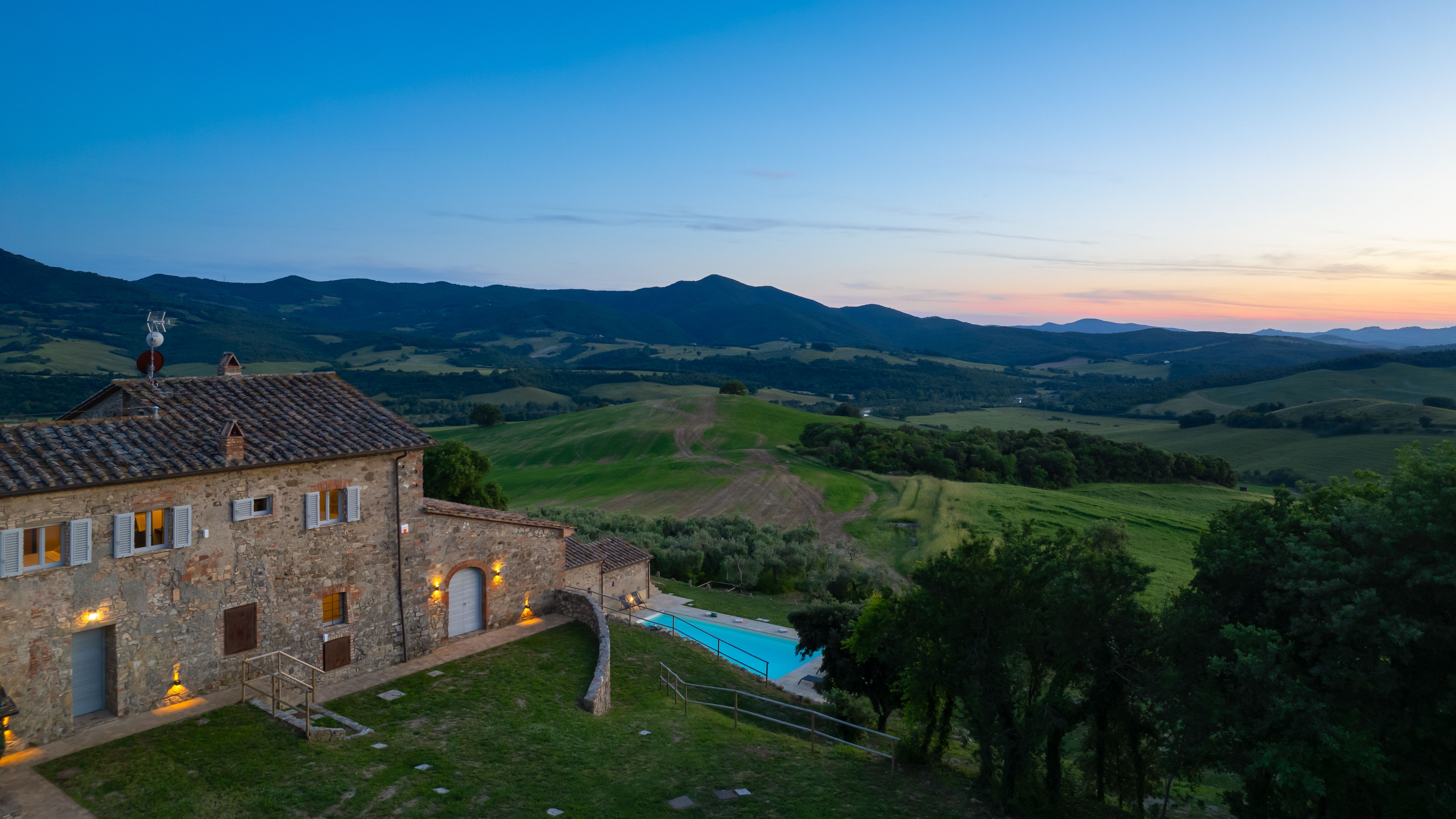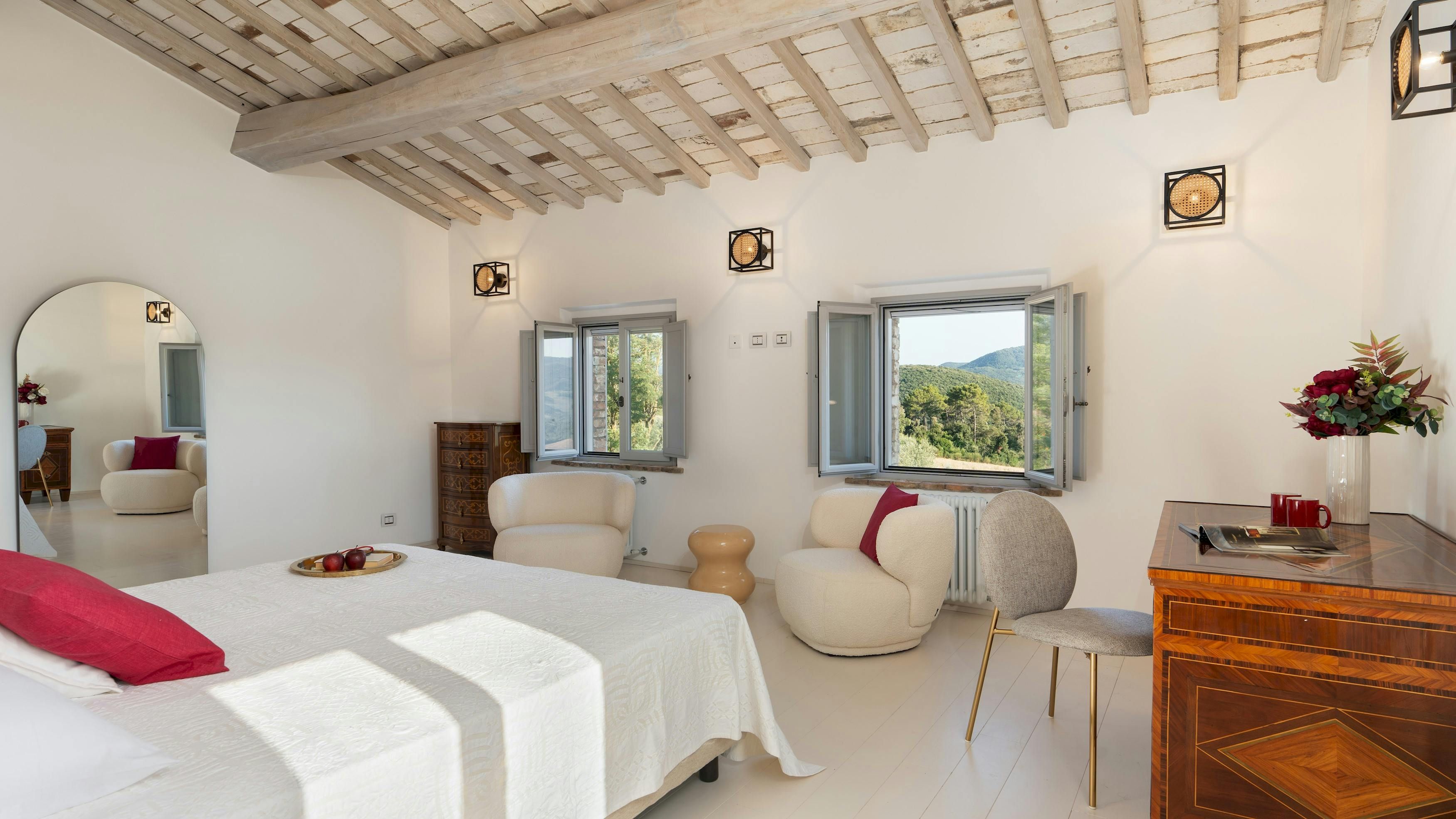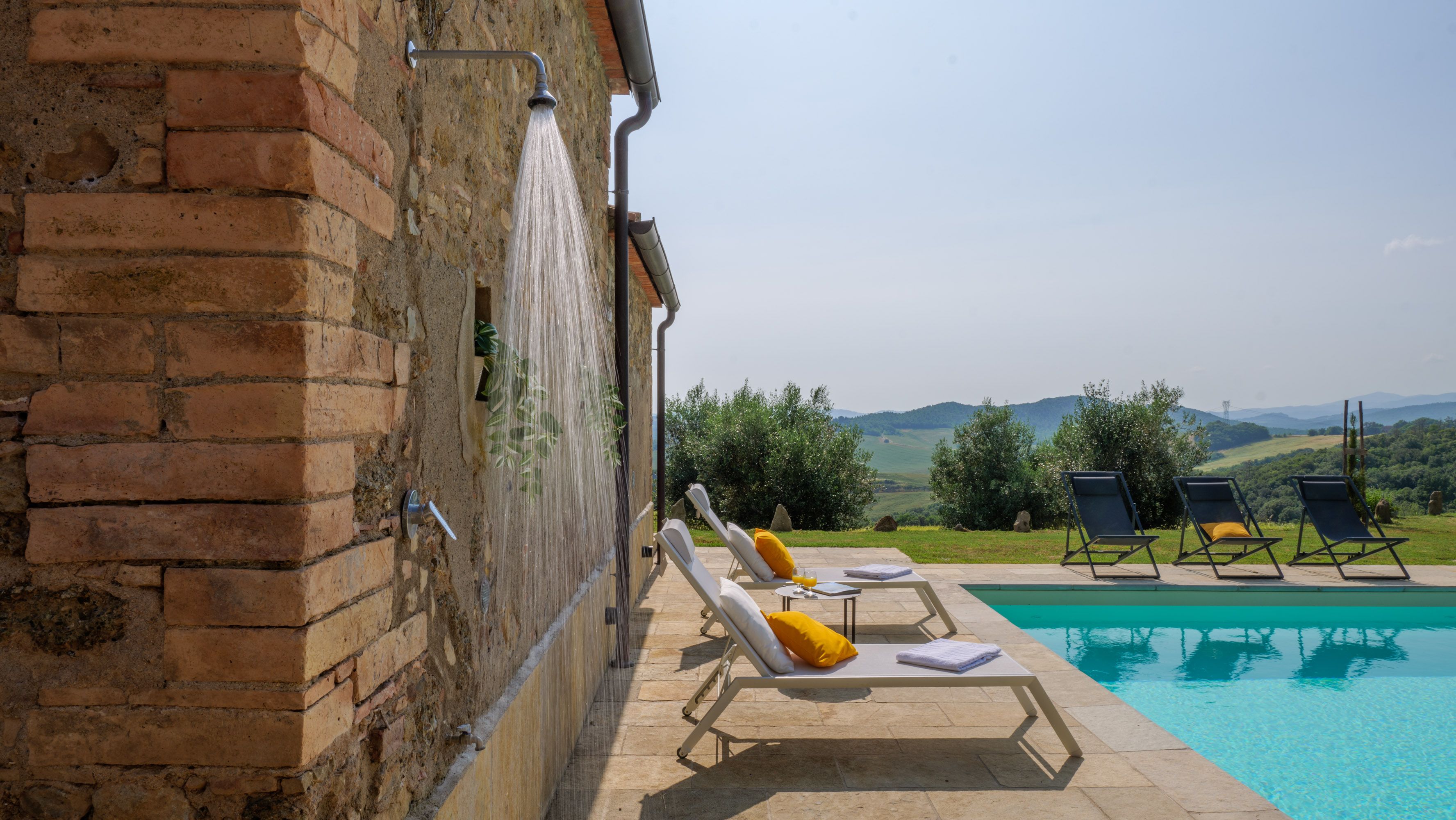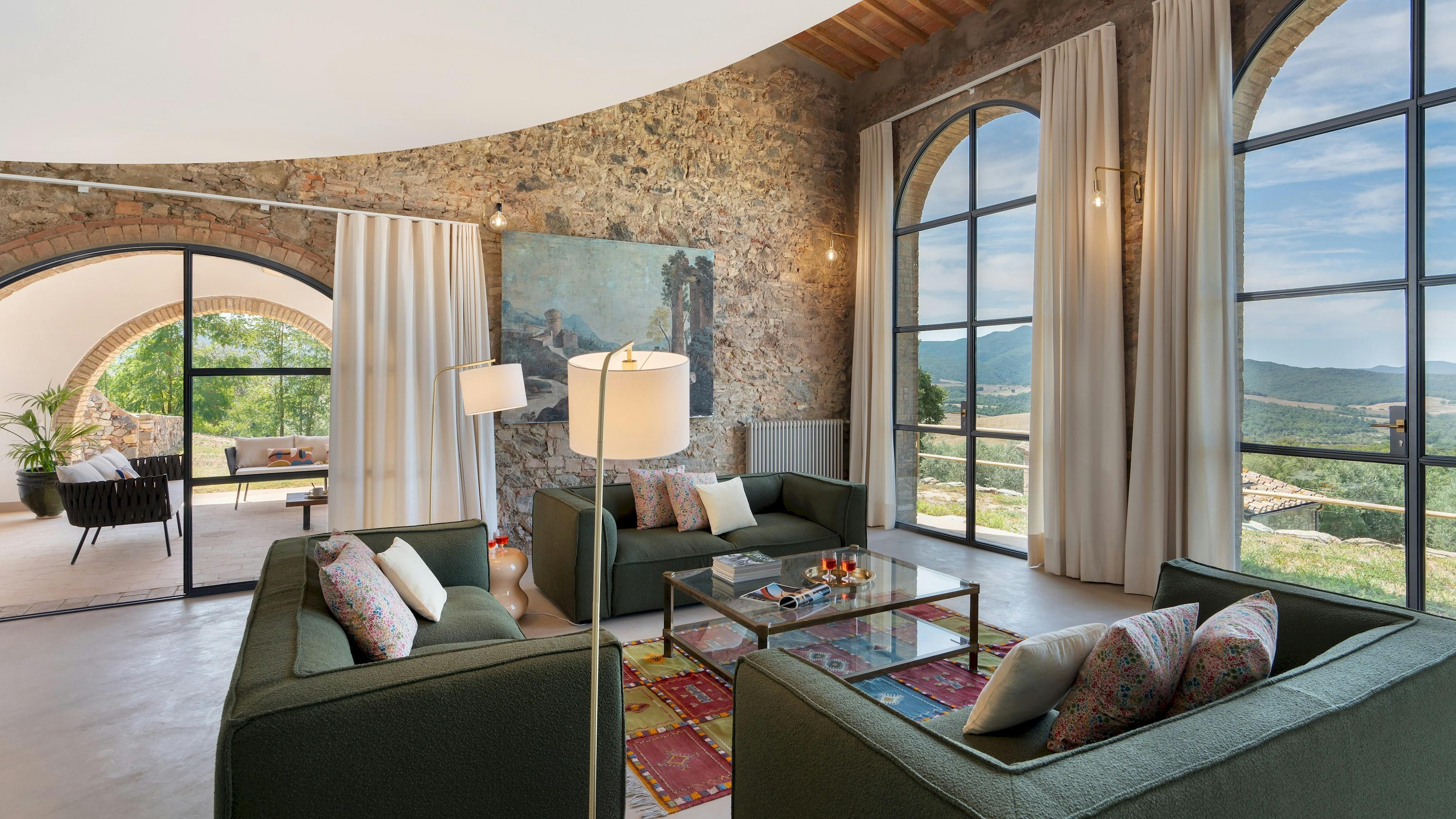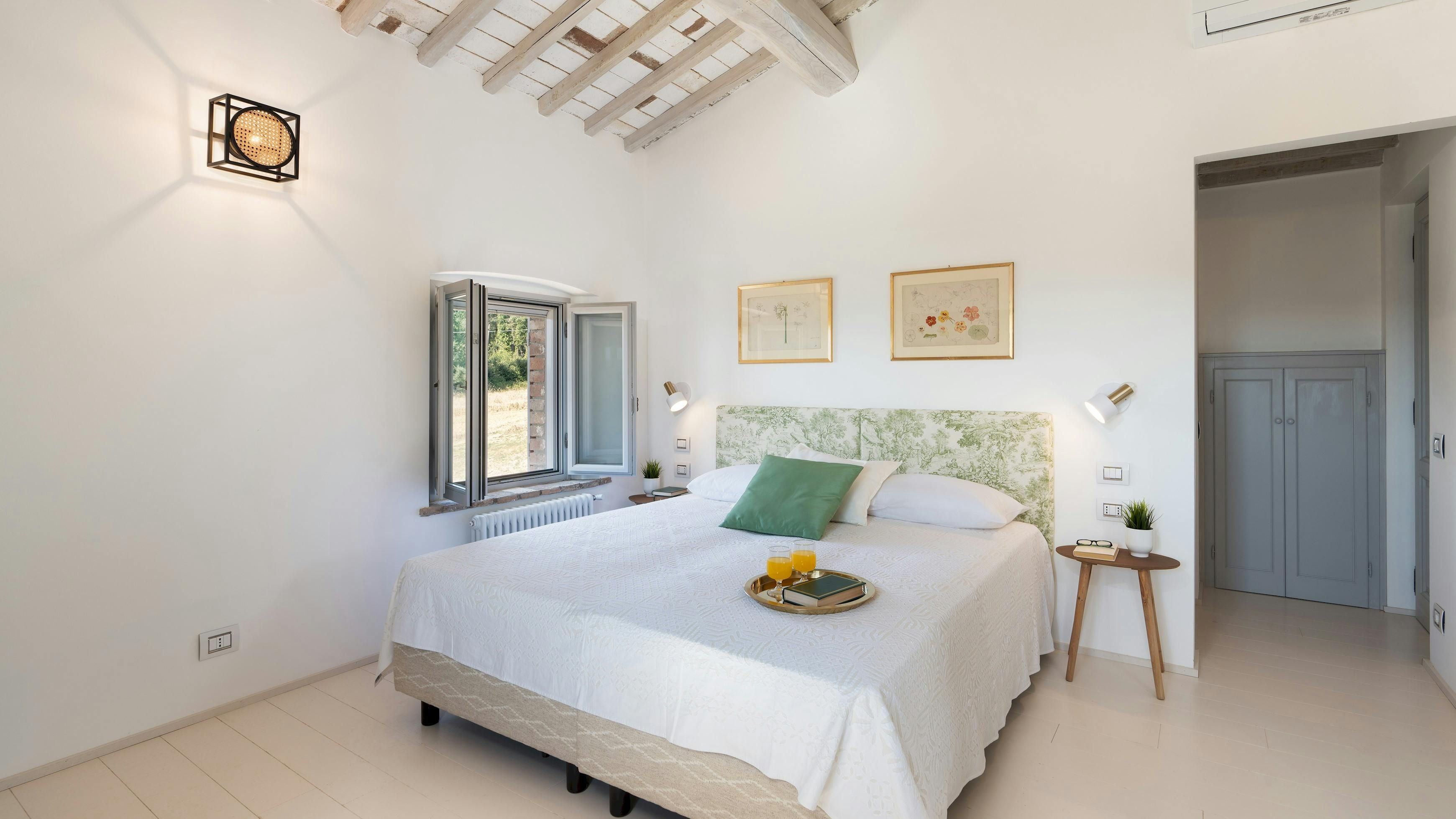 This glorious villa is nestled amid the hills of Val di Cecina, within easy reach of Volterra, San Gimignano, and Siena. From its raised position, it offers panoramic views of the countryside, adding to the tranquil vibe. The farmhouse, dating back to the mid 1800s, has been renovated to retain its charm while adding contemporary touches. We love the exposed beams and terracotta floors paired with floor-to-ceiling windows that show off the stunning vistas. Swim in the private pool in the well-kept garden, before dining on the terrace – it’s a splendid spot for sunset.