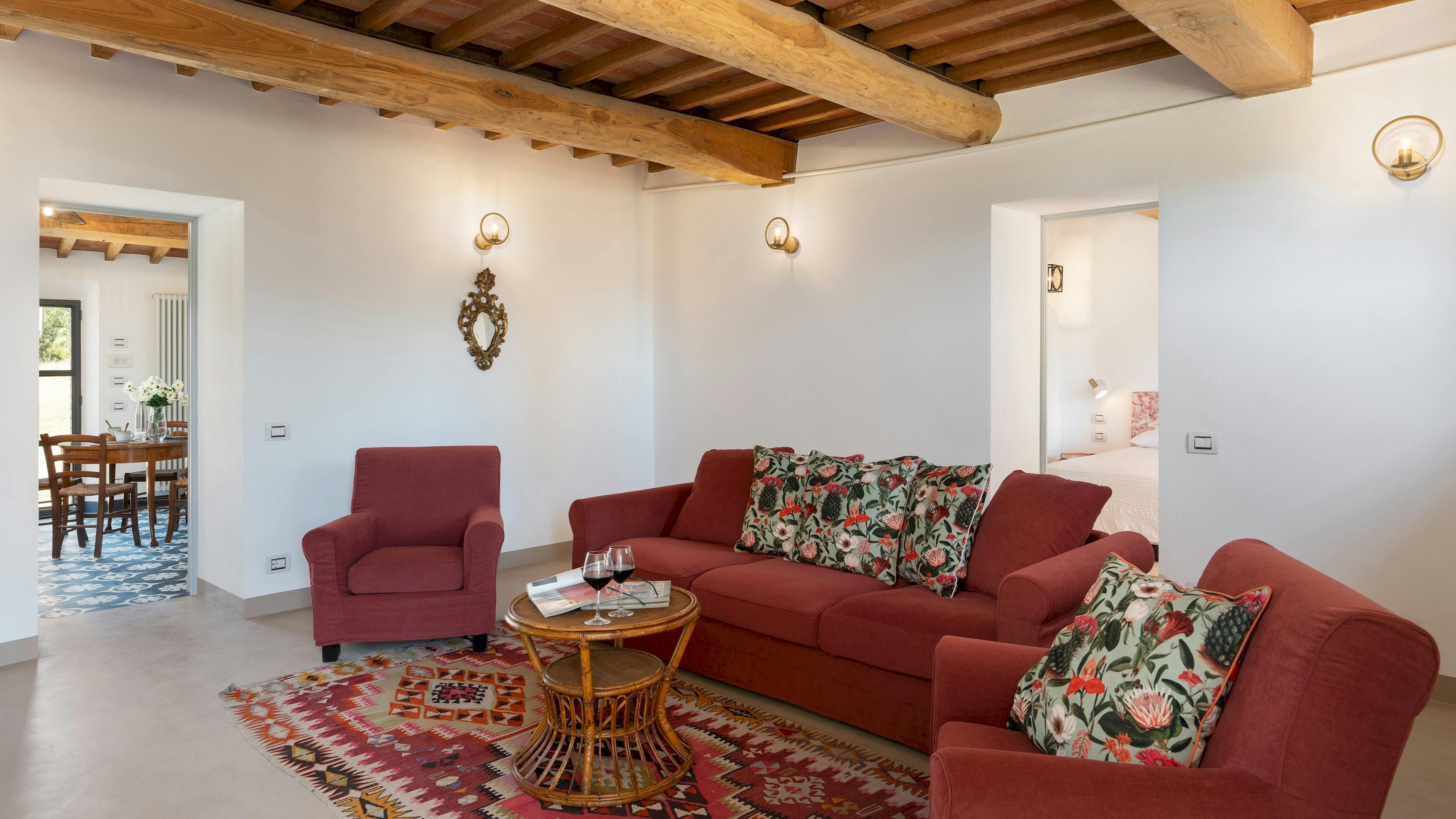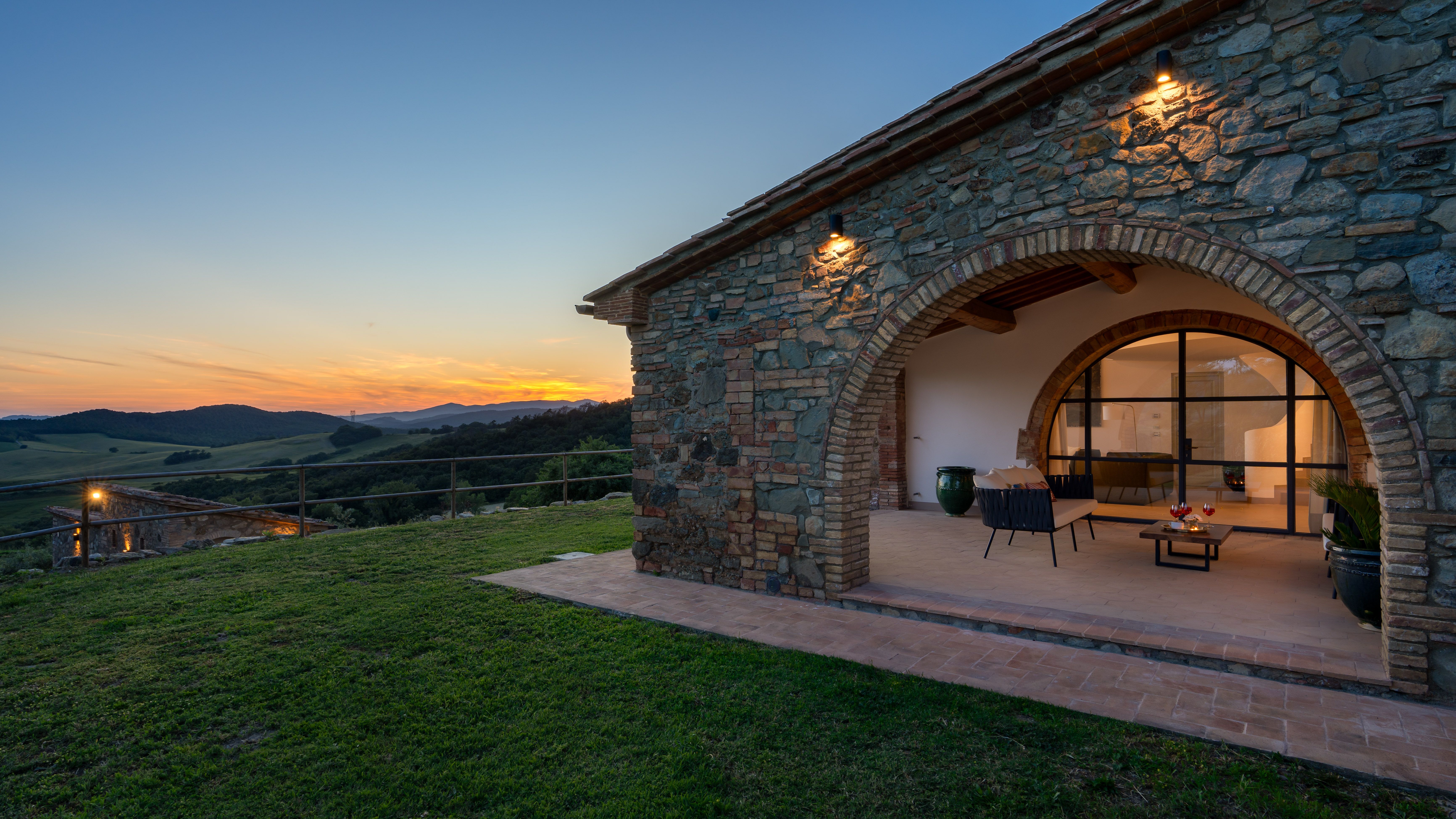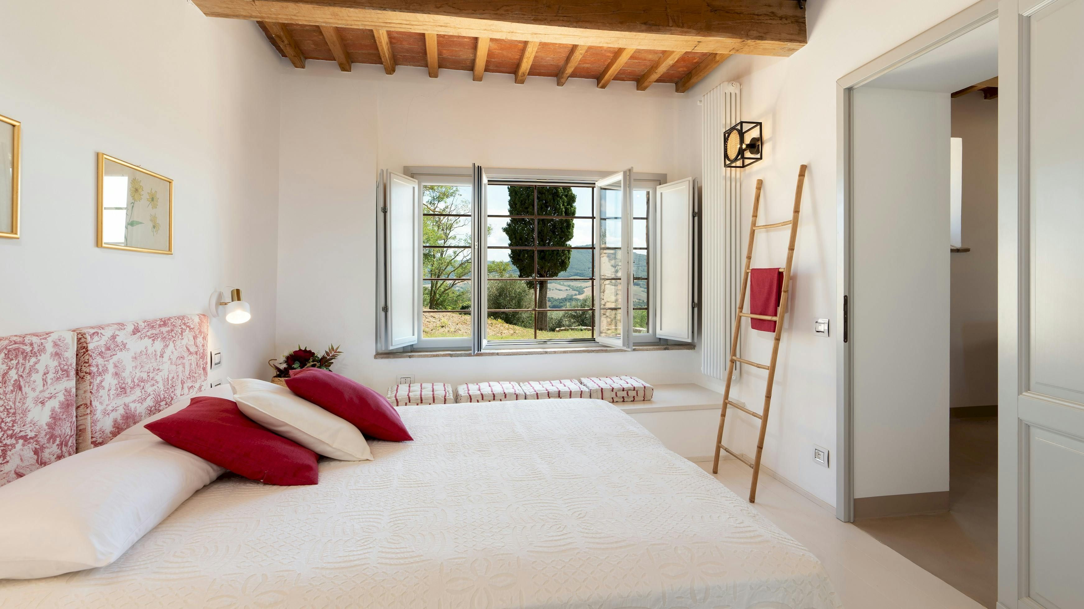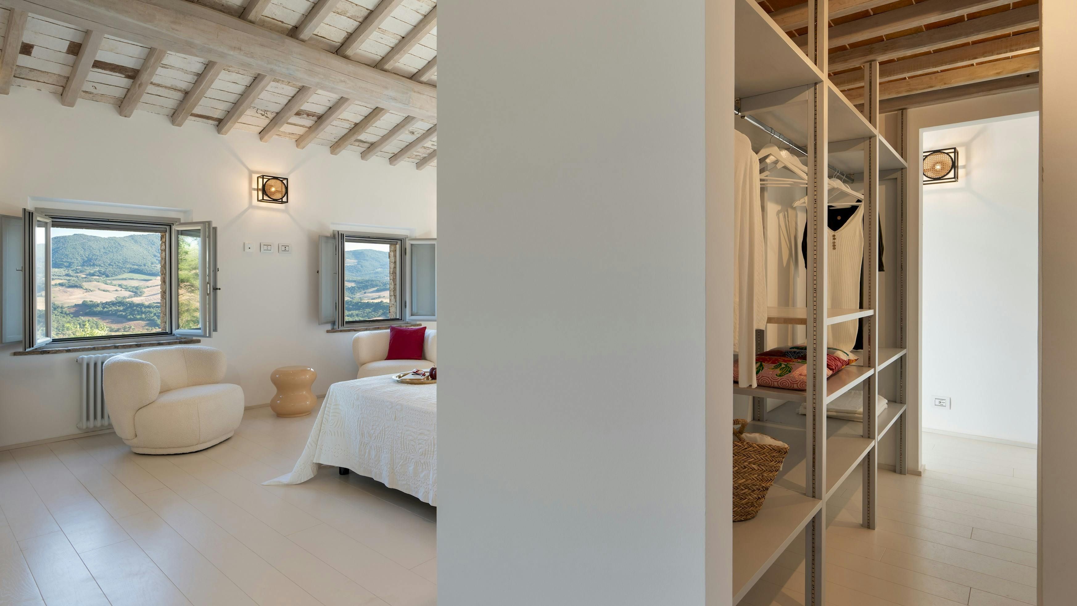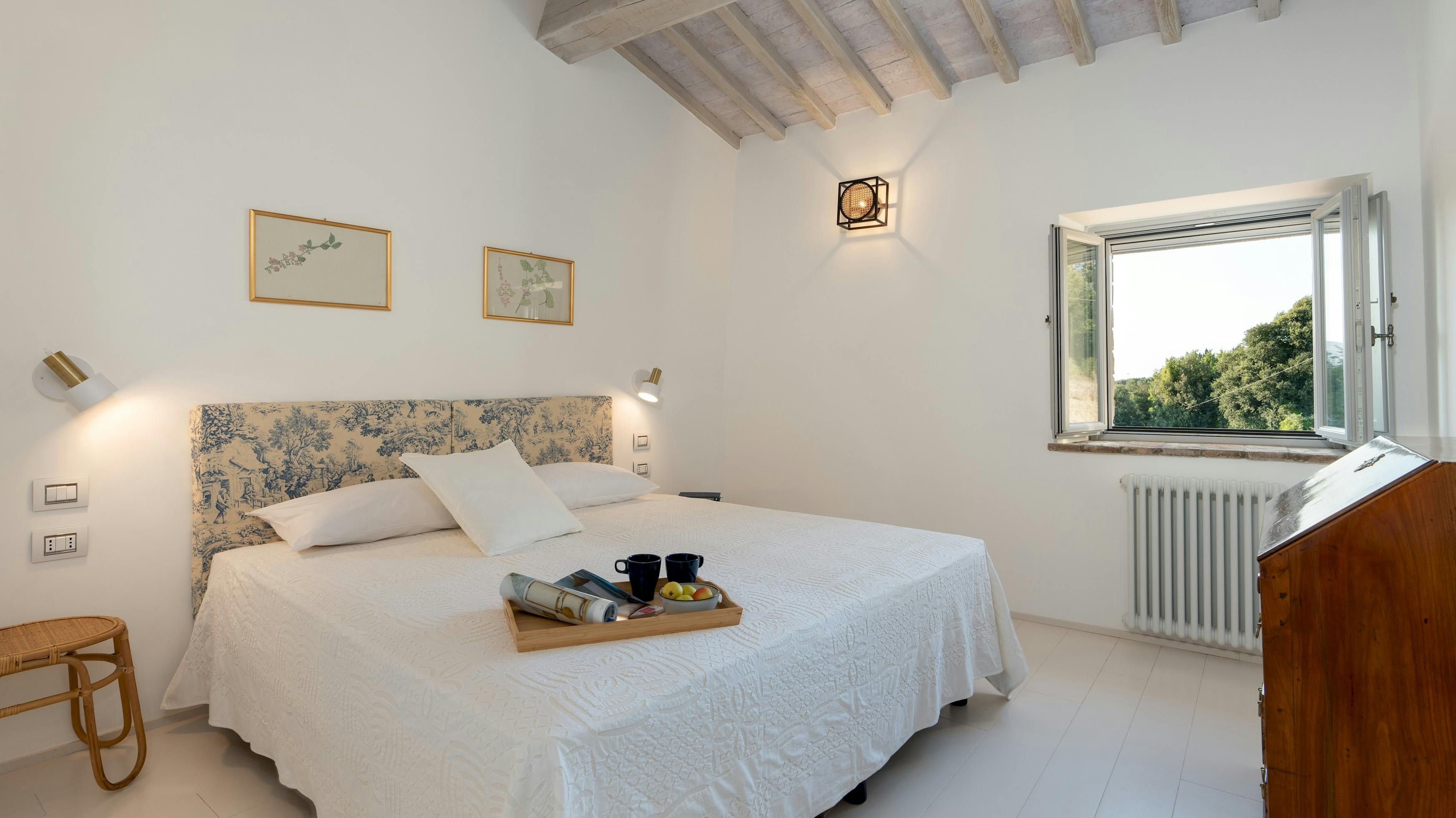 This glorious villa is nestled amid the hills of Val di Cecina, within easy reach of Volterra, San Gimignano, and Siena. From its raised position, it offers panoramic views of the countryside, adding to the tranquil vibe. The farmhouse, dating back to the mid 1800s, has been renovated to retain its charm while adding contemporary touches. We love the exposed beams and terracotta floors paired with floor-to-ceiling windows that show off the stunning vistas. Swim in the private pool in the well-kept garden, before dining on the terrace – it’s a splendid spot for sunset.