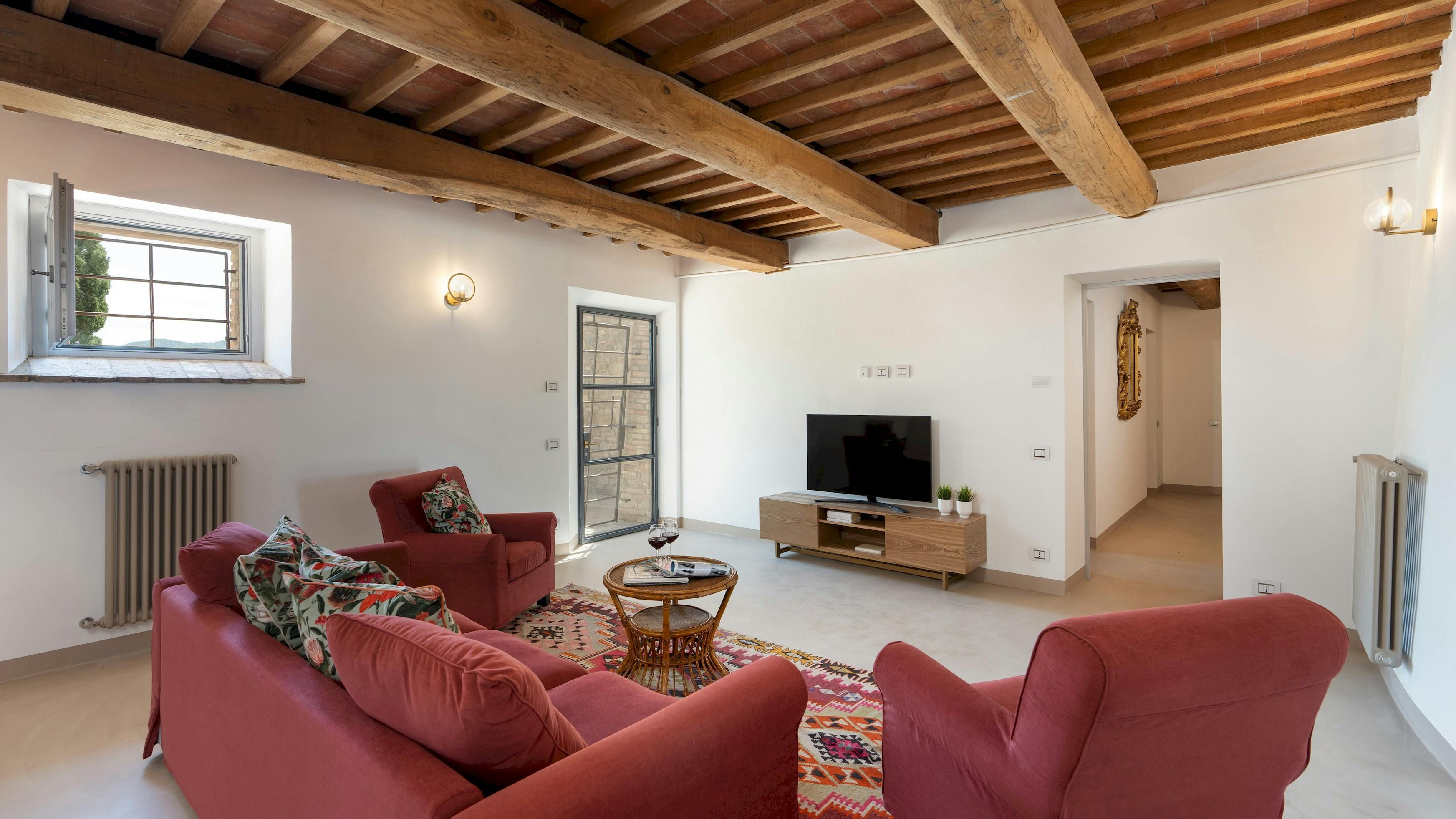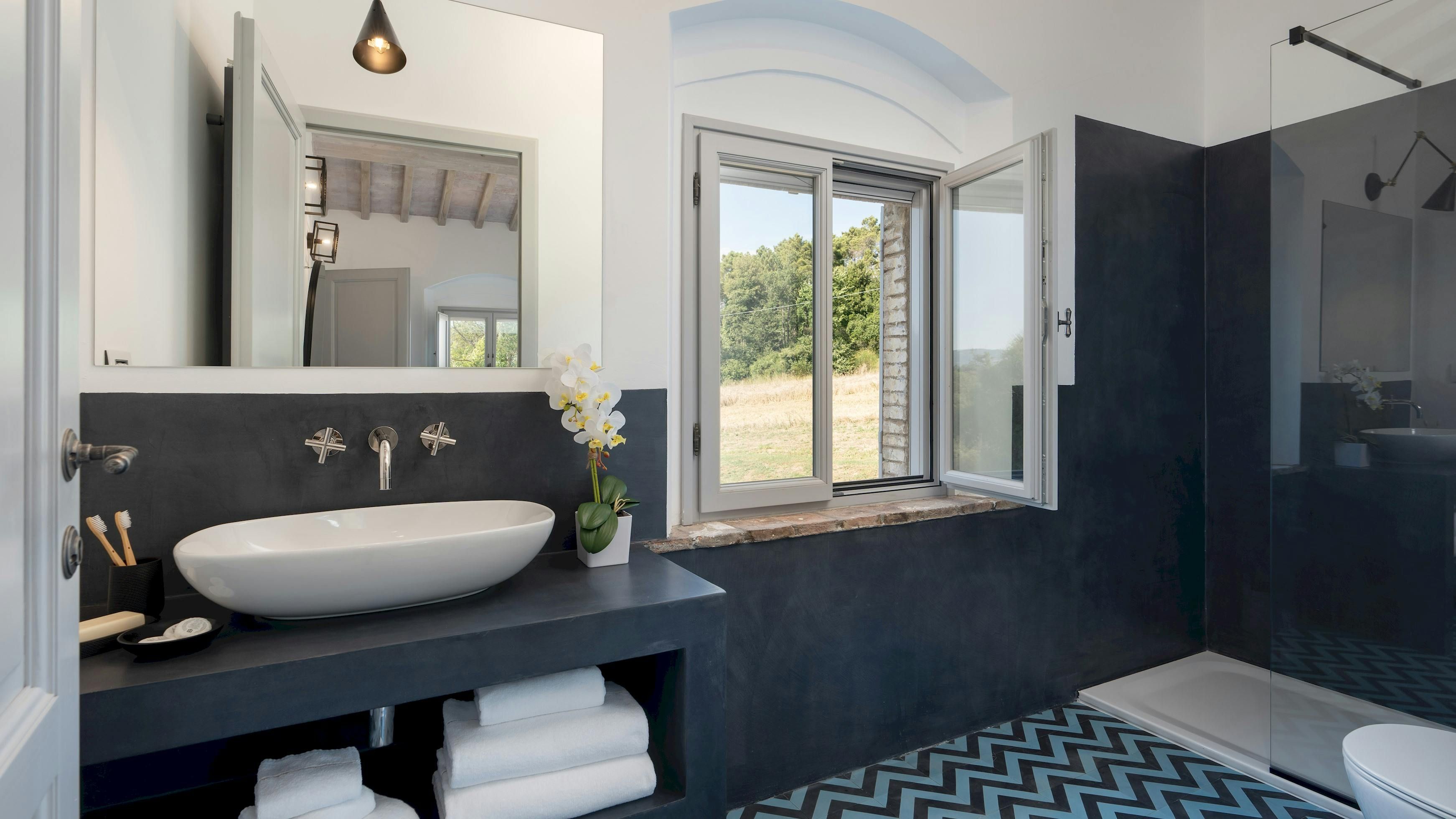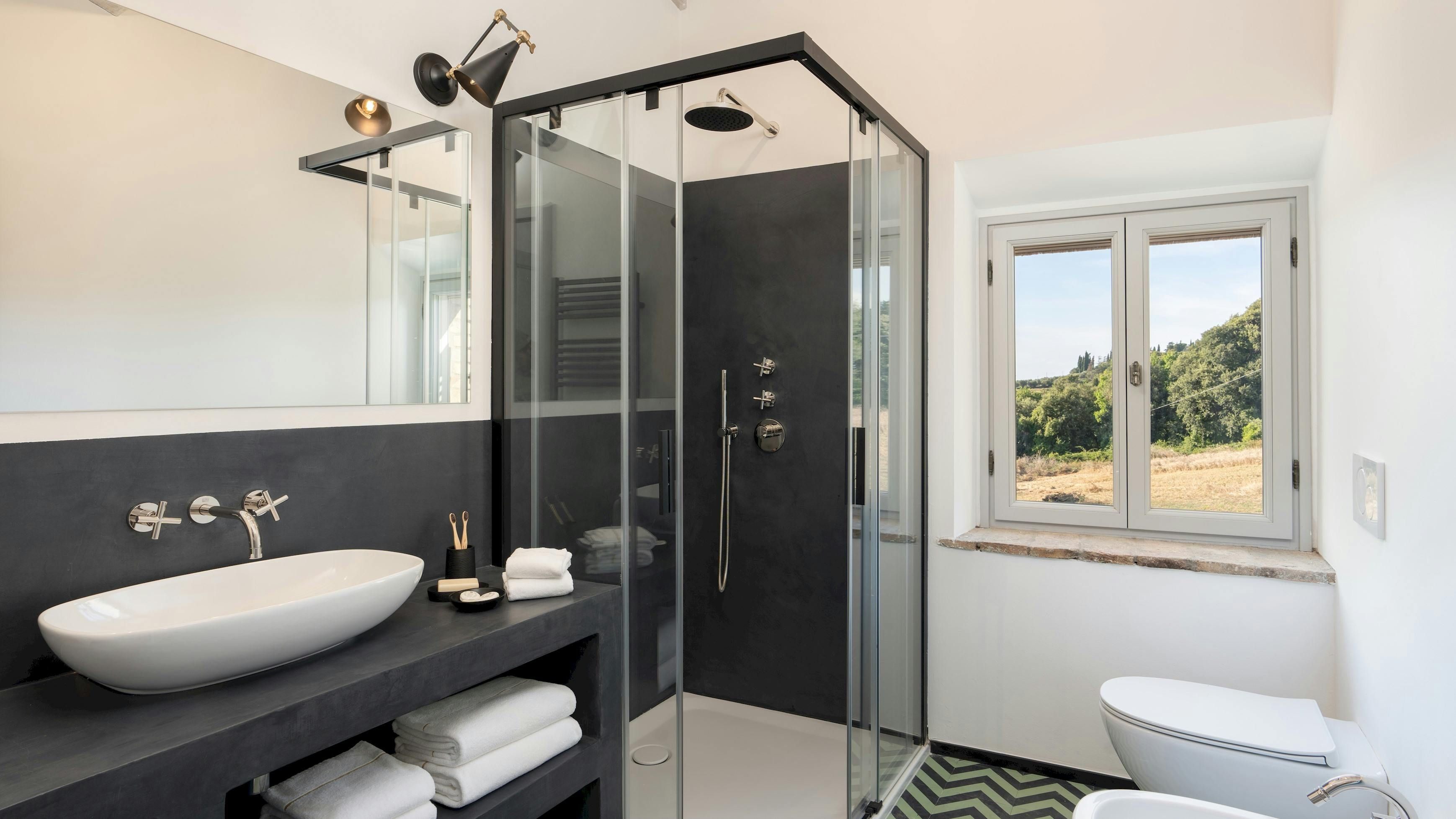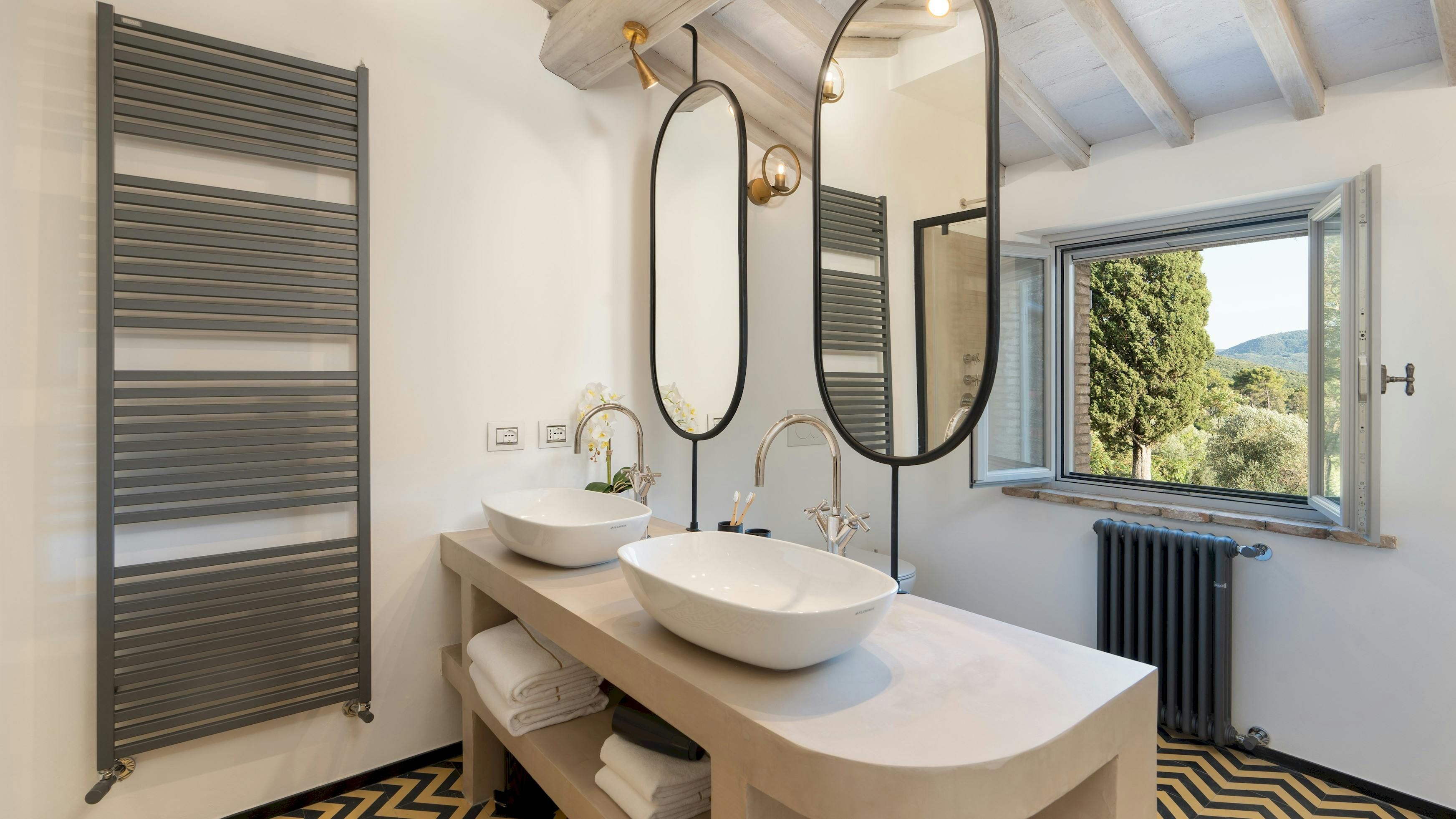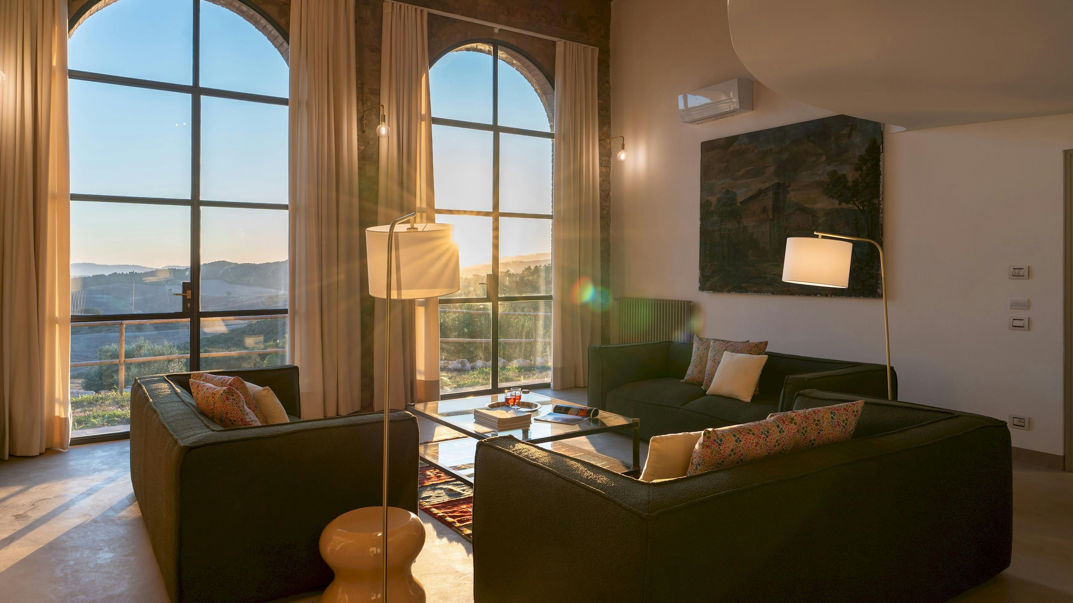 This glorious villa is nestled amid the hills of Val di Cecina, within easy reach of Volterra, San Gimignano, and Siena. From its raised position, it offers panoramic views of the countryside, adding to the tranquil vibe. The farmhouse, dating back to the mid 1800s, has been renovated to retain its charm while adding contemporary touches. We love the exposed beams and terracotta floors paired with floor-to-ceiling windows that show off the stunning vistas. Swim in the private pool in the well-kept garden, before dining on the terrace – it’s a splendid spot for sunset.
