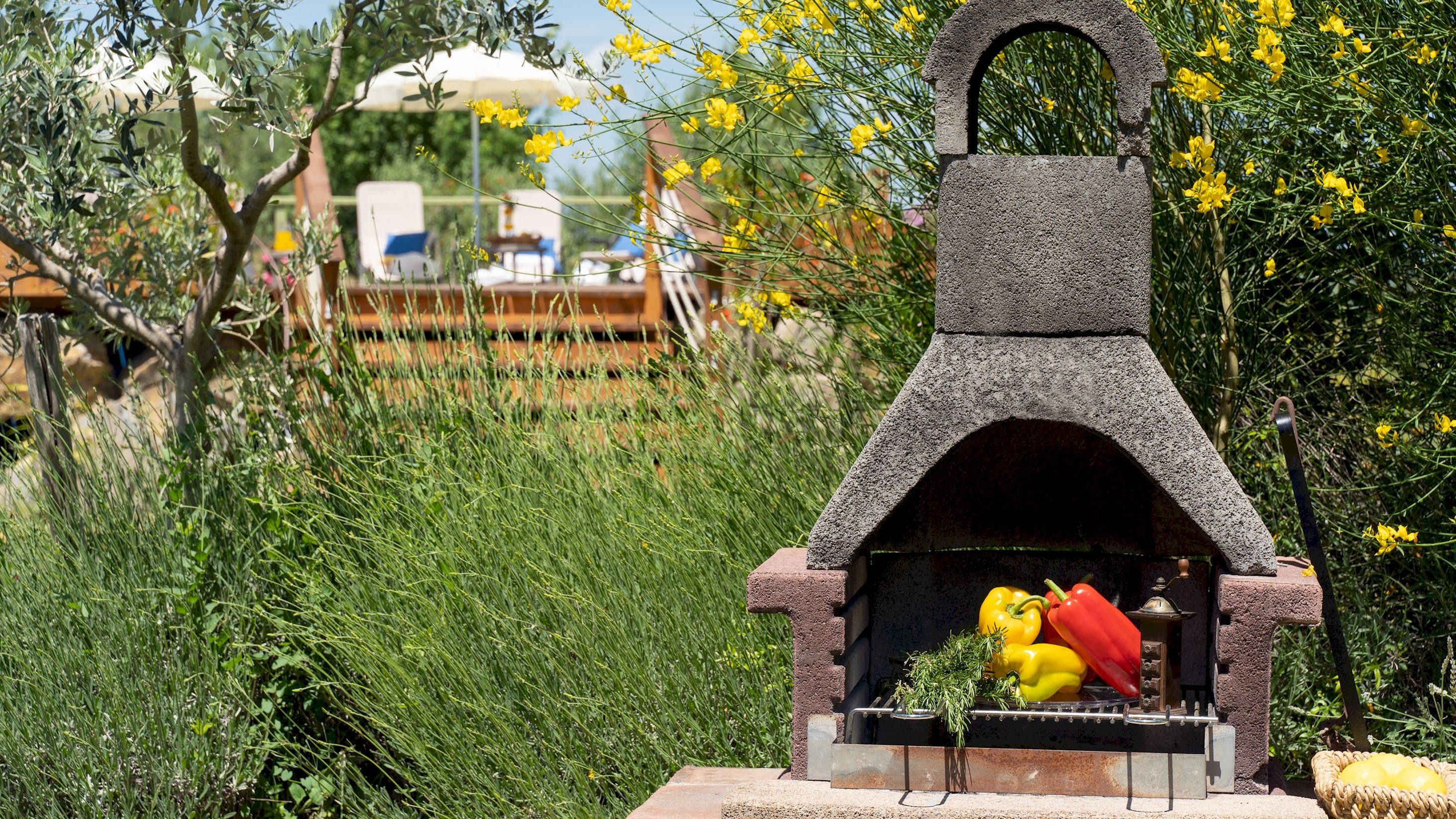 Relax in the pretty garden bordered by a hedge for privacy – we adore the vistas over the tapestry of fields in the distance from the swimming pool. Later, fire up the brick-built barbecue and enjoy an alfresco lunch in the portico or the second dining area under the shade of a pergola.