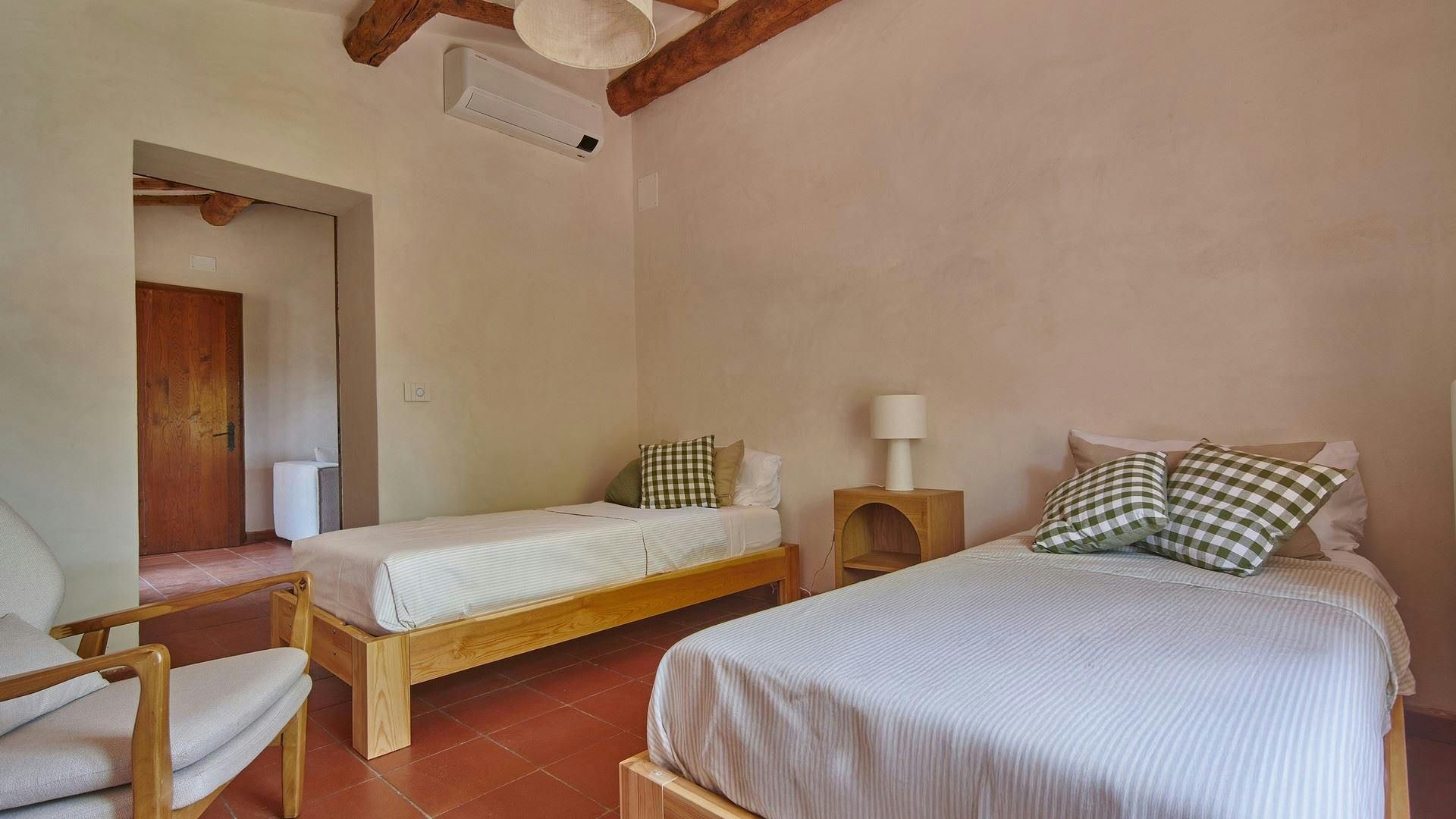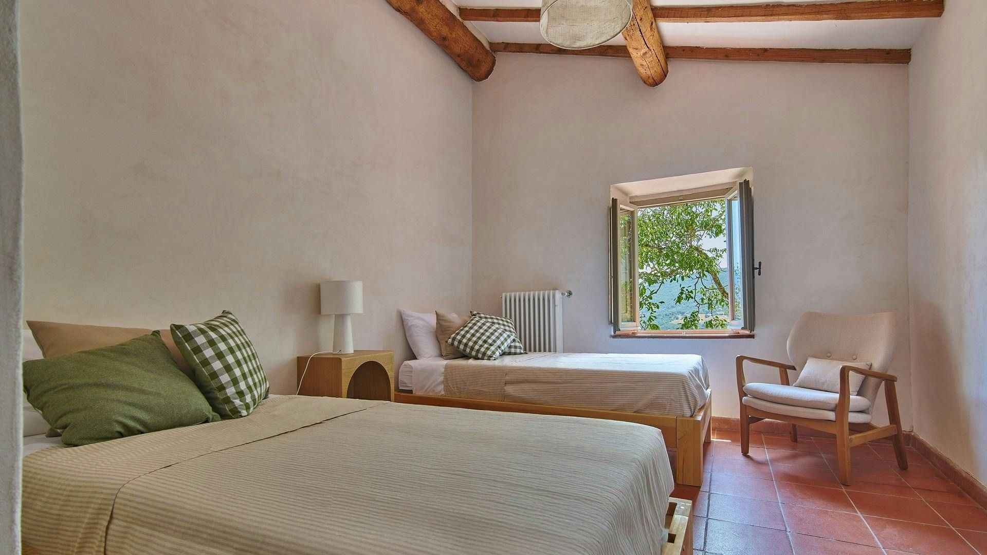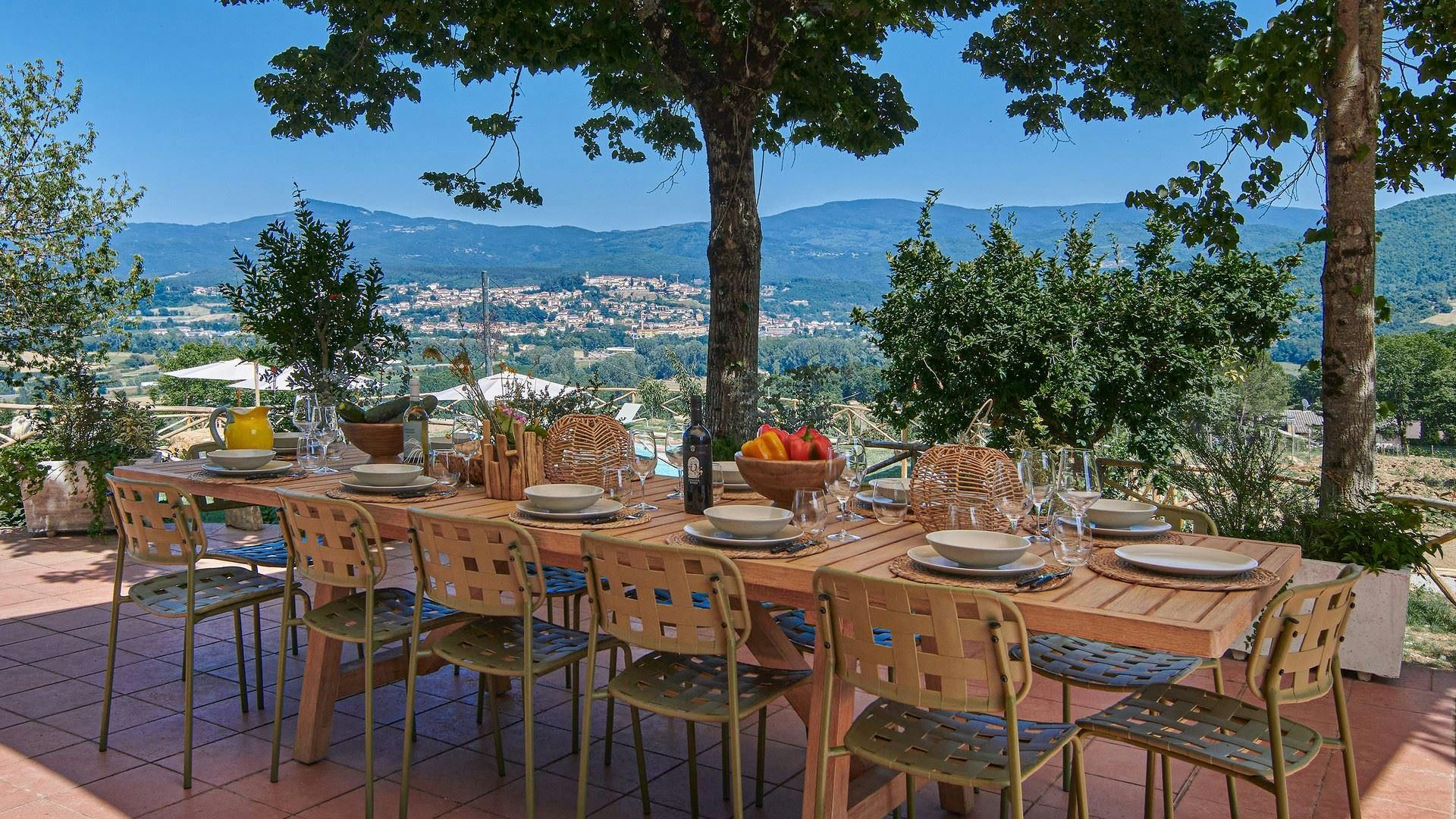 Escape to the Tuscan countryside with this stylish home. Surrounded by vineyards and olive groves, the setting is idyllic, and the views of the Casentino Valley are stunning. Enjoy the vistas from the private pool and hot tub or the dining terrace – just imagine the sunsets from here. This place consists of the main house and a cottage, and there are several lounges, so there’s plenty of room for family or friends. Inside, we love the blend of character features, such as the beams, with the modern furnishings. Located just 3 kilometres from the centre of historic Bibbiena, you’ll find plenty of shops and restaurants. Within walking distance, there’s also a boutique winery, where you can sample the sparkling wines.