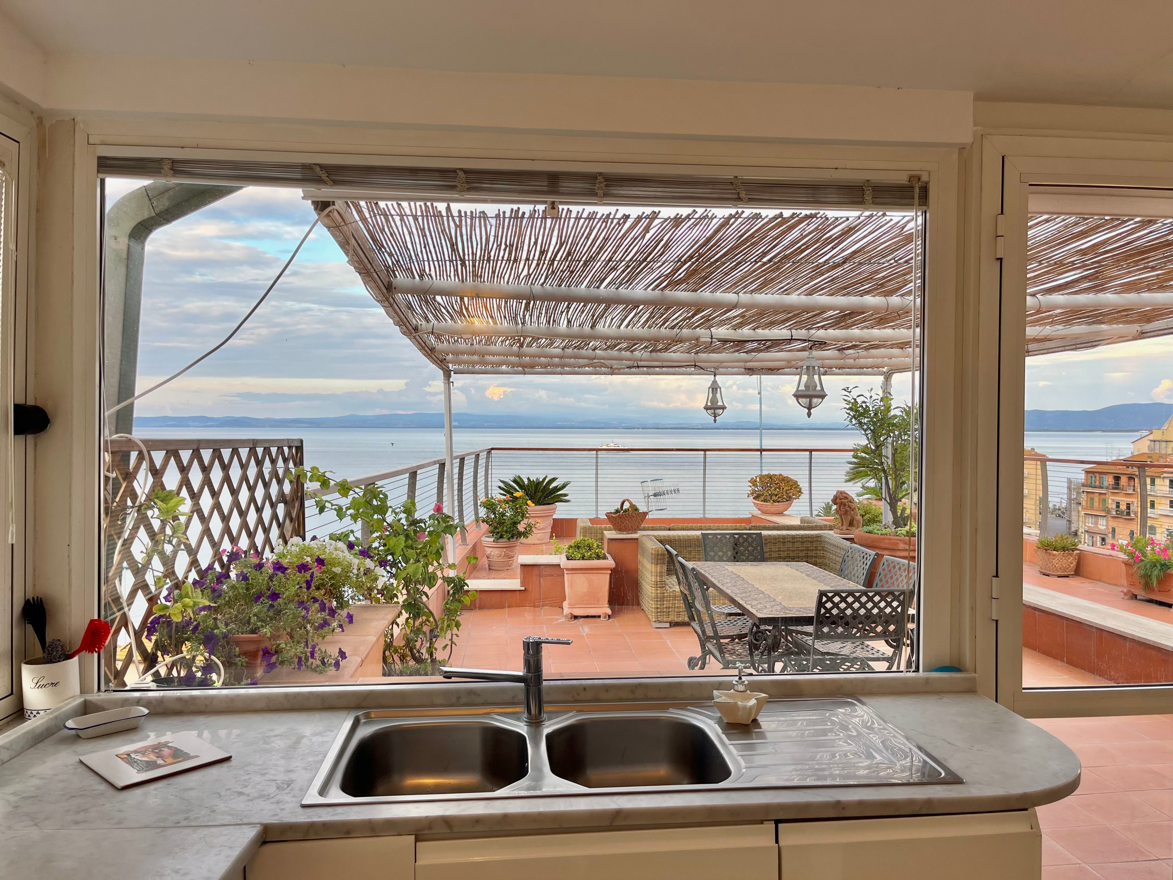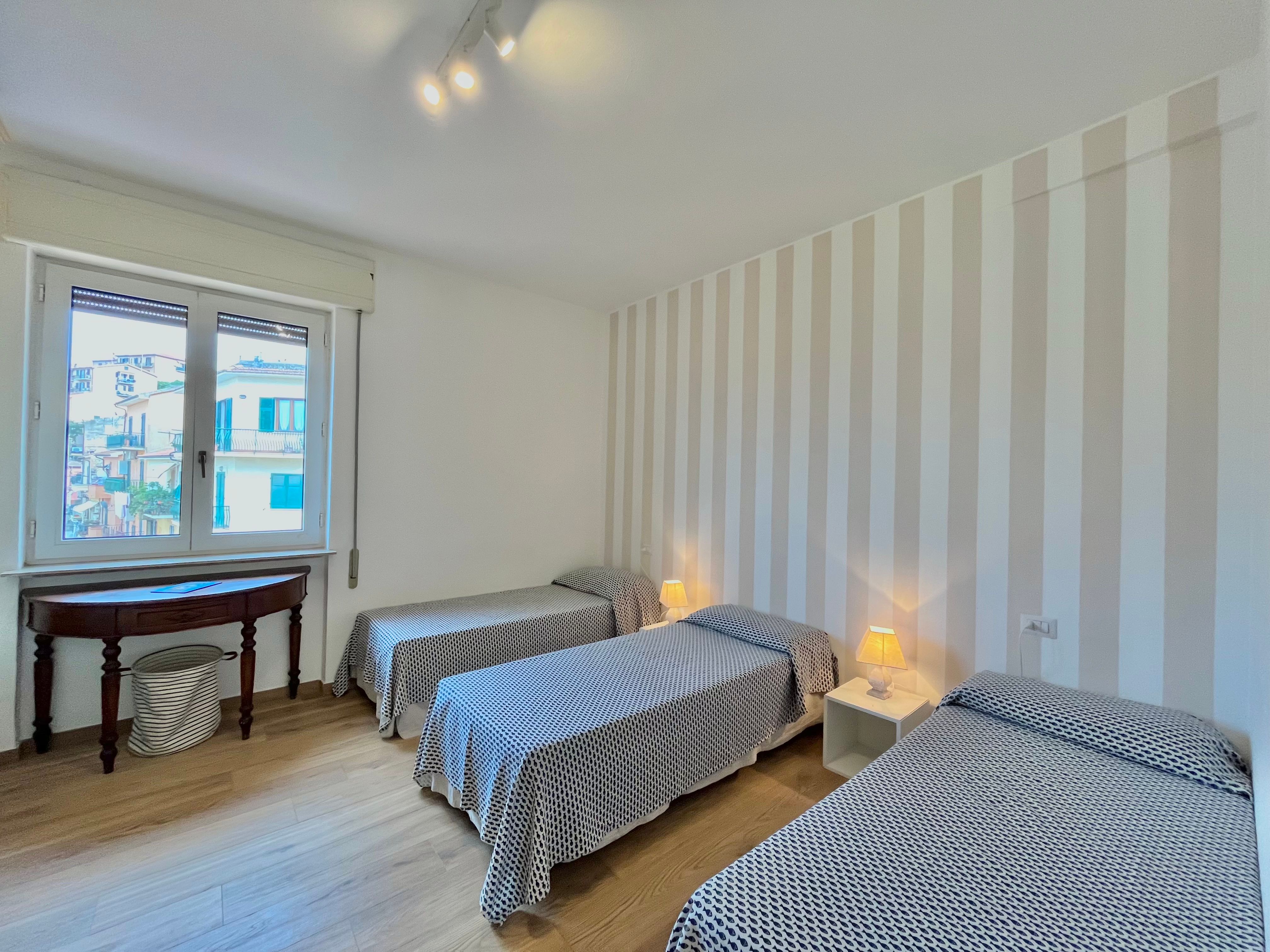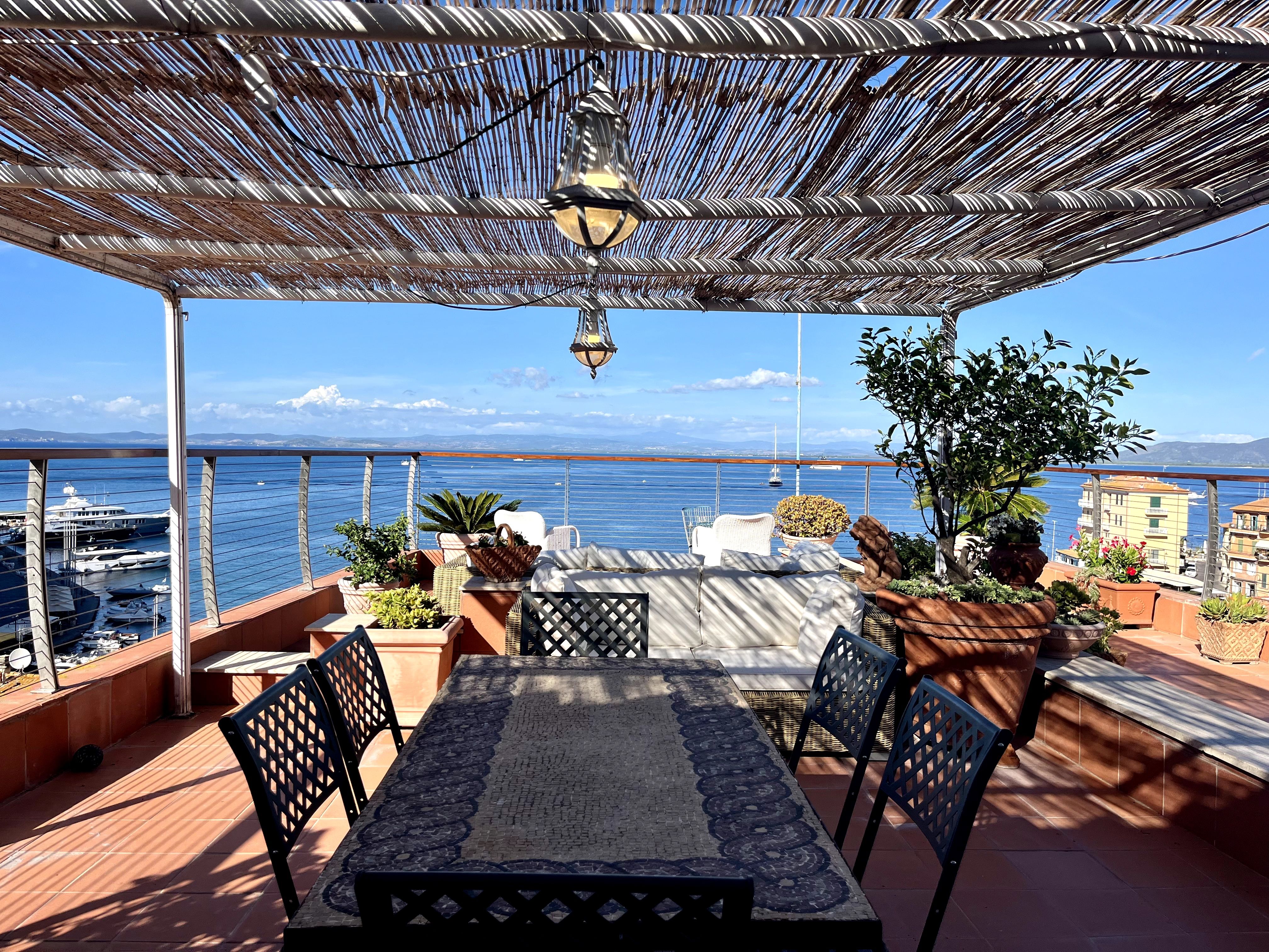 The penthouse of a historic building in Porto Santo Stefano, this is a stunning home. There’s no lift, so the four flights of stairs pose a bit of a challenge, but the payoff is instant – the views are spectacular. Step straight outside to the terrace to gaze out at the sea as you plan alfresco feasts. The view can be admired from inside, too, whether you’re cooking in the kitchen or lounging in the living space. The sleeping arrangements are ideal for a family, with a triple room for the kids. At full occupancy, one guest will sleep on a sofa bed, but they’ll still have their own space and privacy.