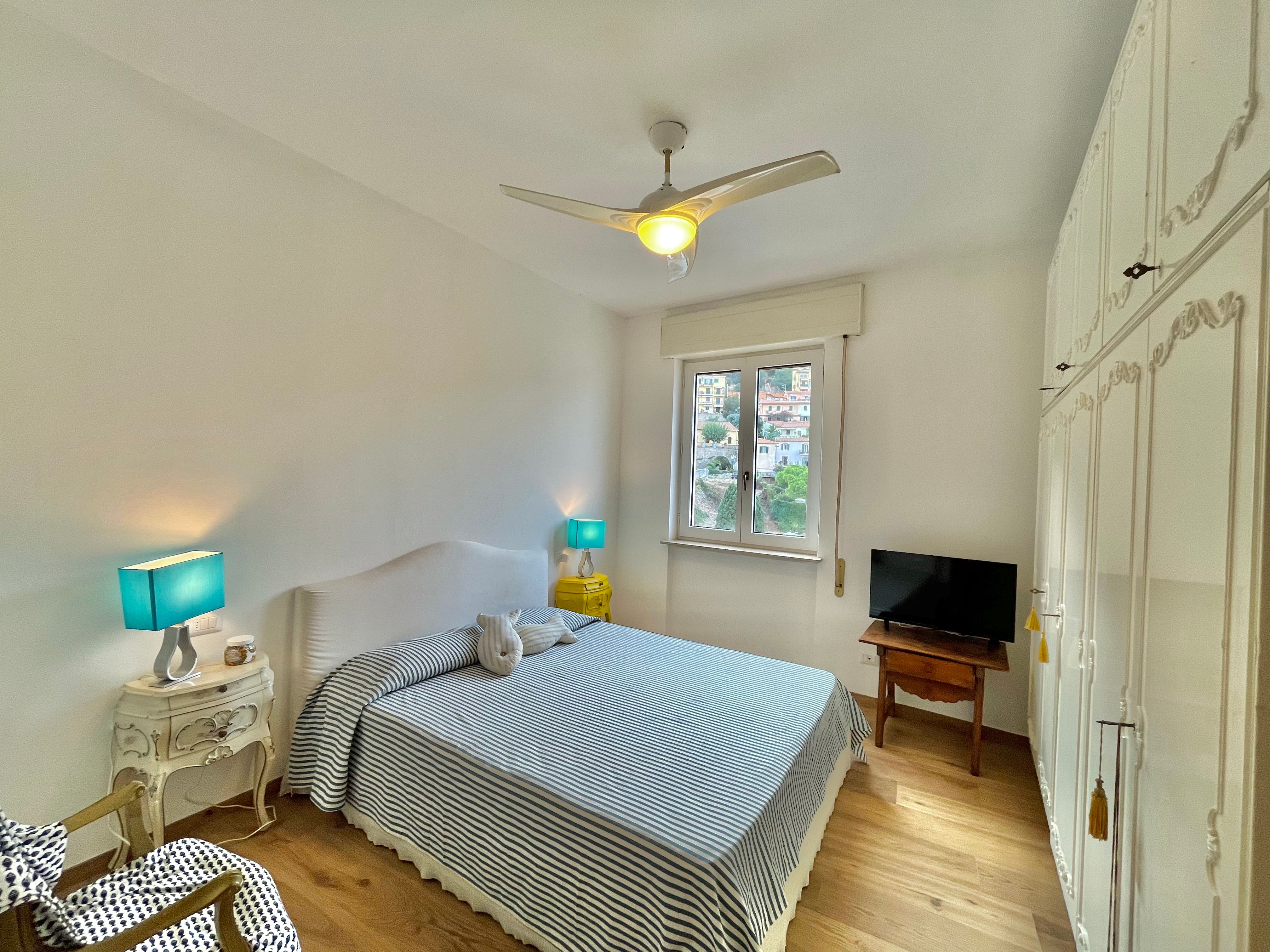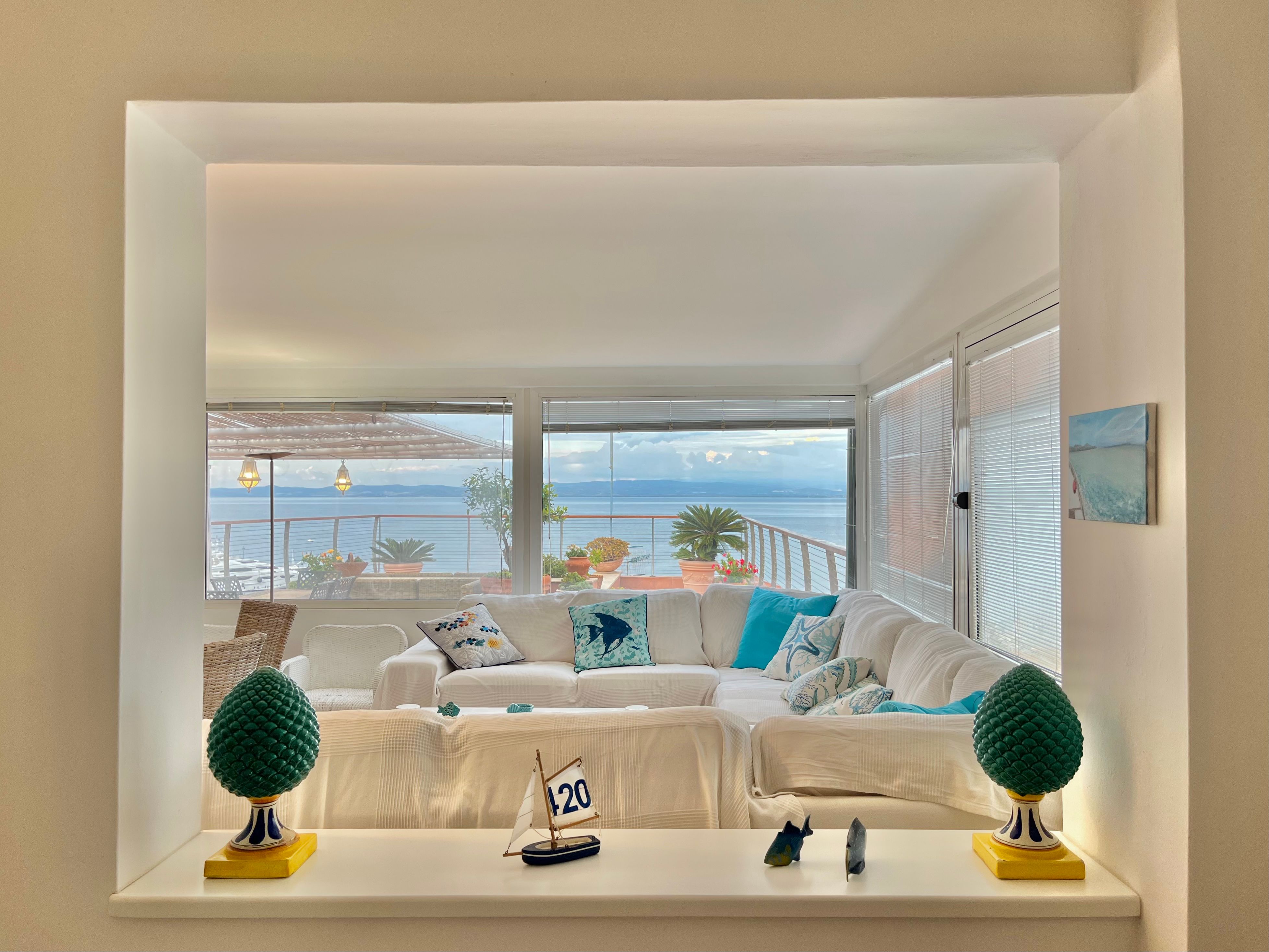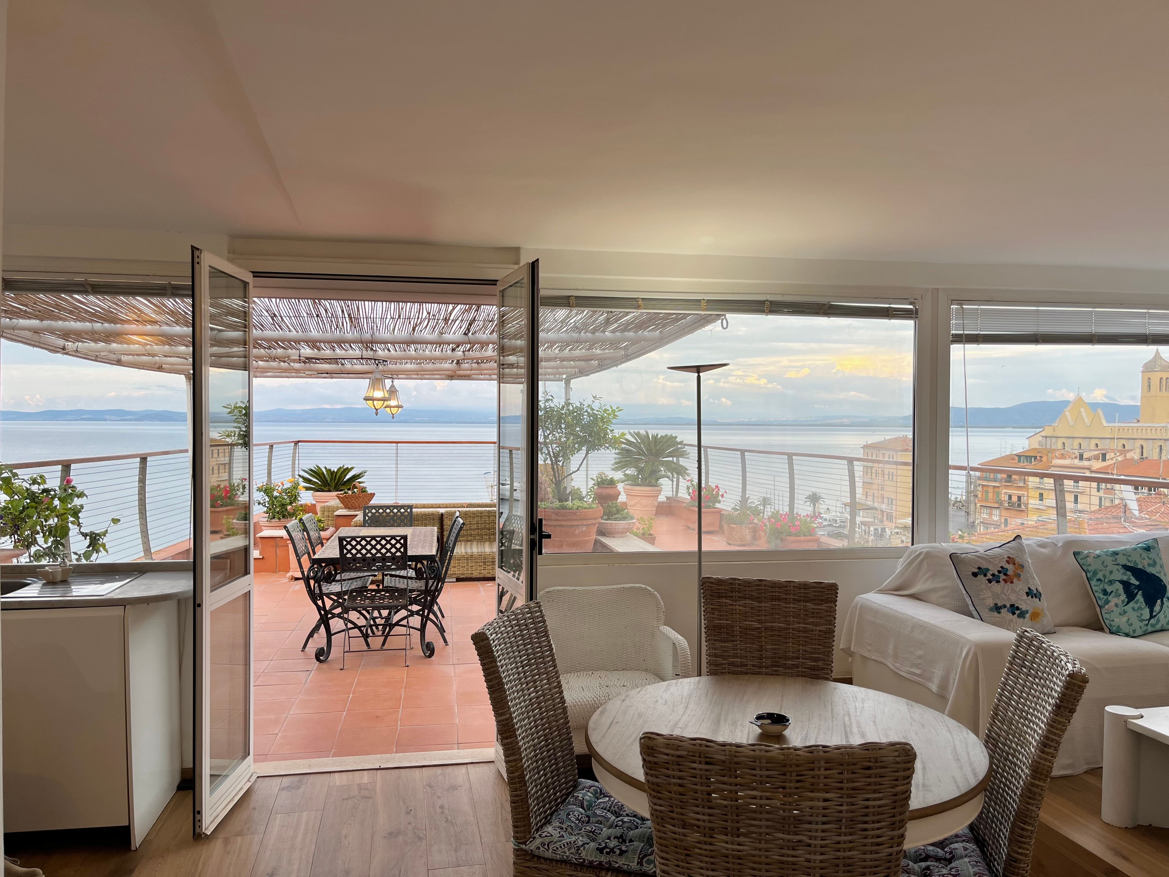 The penthouse of a historic building in Porto Santo Stefano, this is a stunning home. There’s no lift, so the four flights of stairs pose a bit of a challenge, but the payoff is instant – the views are spectacular. Step straight outside to the terrace to gaze out at the sea as you plan alfresco feasts. The view can be admired from inside, too, whether you’re cooking in the kitchen or lounging in the living space. The sleeping arrangements are ideal for a family, with a triple room for the kids. At full occupancy, one guest will sleep on a sofa bed, but they’ll still have their own space and privacy.