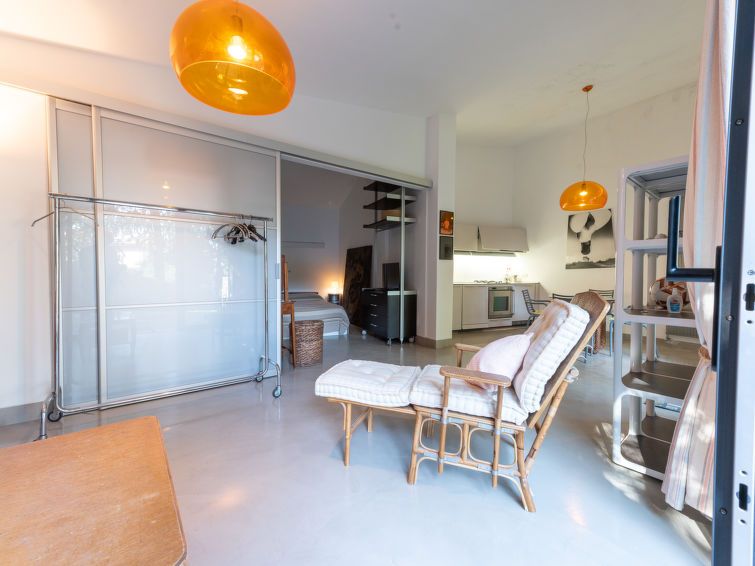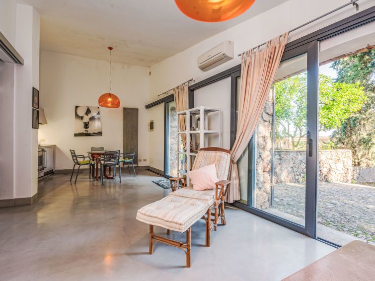 2-room house 40 m2, on the ground floor. Living/dining room with 1 double sofabed. Exit to the garden. 1 double bedroom with shower/bidet/WC. Open kitchen (dishwasher, 4 gas rings). Air-conditioning. Patio. Facilities: Internet (WiFi, free). Parking at the house. Please note: non-smokers only.