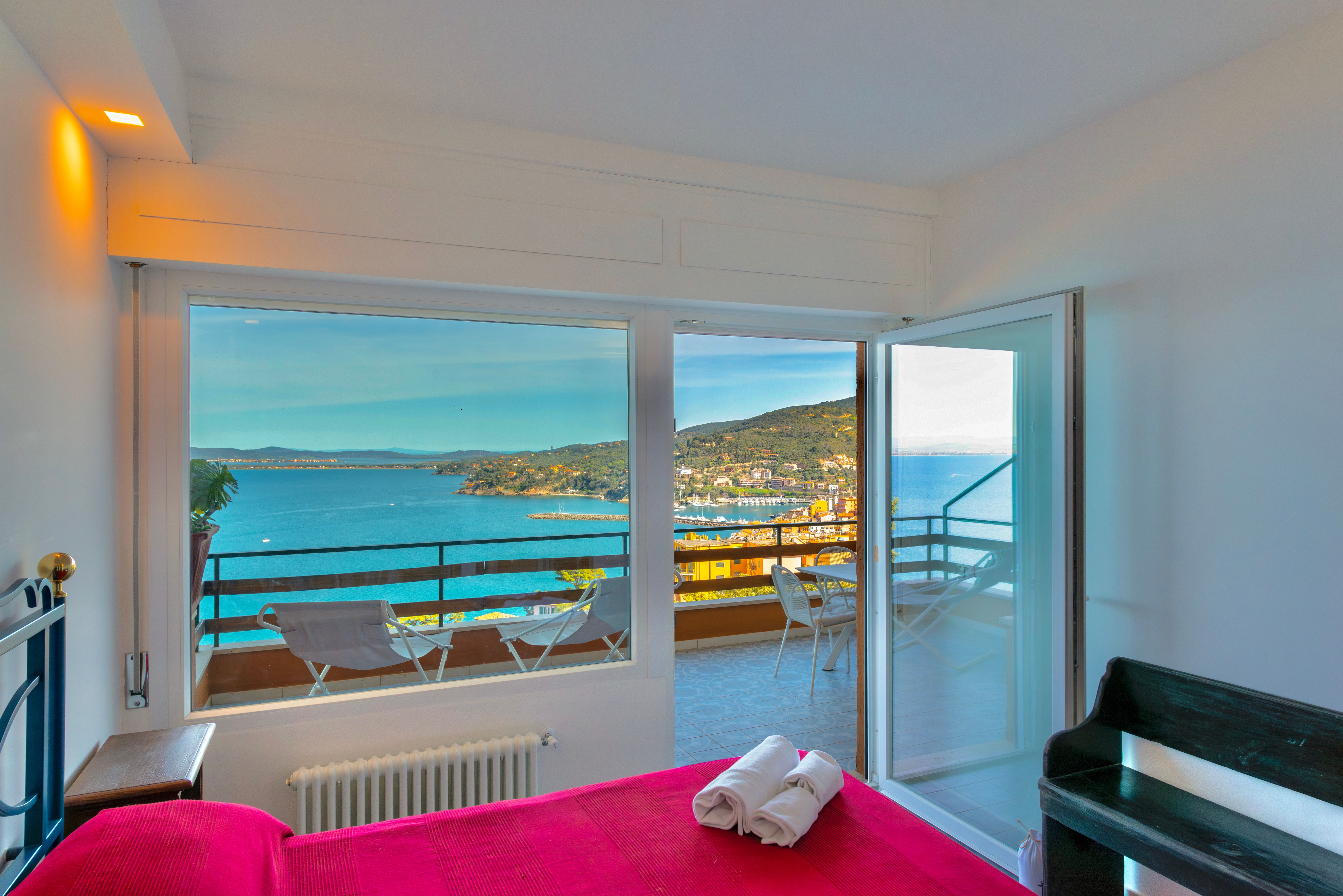 Boasting a spectacular view across a sparkling Tuscan bay, this apartment is perfect for families or groups with a love for the sea. Sleeping up to six guests across two bedrooms, this home also features two terraces with panoramic sea views – ideal for sunset lounging. The bright living area and modern kitchen create a welcoming space for longer stays. Located in a quiet residential complex, it offers peaceful surroundings without compromising convenience. Shops, restaurants, and the vibrant town of Porto Santo Stegano are just a three-minute drive away.
