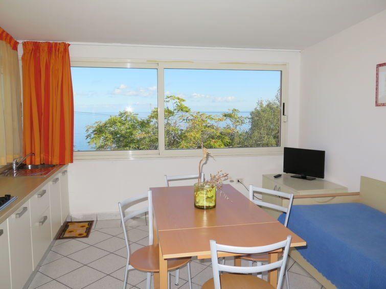 2-room apartment 35 to 45 m2, on the upper floor. Simple and practical furnishings: living/sleeping room with 1 sofabed (80 cm), 1 pull-out bed, dining table and TV. Exit to the terrace. 1 double bedroom. Kitchenette (4 gas rings). Shower/bidet/WC. No heating option. Terrace. Terrace furniture.
