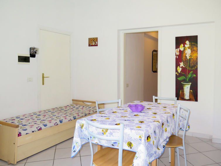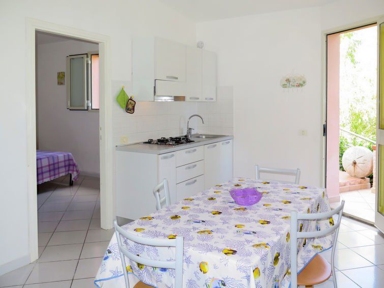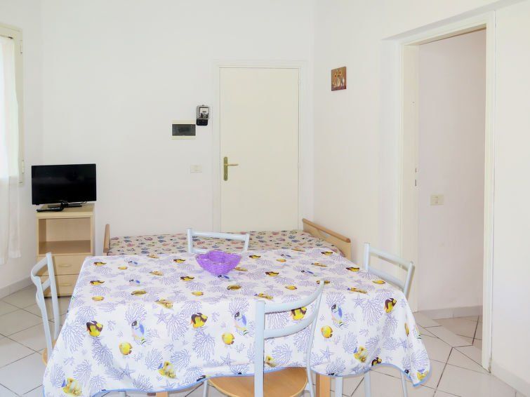 3-room apartment 45 m2, on the upper floor. Simple and practical furnishings: living/sleeping room with 1 sofabed (80 cm), 1 pull-out bed, dining table and TV. Exit to the terrace. 1 double bedroom. 1 room, without window with 1 bed (80 cm), 1 double bed. Kitchenette (4 gas rings).