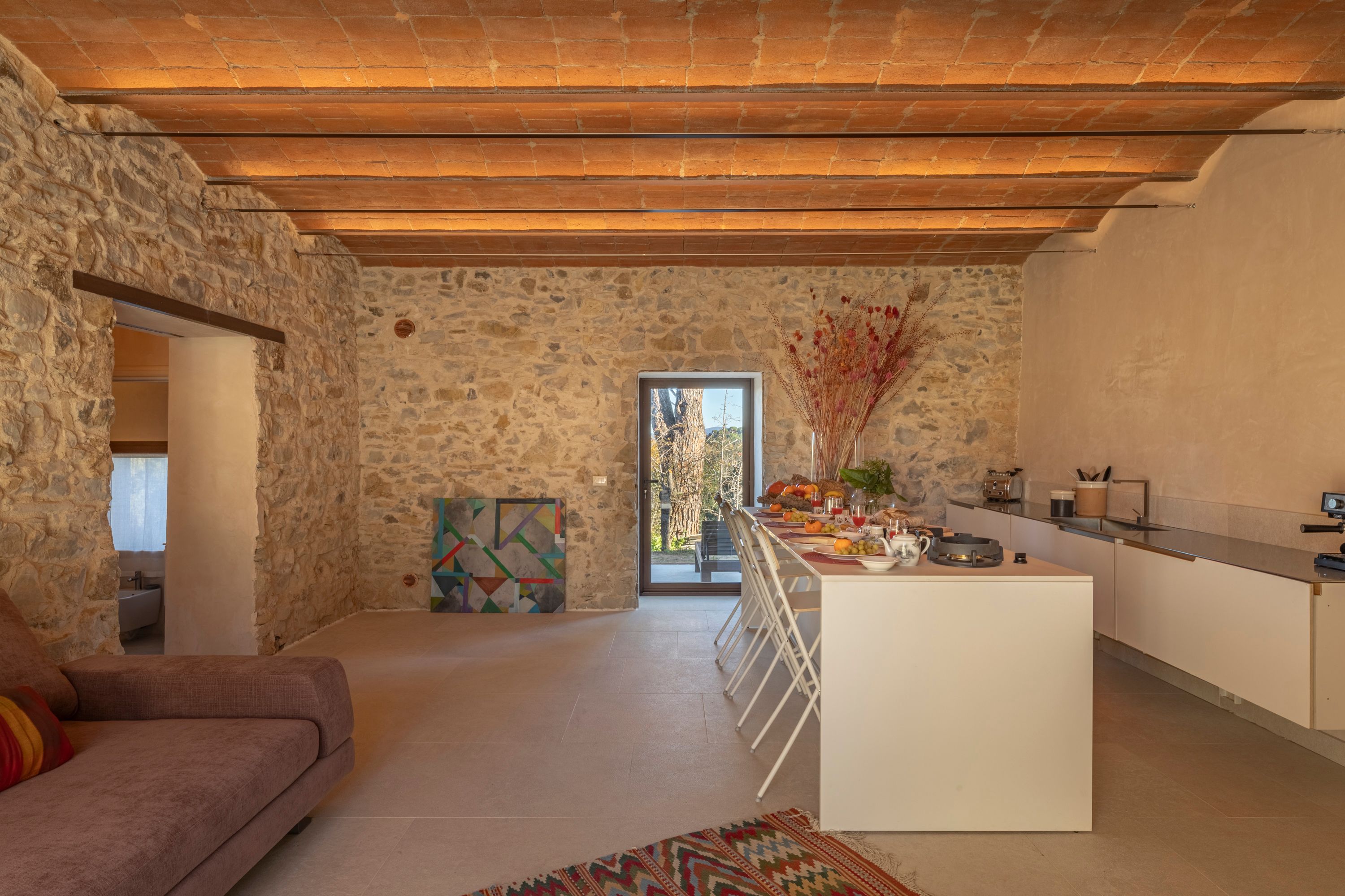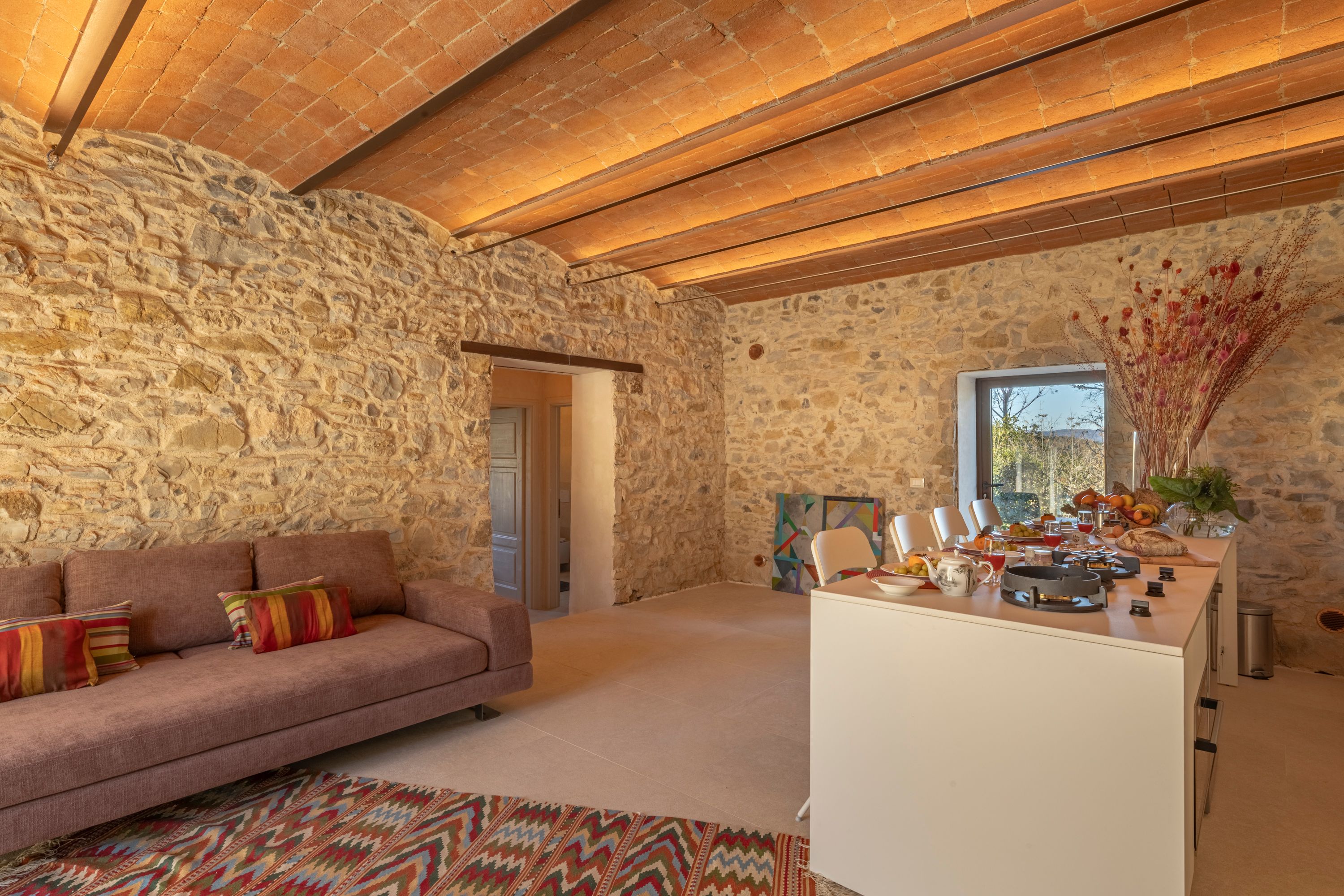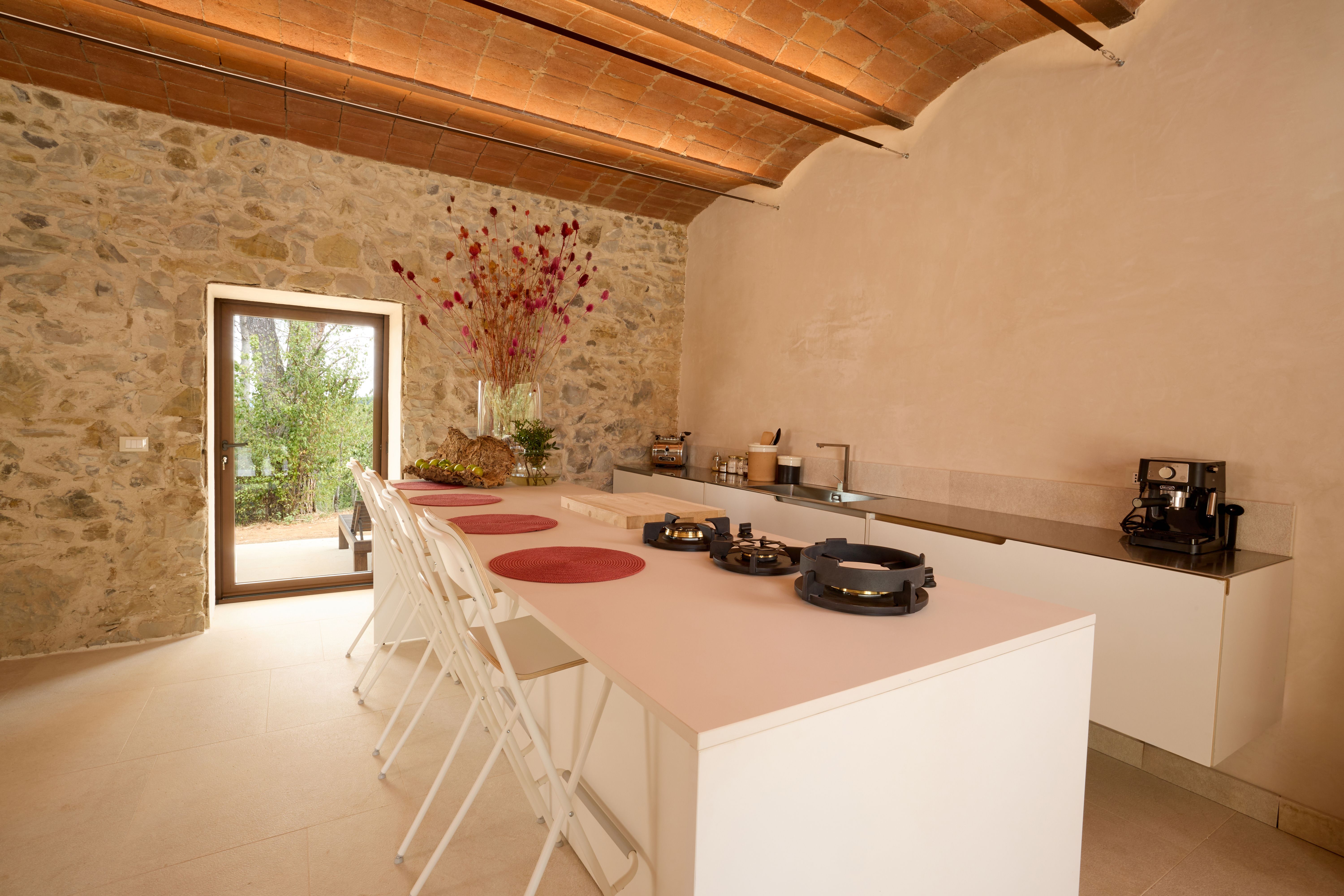 Created from the oldest part of the farmhouse, this apartment has a raft of original features from vaulted ceilings to stone walls. Outside, the private terrace is the perfect place for breakfast or admiring the sunset later in the day. There’s a shared pool in the communal grounds too, overlooking the Tuscan countryside. Surrounded by centuries-old forests, this oasis is a short drive from the villages of Suvereto and Sassetta. Here you’ll find plenty of shops and restaurants – you’ll probably want to hire a car to discover what the area has to offer.