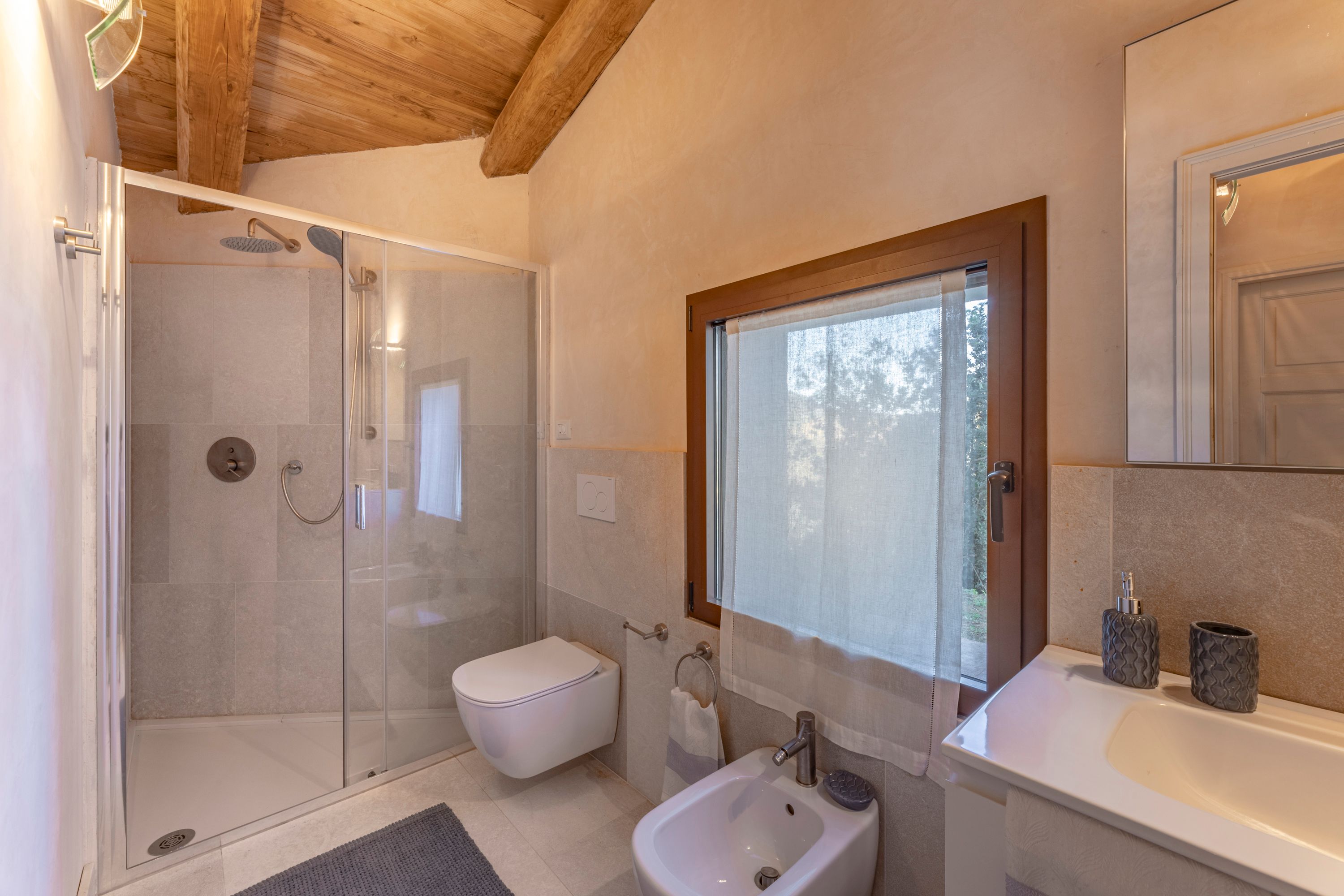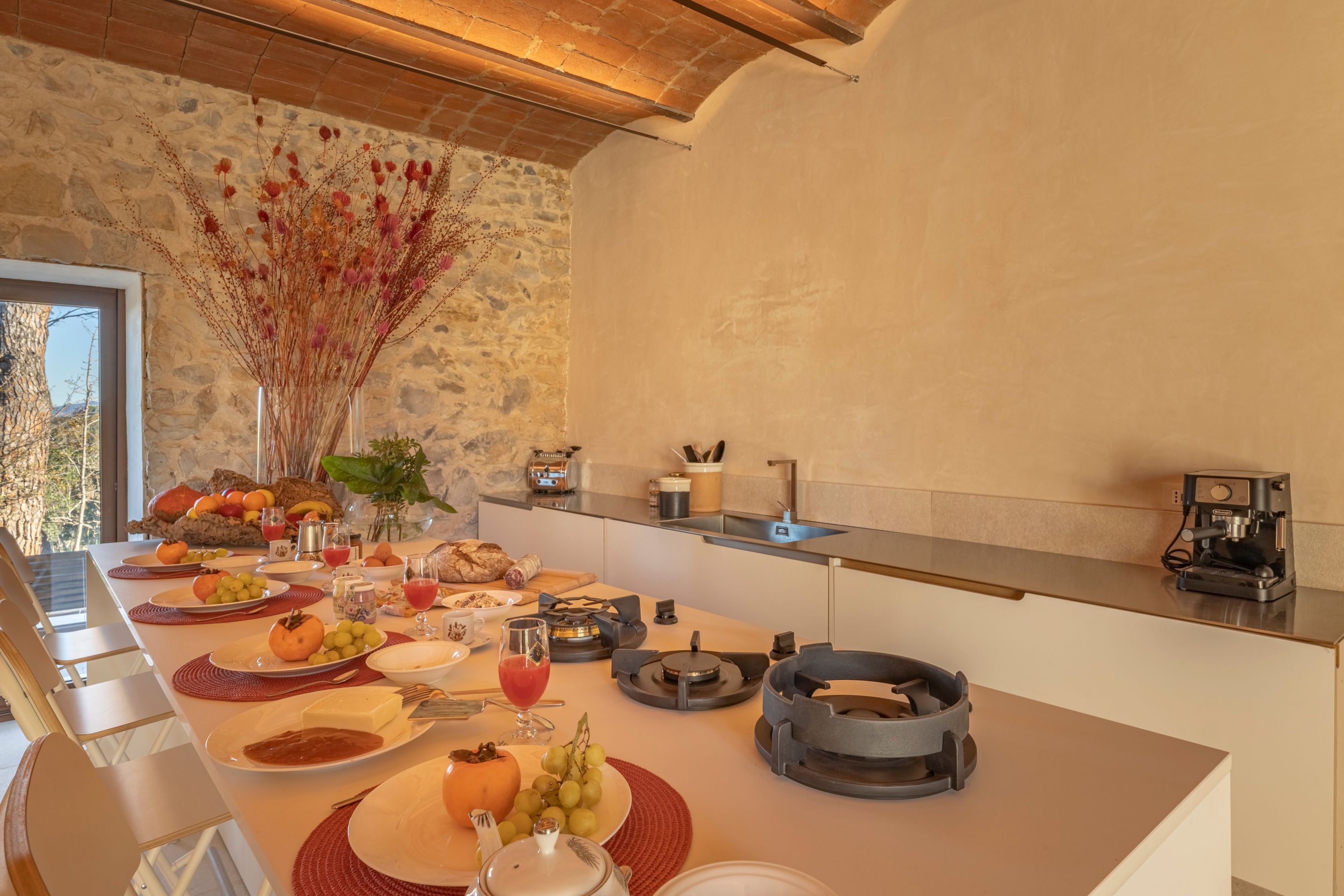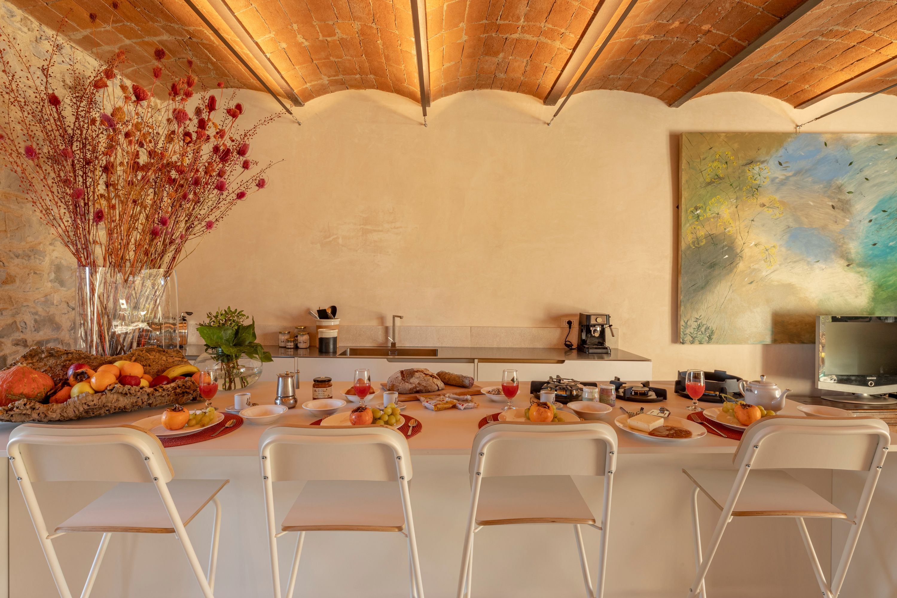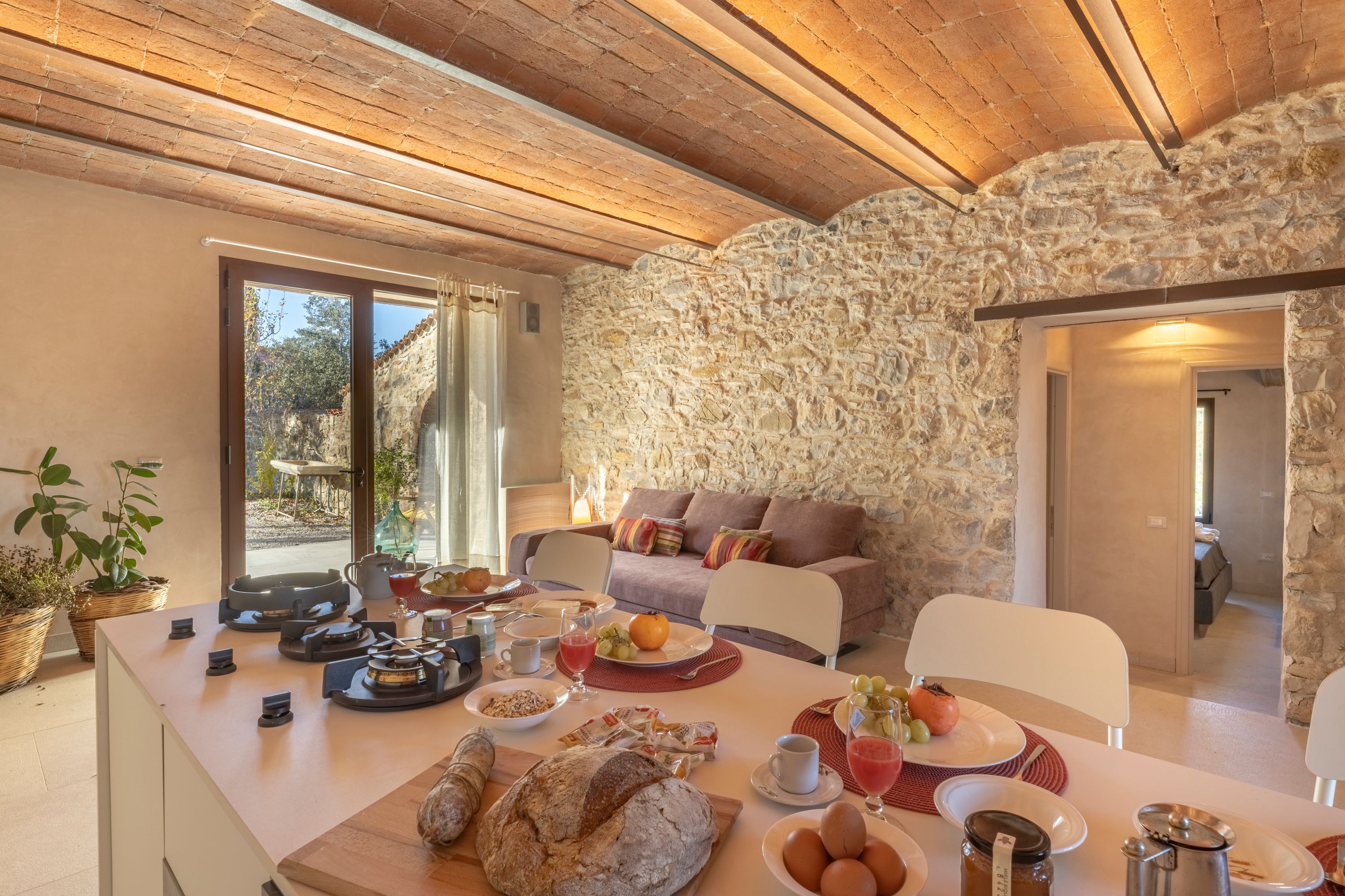 Created from the oldest part of the farmhouse, this apartment has a raft of original features from vaulted ceilings to stone walls. Outside, the private terrace is the perfect place for breakfast or admiring the sunset later in the day. There’s a shared pool in the communal grounds too, overlooking the Tuscan countryside. Surrounded by centuries-old forests, this oasis is a short drive from the villages of Suvereto and Sassetta. Here you’ll find plenty of shops and restaurants – you’ll probably want to hire a car to discover what the area has to offer.