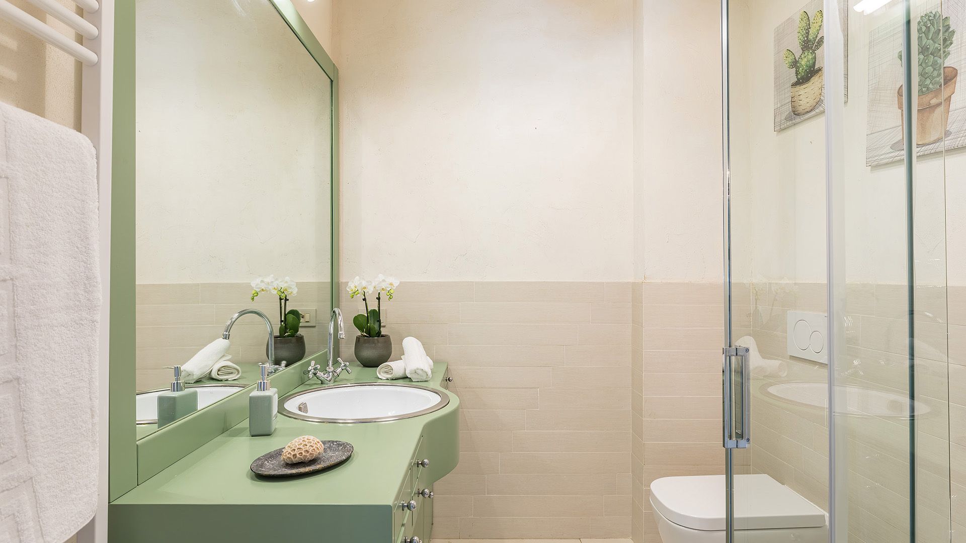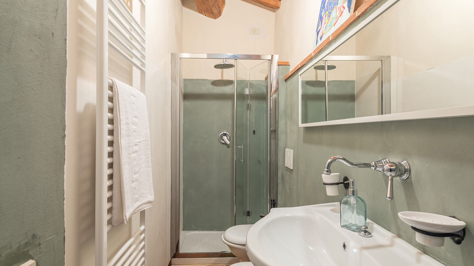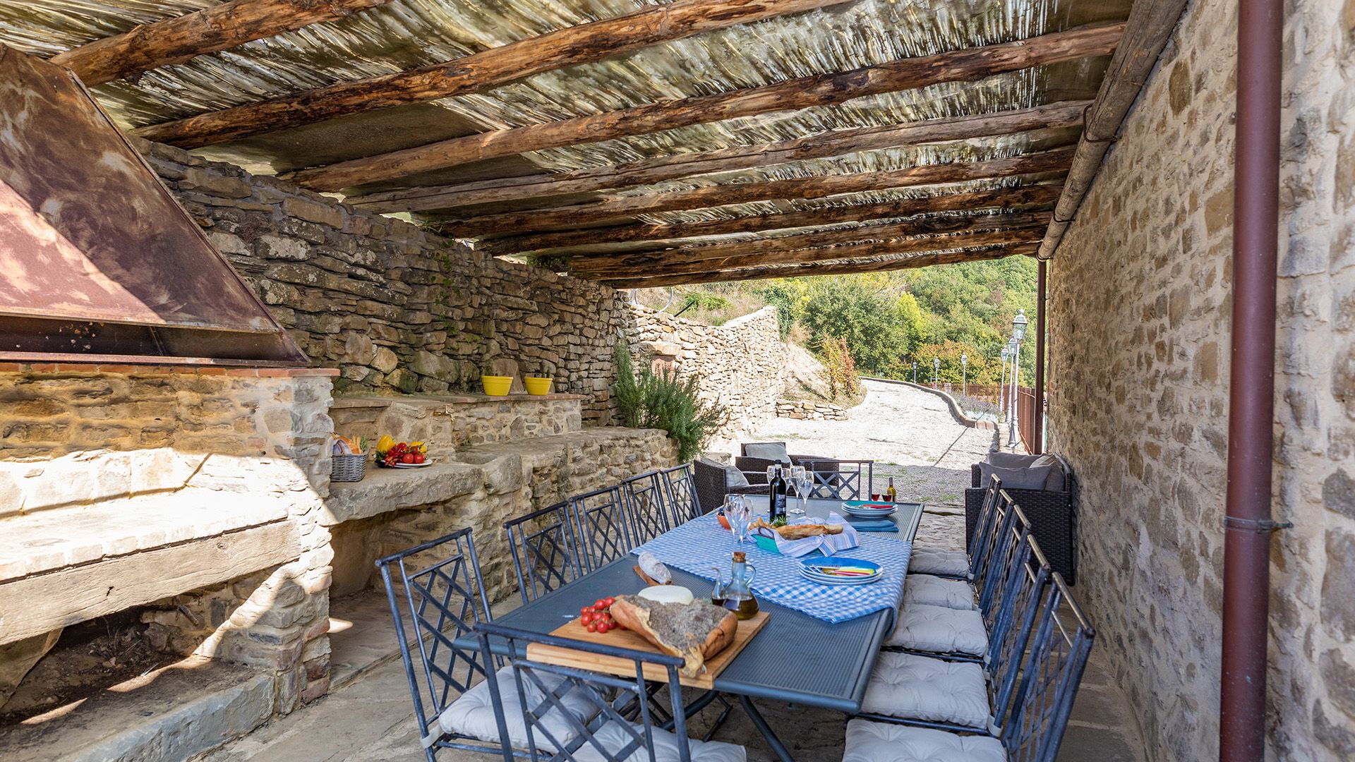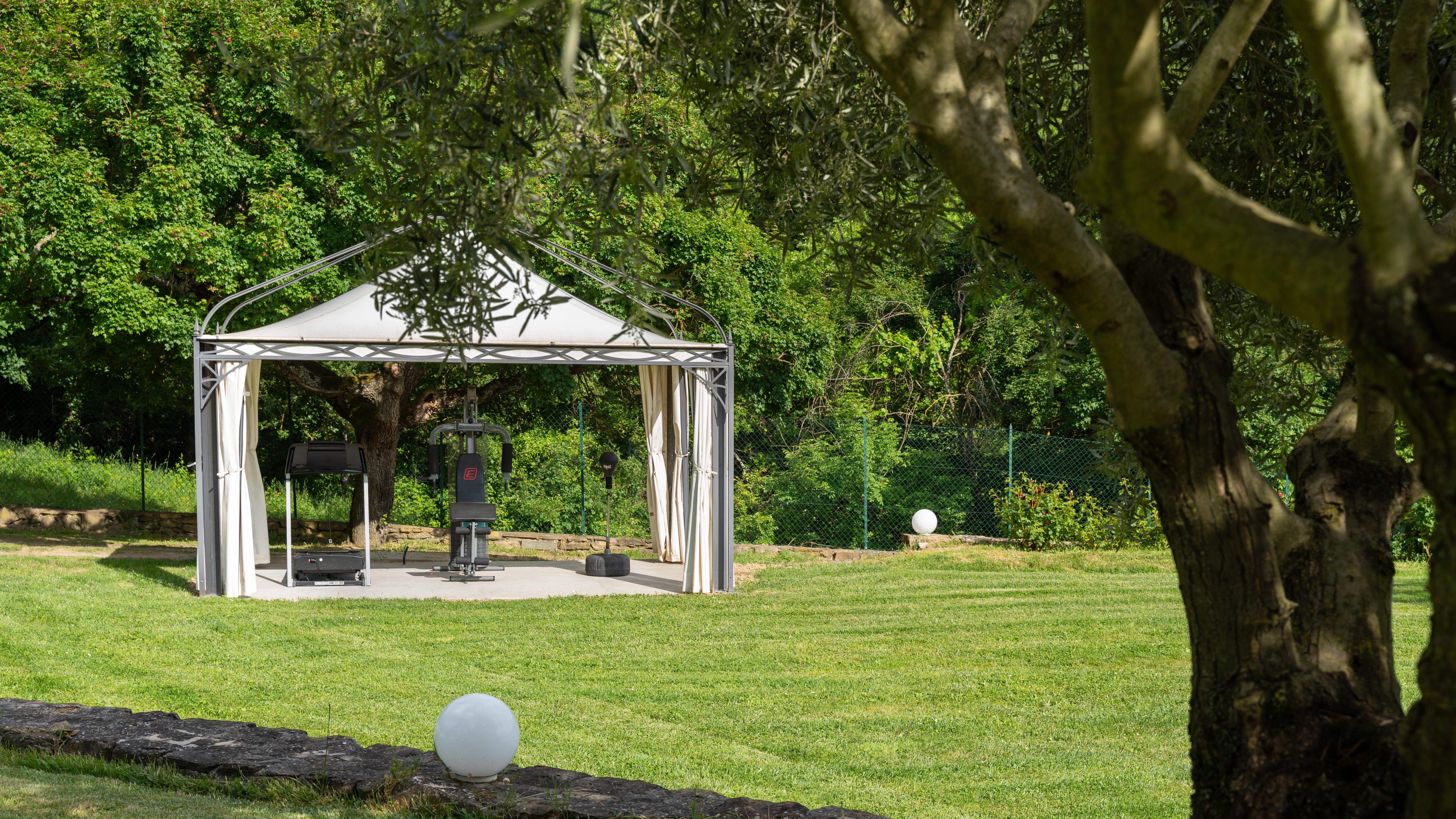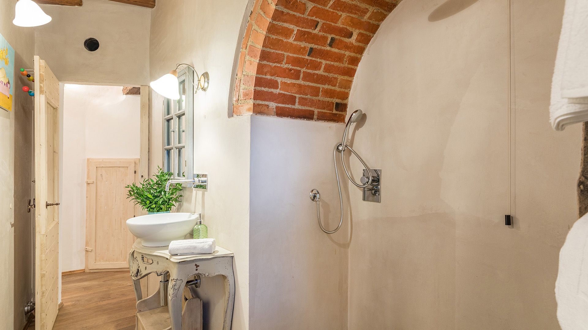 You’ll find this arresting home in the hills above Arezzo, boasting views of the Tuscan valley beneath it, as well as beautiful gardens. Set over several buildings, this large home includes a main farmhouse, two apartments, and an annexe. It’s ideal for large families or groups who want to spend a holiday together but still like a little privacy. The home has been designed to showcase the historic virtues of these ancient buildings – we were first taken by the classic stone walls and their attractive sage green shutters. Inside is a symphony of elegance. Neutral tones and natural textiles offset the original stone walls perfectly, while distressed wooden beams give the home a much softer, cosier atmosphere than you might first expect from its size. The main kitchen looks as though it was designed with professional chefs in mind, while in the two separate apartments, you’ll find smaller kitchens that pay homage to their humble farmhouse beginnings while still looking effortlessly chic – think Aga-style ovens, glass fronted cabinets, and vintage dining tables. The bedrooms ooze relaxation, with modern furniture, gauzy textiles, and clever lighting making for a boutique hotel experience. And that’s before we even get to this home’s outdoor areas. Covering several hectares, the gardens back onto a wood where guests can roam and play, while back in the garden you’ll not only find a children’s playground, ping pong table, and hot tub, but a Roman-style pool surrounded by sun loungers, a glorious view of the countryside below, and even a diving board.