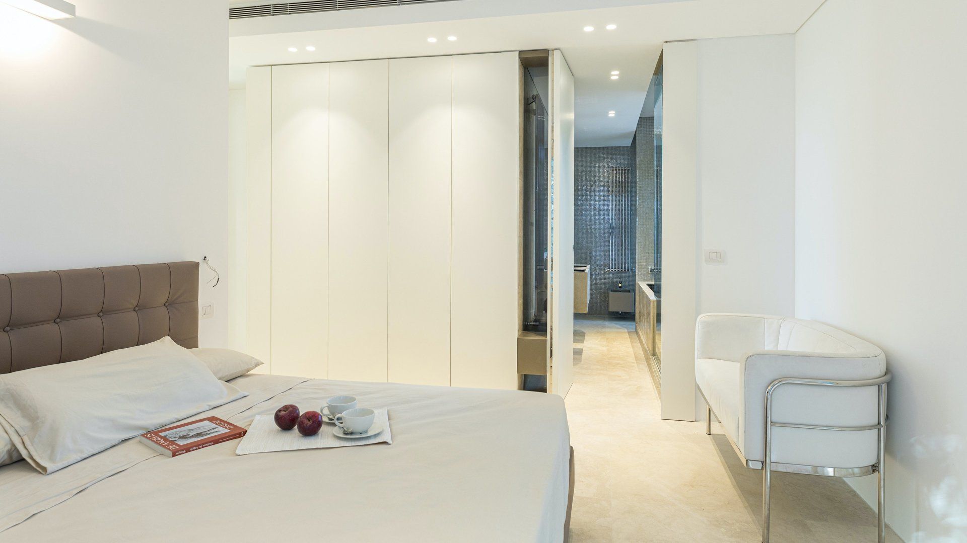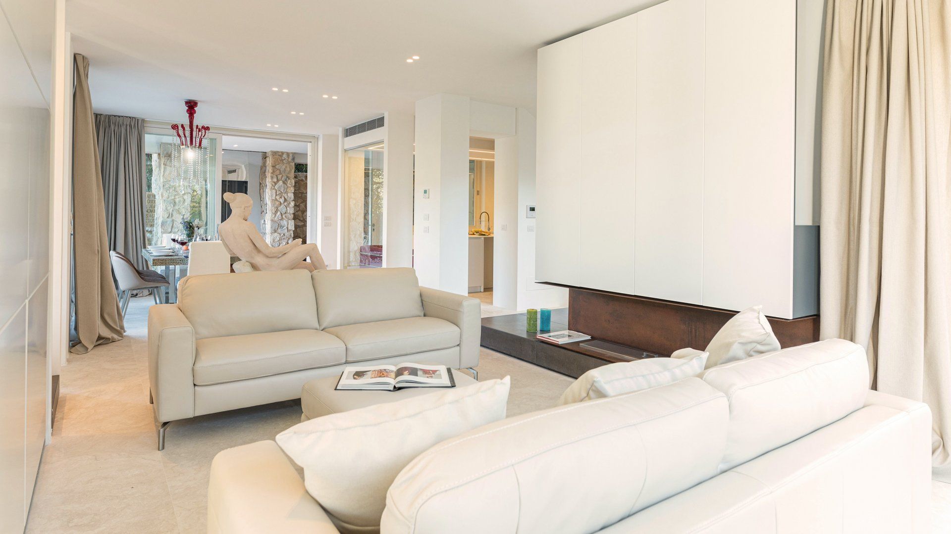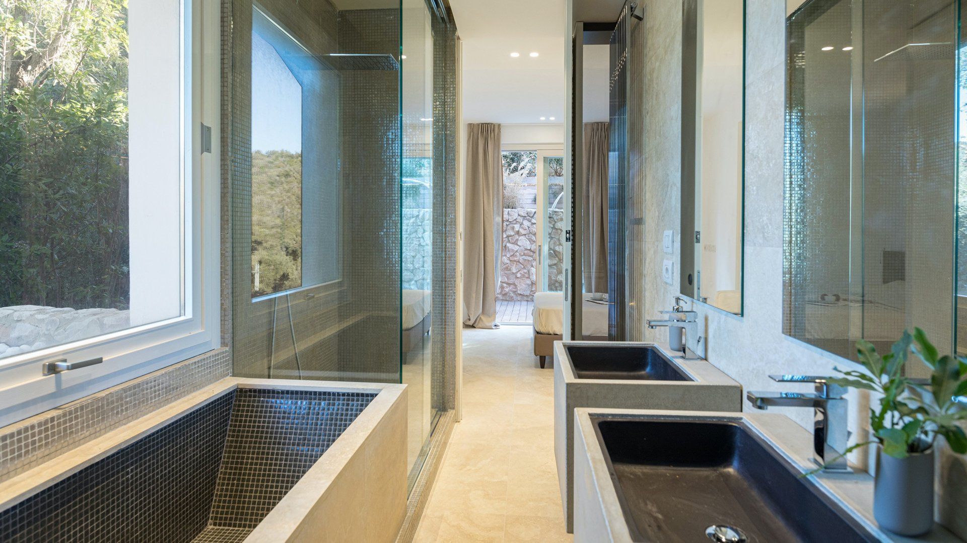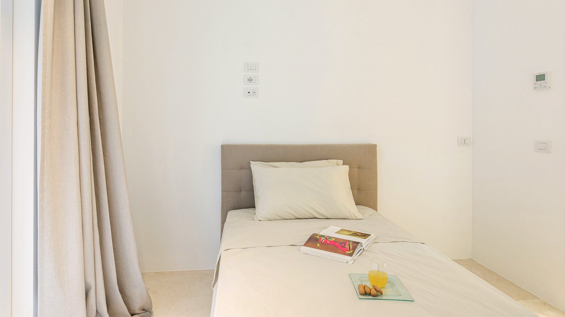 Whitewashed and modern with unbroken views of rolling hills, this villa is the perfect gathering place for a family or group of friends looking to unwind in style. Inside, it’s all glass walls and minimalist spaces, while the outside area is a fanfare of colour with evergreen shrubs and blooming flowerbeds.