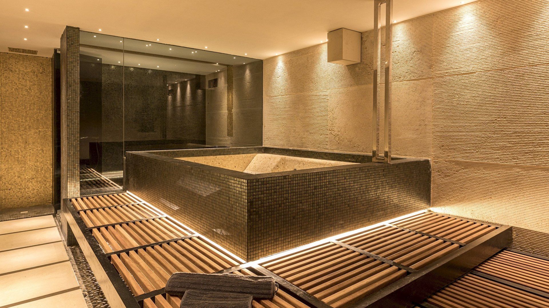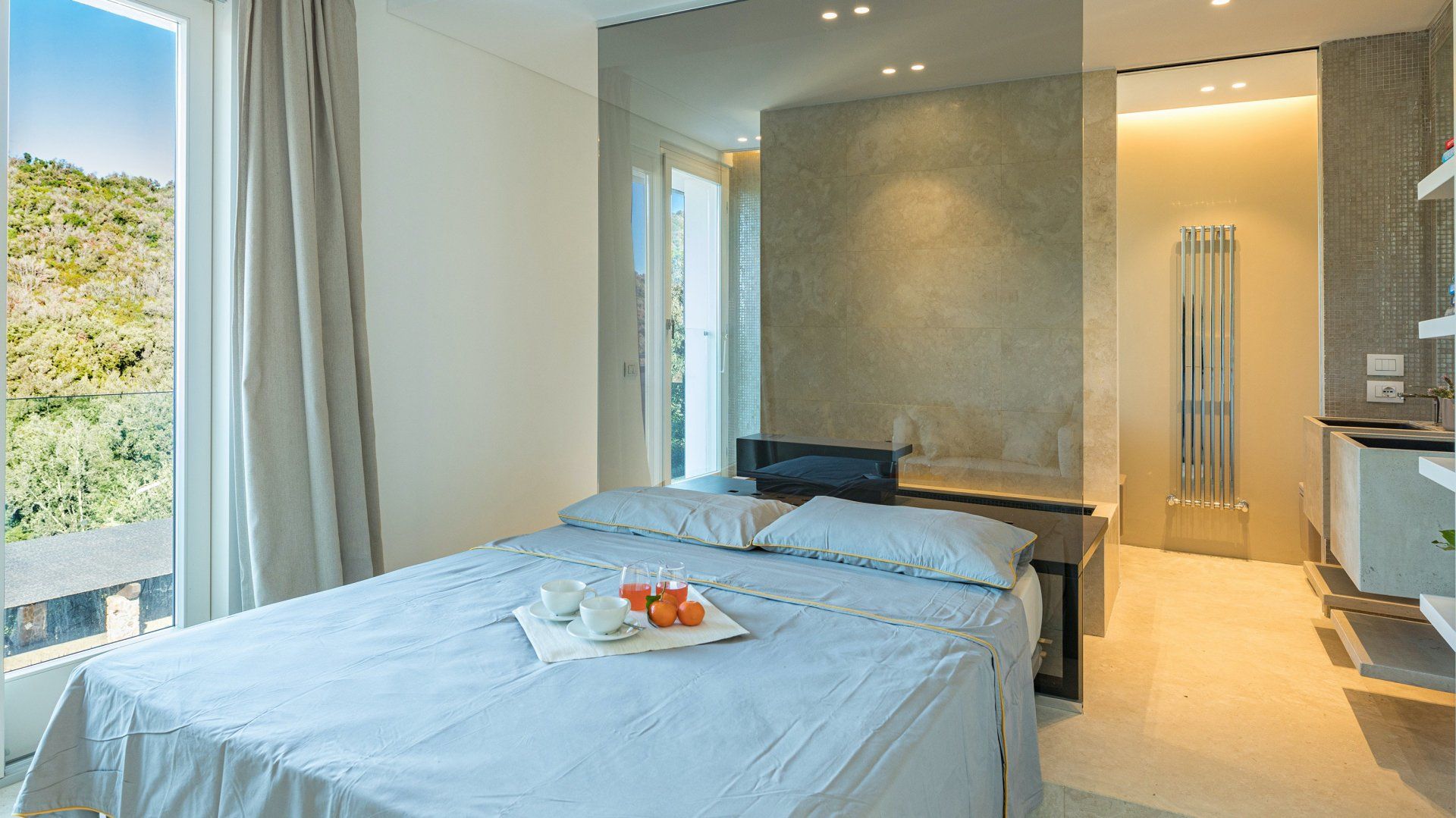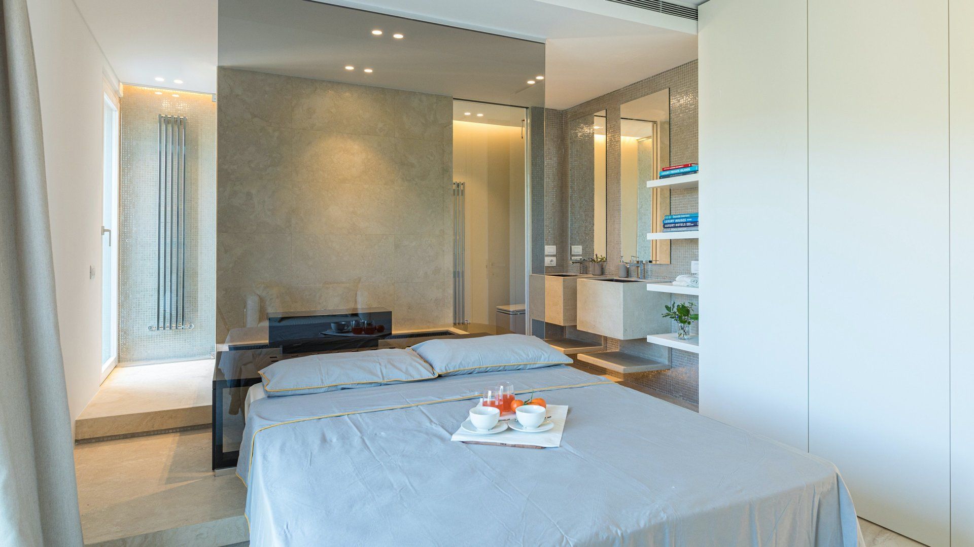 In the late afternoon, take the twenty-five-minute stroll down to Maga Alpa – or jump in the car, it’s only a three-minute drive. Explore the pine forest before stretching out on the golden sands and swimming in the glittering Mediterranean. Return home in the early evening to watch the sunset from your balcony followed by a serious pamper session in your private wellness room.