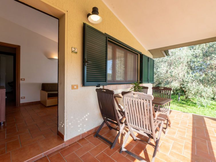 "Rosa", 2-room semi-detached house 45 m2, on the upper ground floor. Object suitable for 2 adults + 2 children. Practical and cosy furnishings: living/dining room with 1 sofabed, 1 pull-out bed, dining table, kitchen corner, TV and air conditioning. Exit to the terrace. 1 double bedroom with air conditioning.