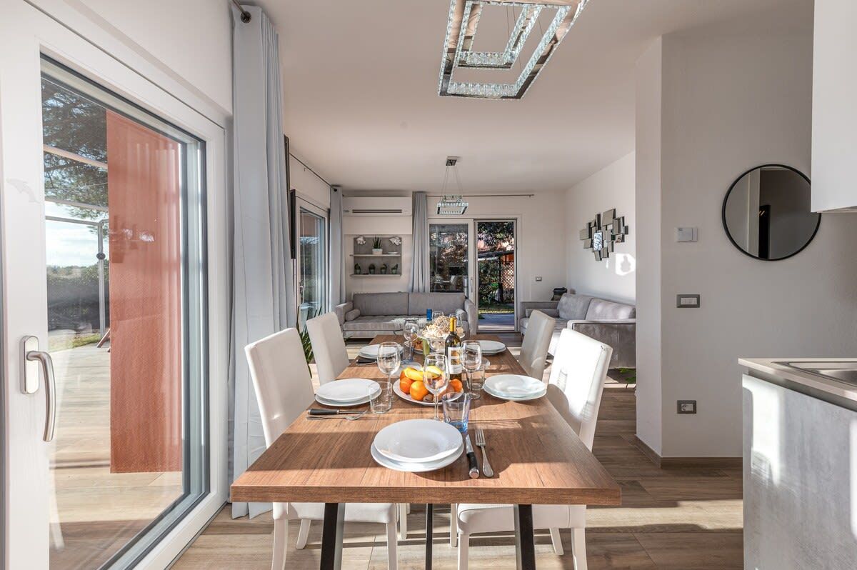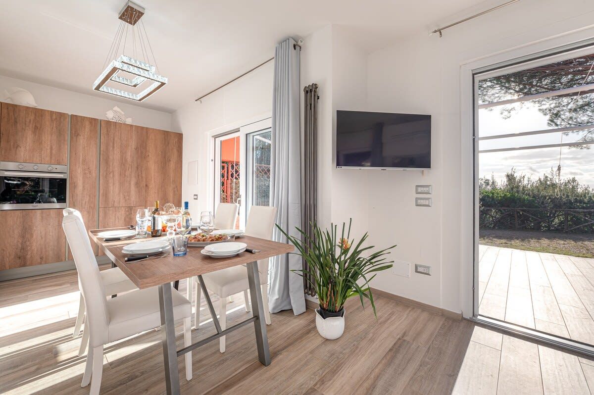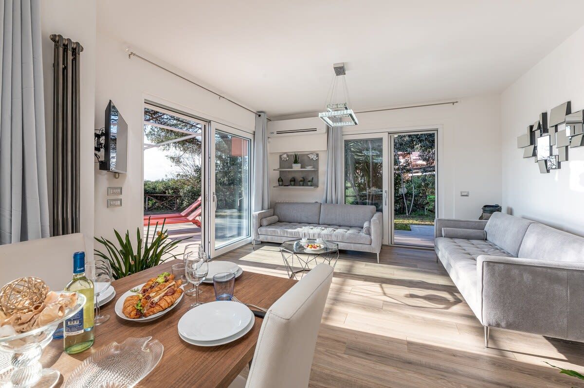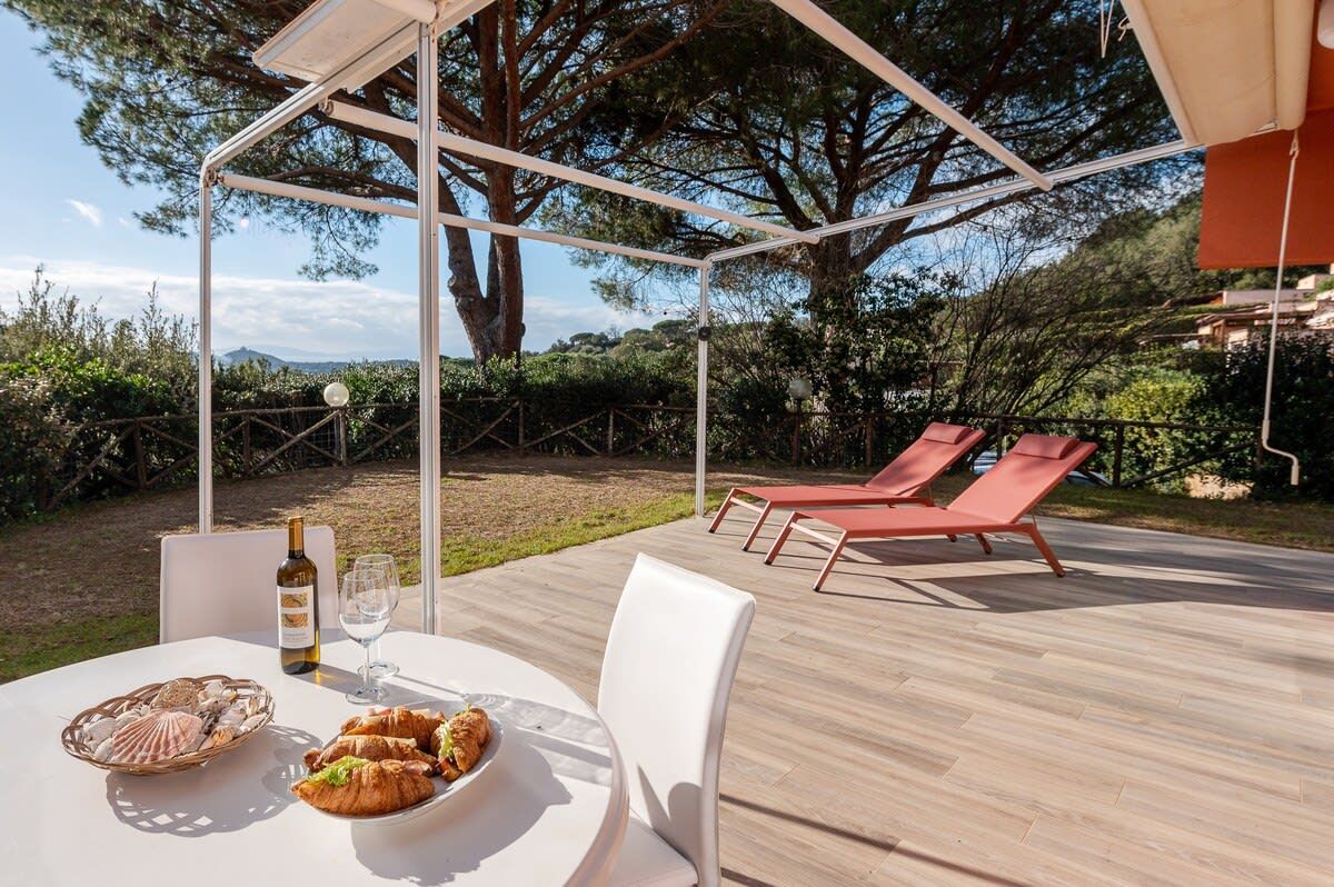 Tucked amongst trees, this Tuscan home promises a true escape from it all. We love the contemporary interiors, with plenty of space for everyone to spread out and enjoy some quiet time. But the outdoor space, though simple, is where we think most people will gravitate. Sun-kissed terraces, alfresco dining spots and far-reaching sea views – what’s not to love? If the sea vistas are tempting, it’s around five minutes by car to the sandy beaches of Punta Ala, so cooling off in the Tuscan heat is a breeze.