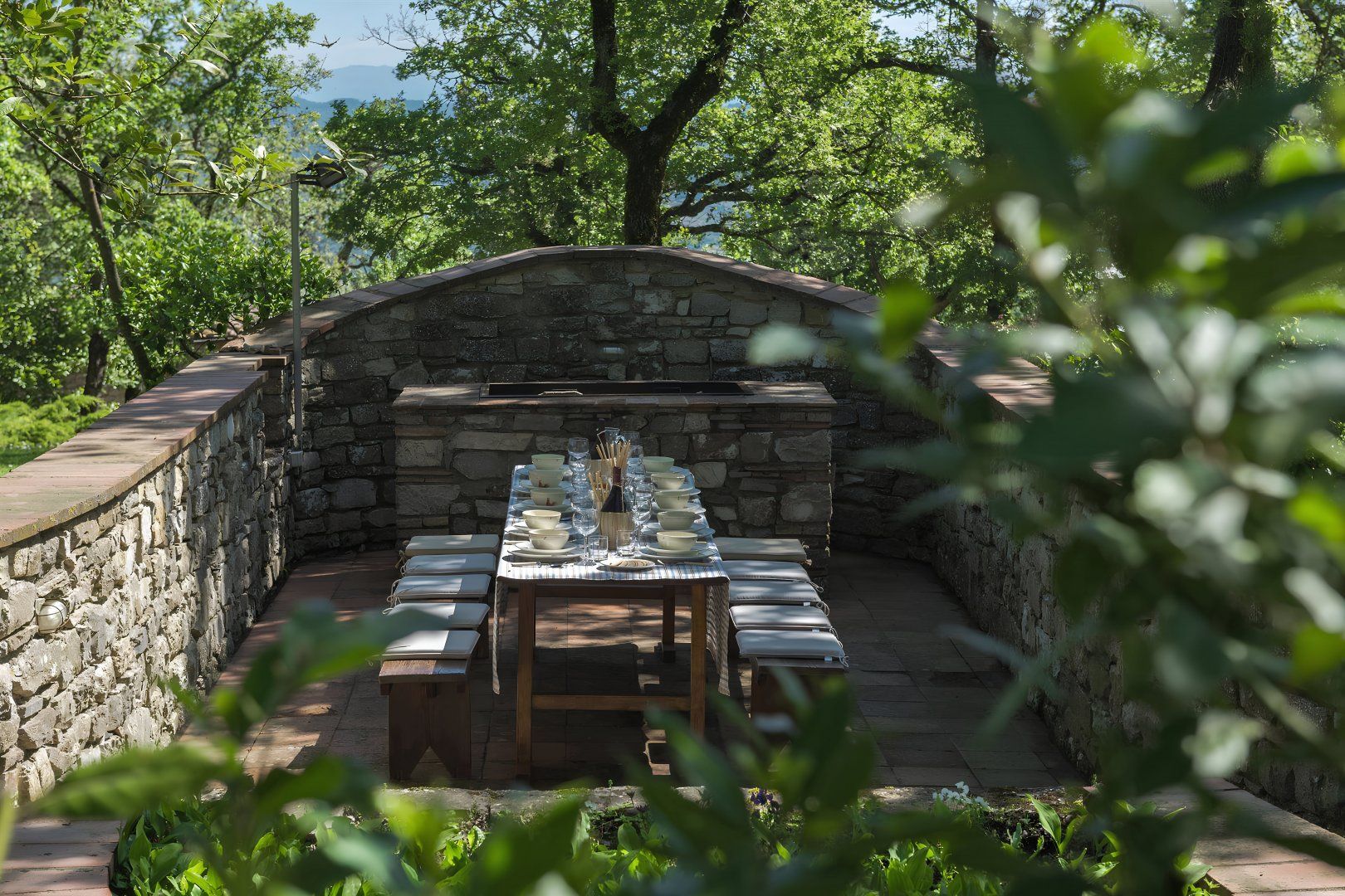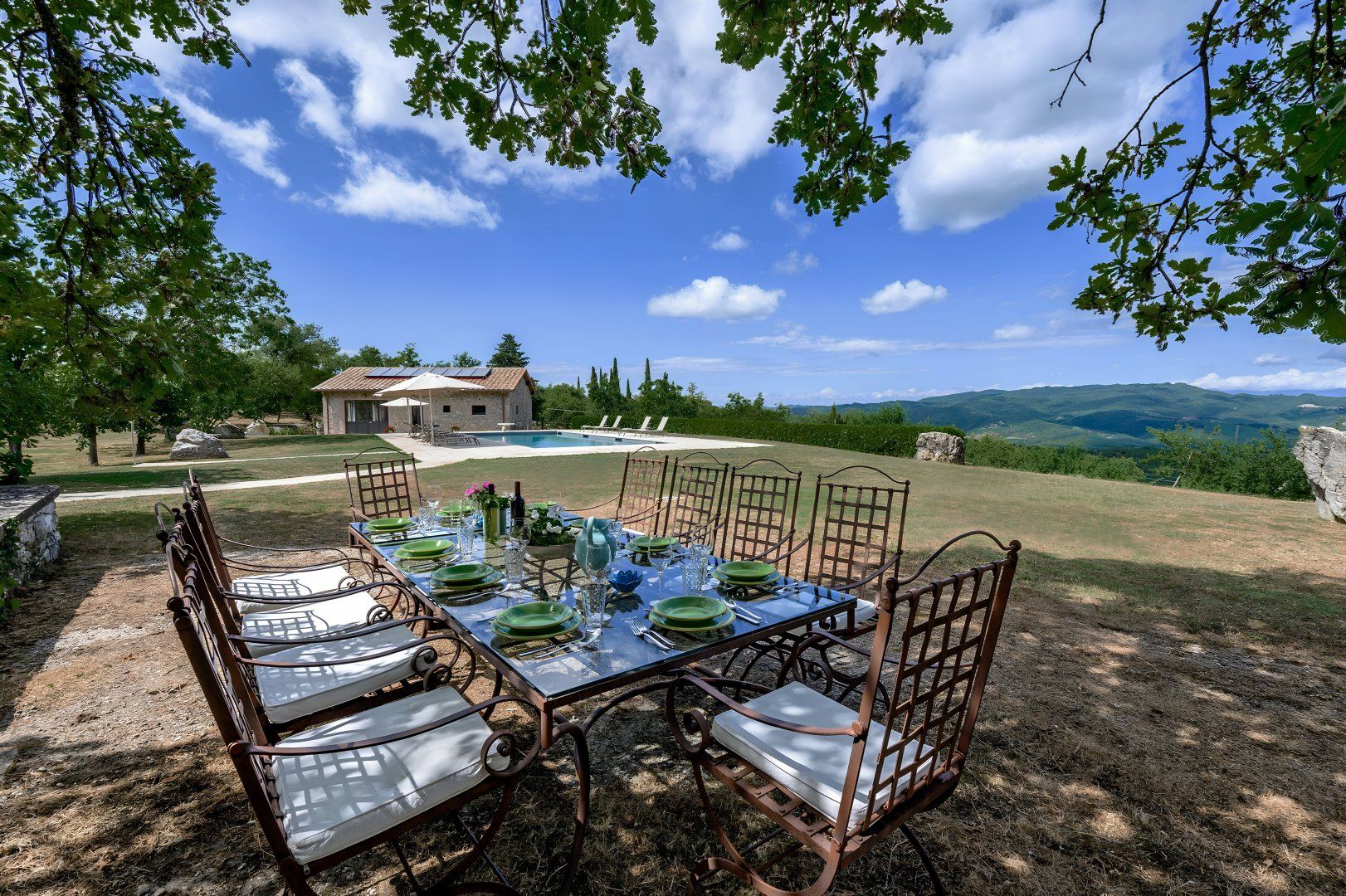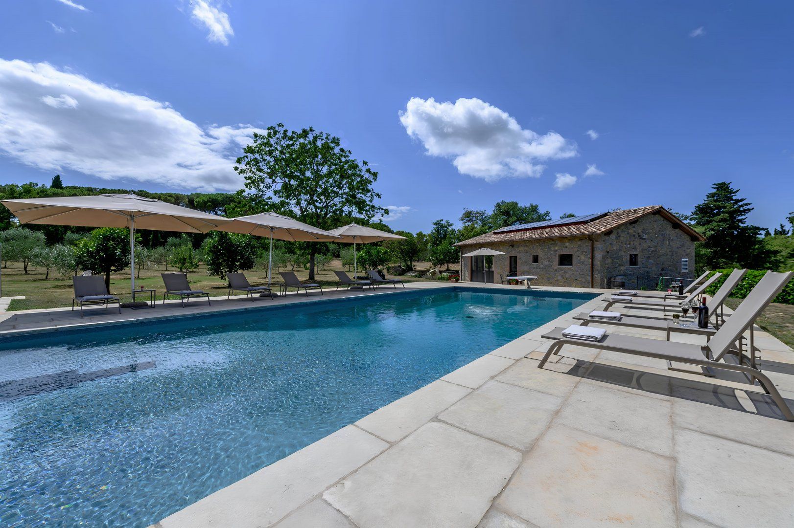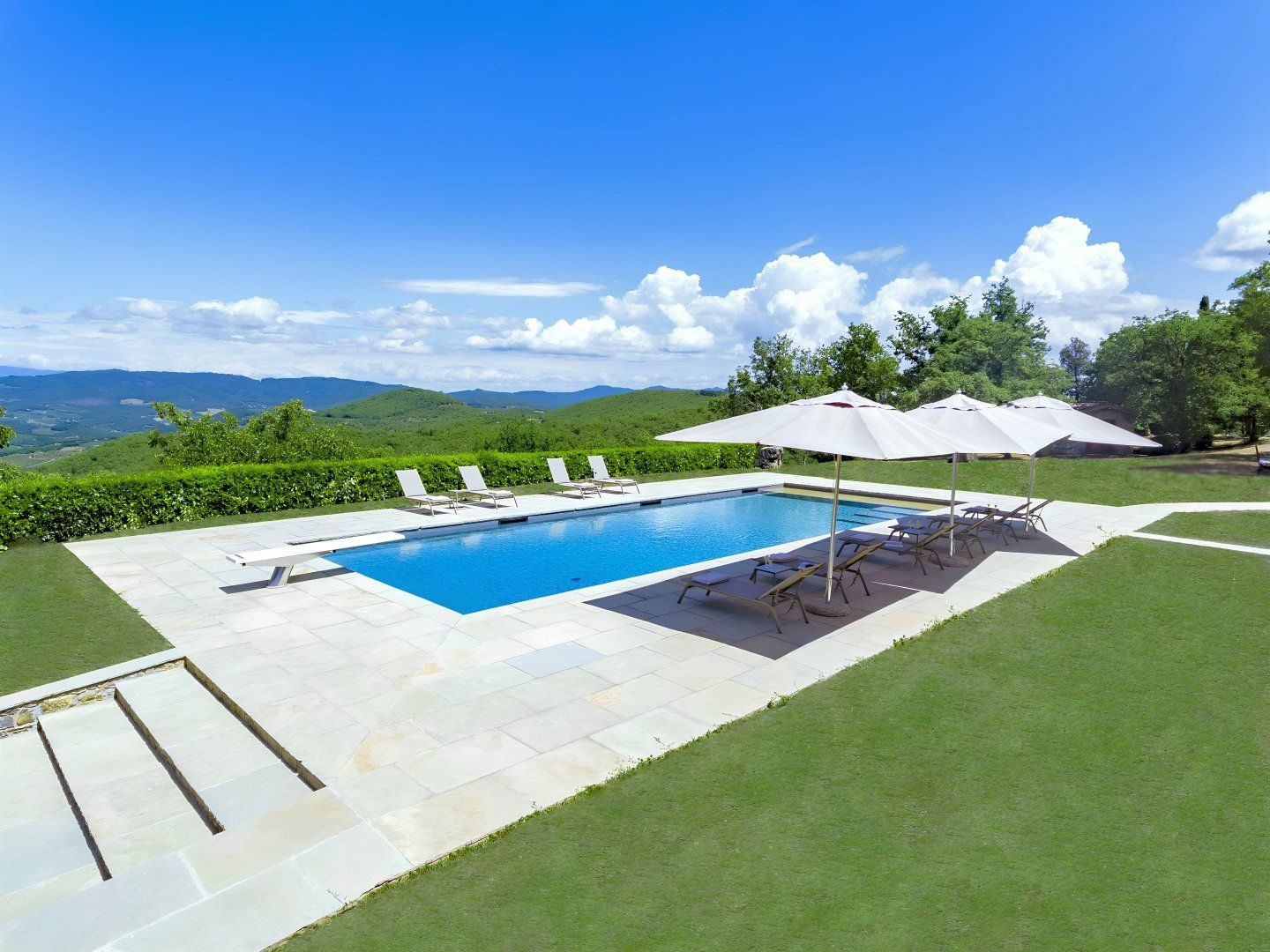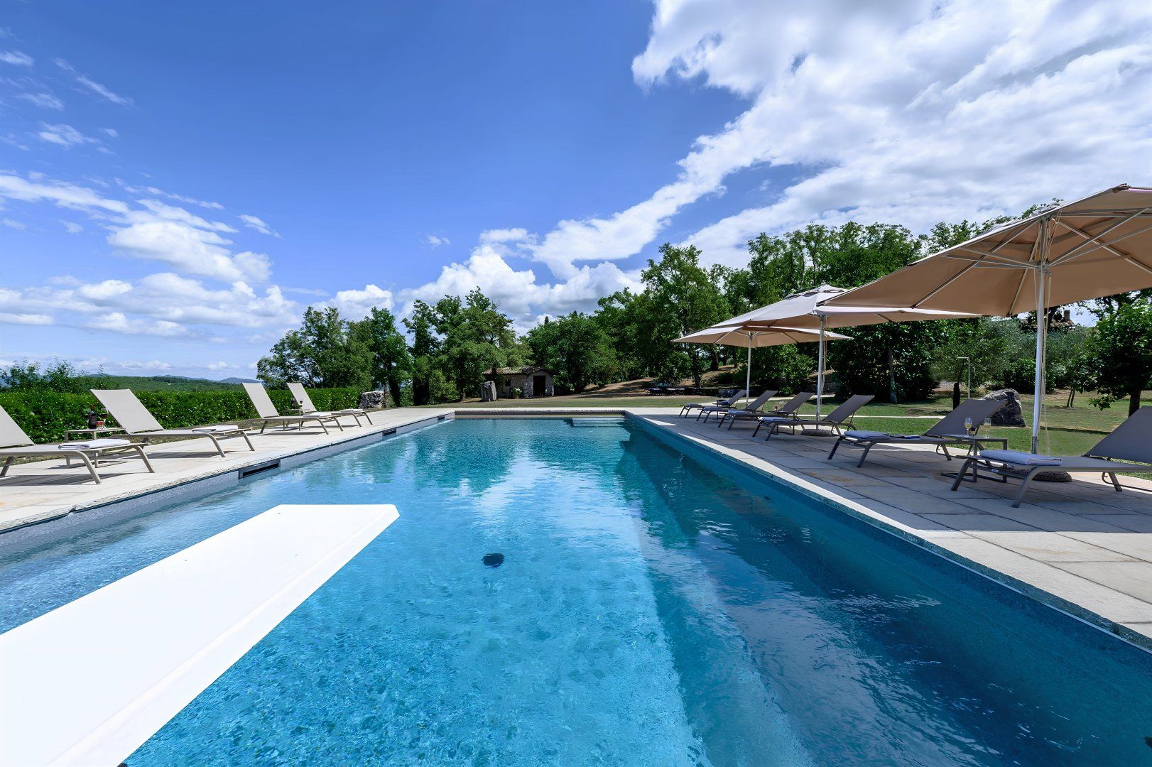 With rolling Chianti hills all around, this traditional villa couldn't feel more Tuscan if it tried. Comprised of a main house and three en-suite bedroom cottages, it's perfect for a large family getaway. While the bathrooms could do with an update, and some of the interiors feel dated, it's all beautifully cared for. Kids will love you for the private pool with dive board – a fifty-metre flip-flop from the main house. There's also a bocce court and a ping-pong table, and you're welcome to pick fresh vegetables and eggs from the gardens and chicken coop. Location-wise, you're just 5 kilometres from the traditional Chianti towns of Radda and Castellina.