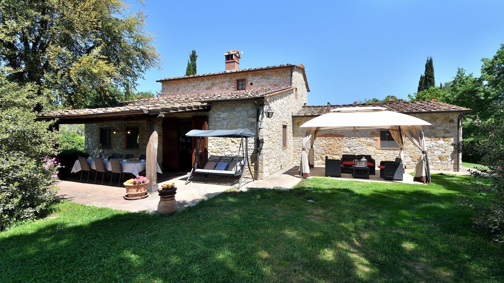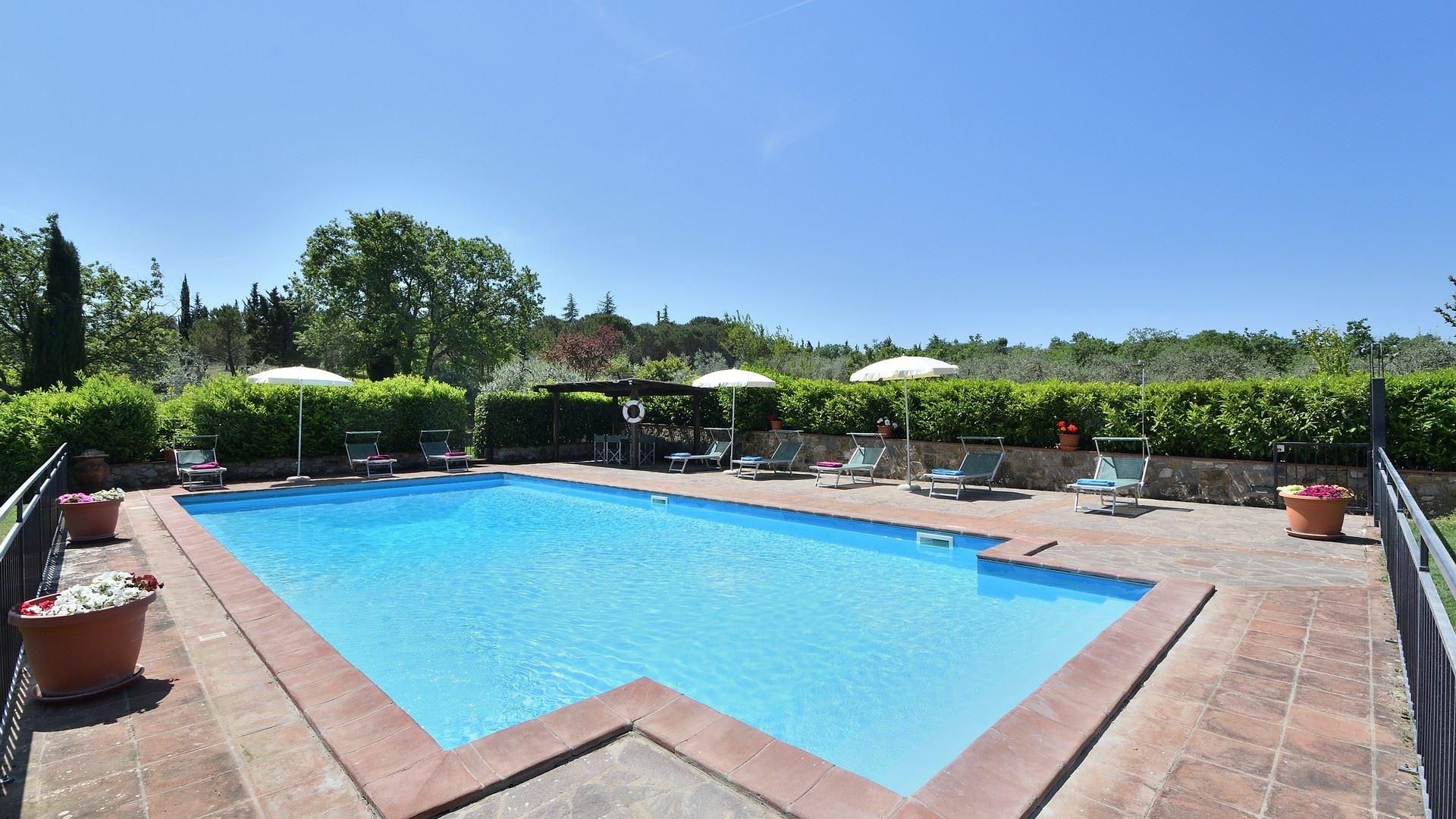 You'll find this stone villa in the Chianti countryside. Radda and Castellina are both 5 kilometres away, so you'll be well-positioned to explore the area's vineyards and villages. Florence is also driveable in an hour if you have day trips in mind. That said, with a private pool and sun-kissed garden to enjoy back home, we don't blame you if you'd rather stay put. The villa itself is well-equipped, though the traditional style may not suit everyone. Two downstairs bedrooms open straight onto the garden, while the two upstairs have air conditioning and en-suite bathrooms. Rustic charm abounds indoors and out – think wooden beams, stone walls, and a covered terrace ideal for dining on Italian classics.
