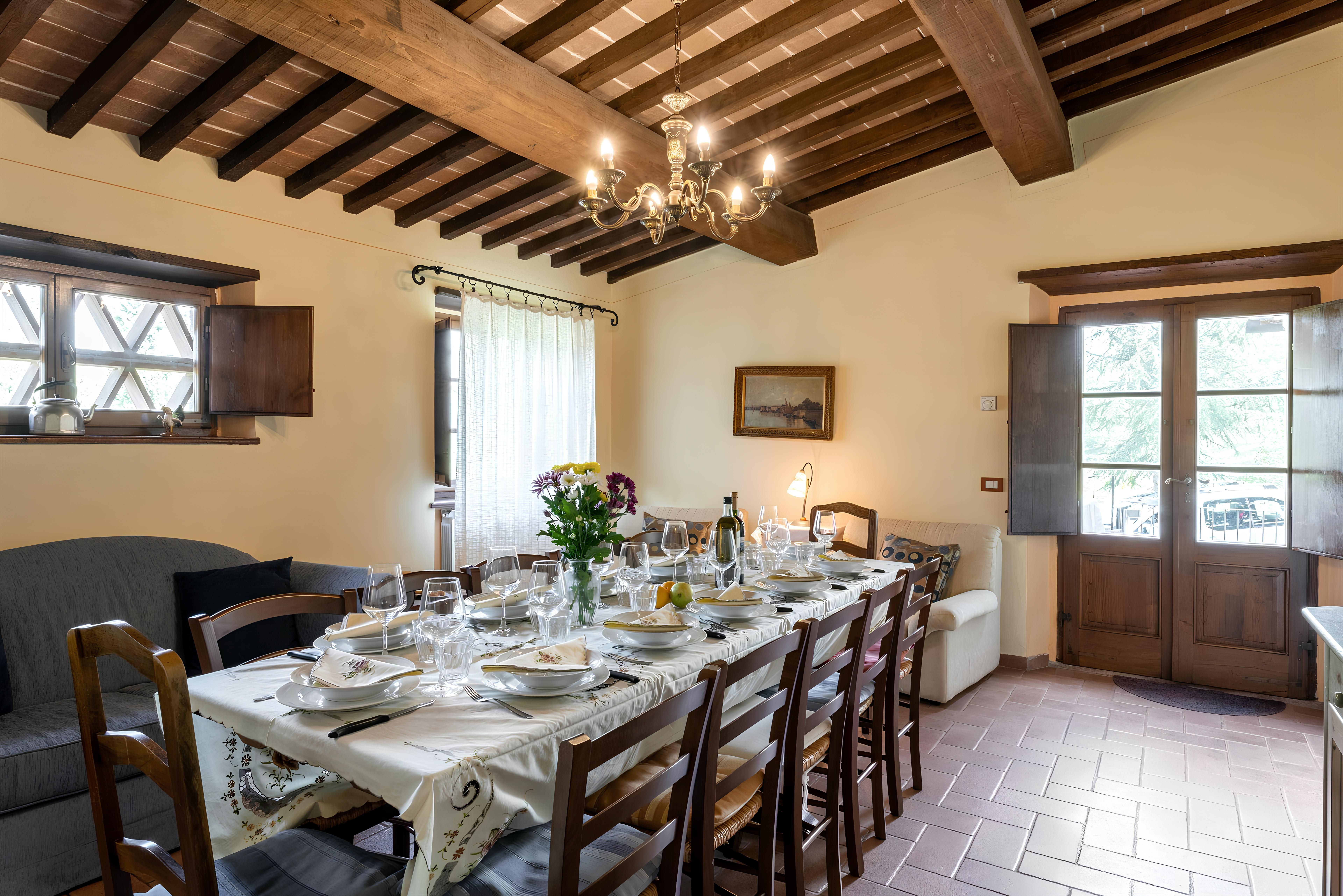 Ceperano is a charming Tuscan farmhouse that has been restored to a high standard and can accommodate up to 14 guests. The property is situated in the heart of the Chianti region, surrounded by olive groves and vineyards, providing a tranquil retreat for families or groups of friends. The farmhouse features four apartments, each offering comfortable traditional furnishings, with three separate kitchens to cater for all dining preferences. Ceperano boasts several furnished terraces and a bamboo-shaded pergola with stunning views, perfect for al fresco dining. The private pool is set in a fenced lawned area, ideal for children playing nearby while adults relax on loungers. Five bedrooms offer flexible sleeping arrangements as they can be either doubles or twins, with plenty of bathrooms throughout the property. Ceperano is within walking distance of the lively town of Radda and an easy day trip from Siena, Florence and San Gimignano.