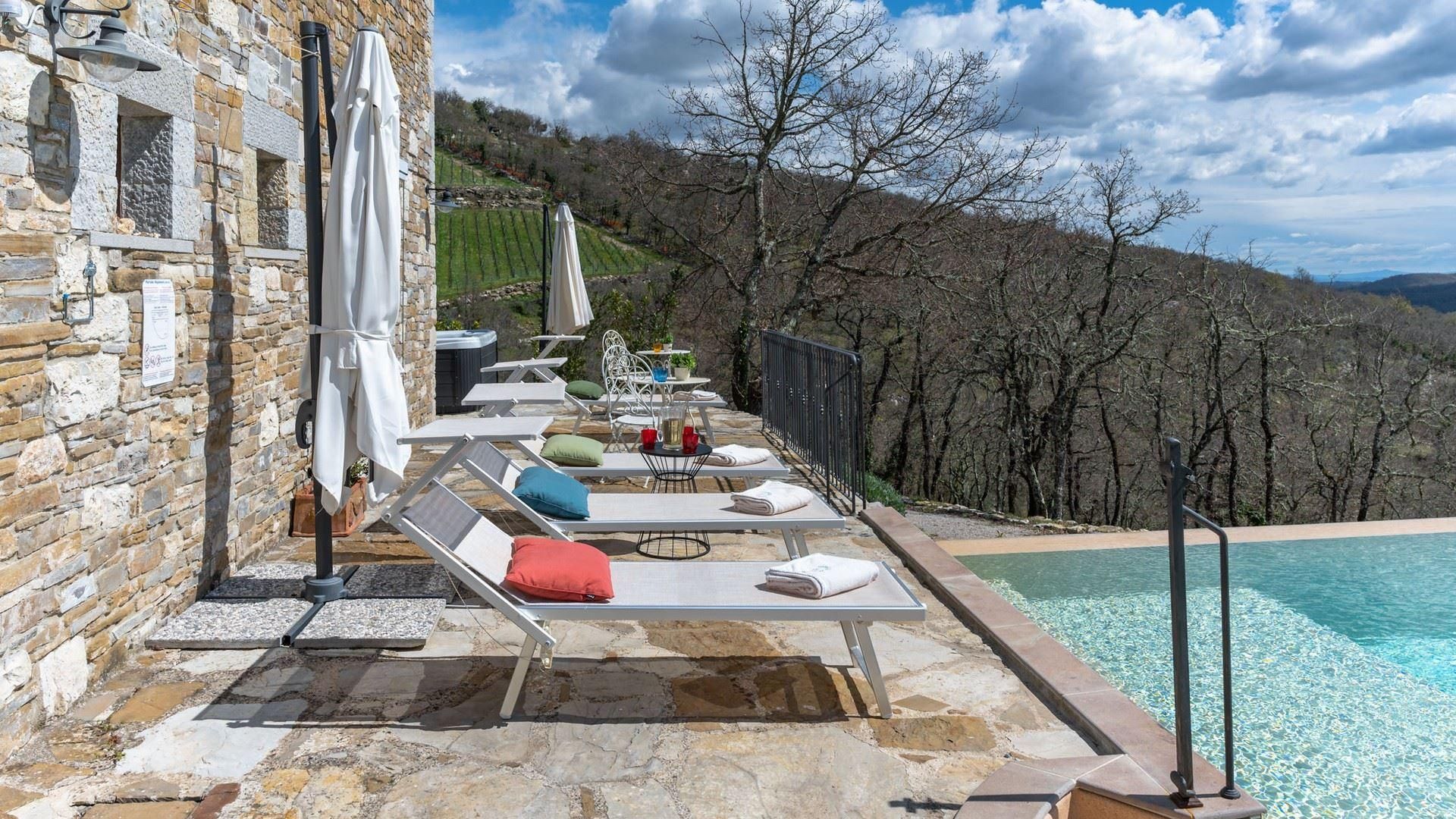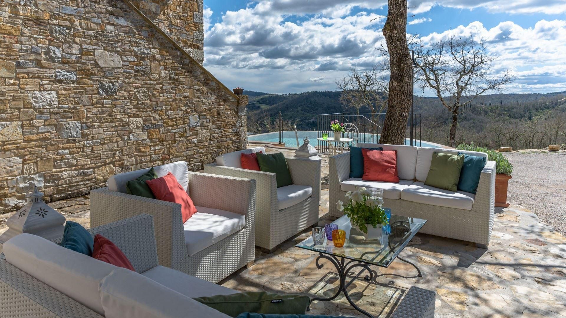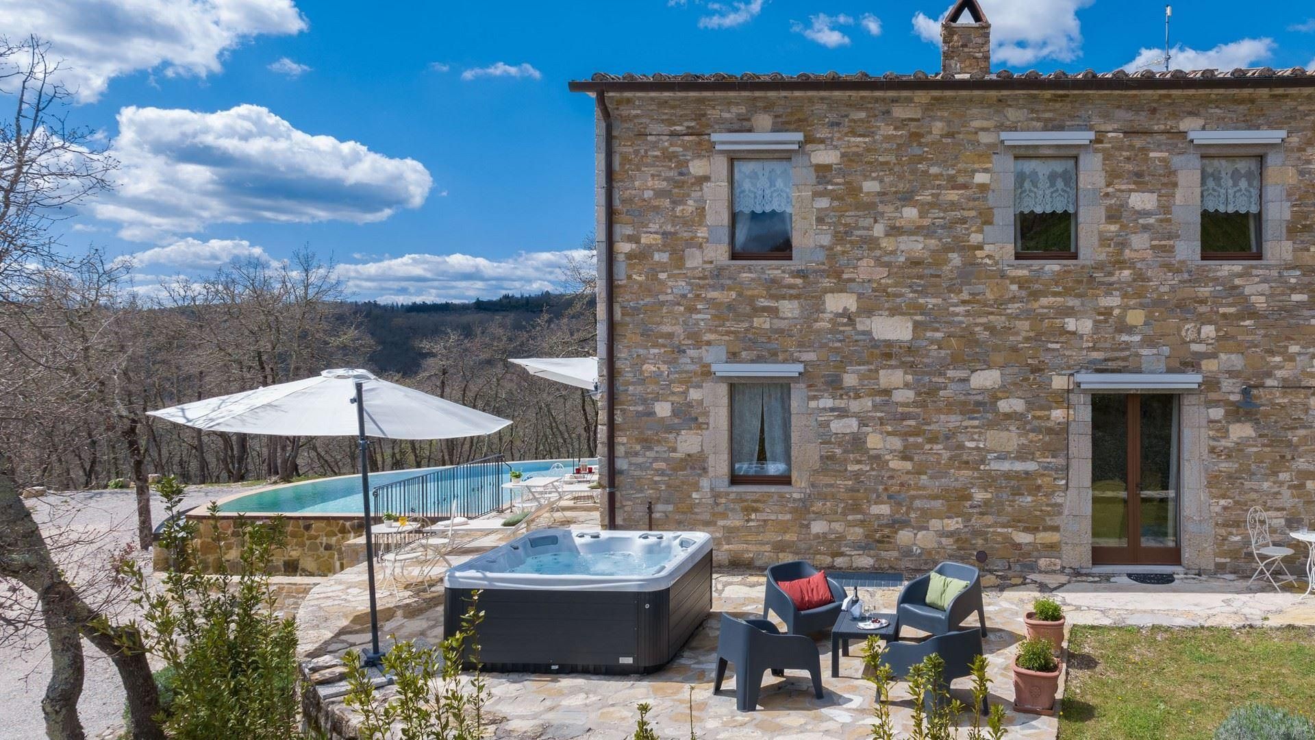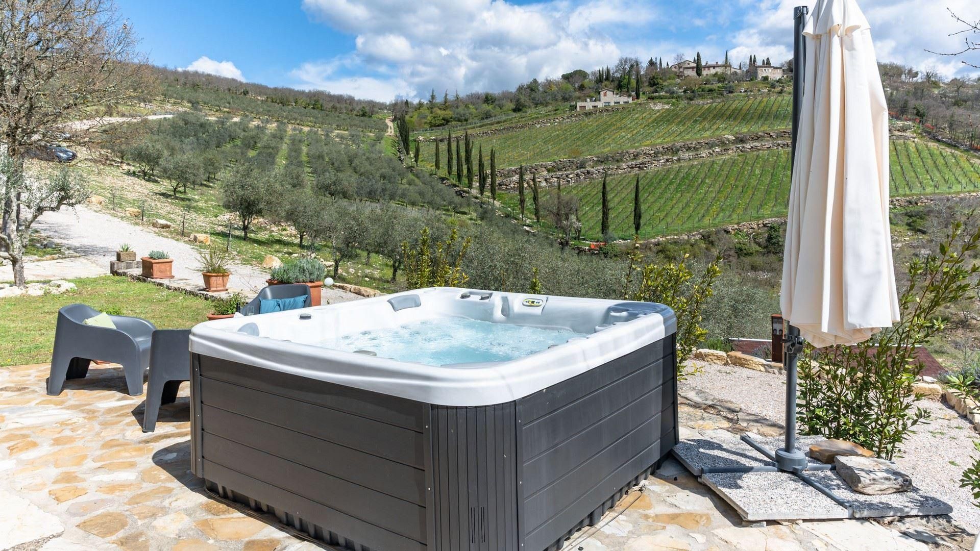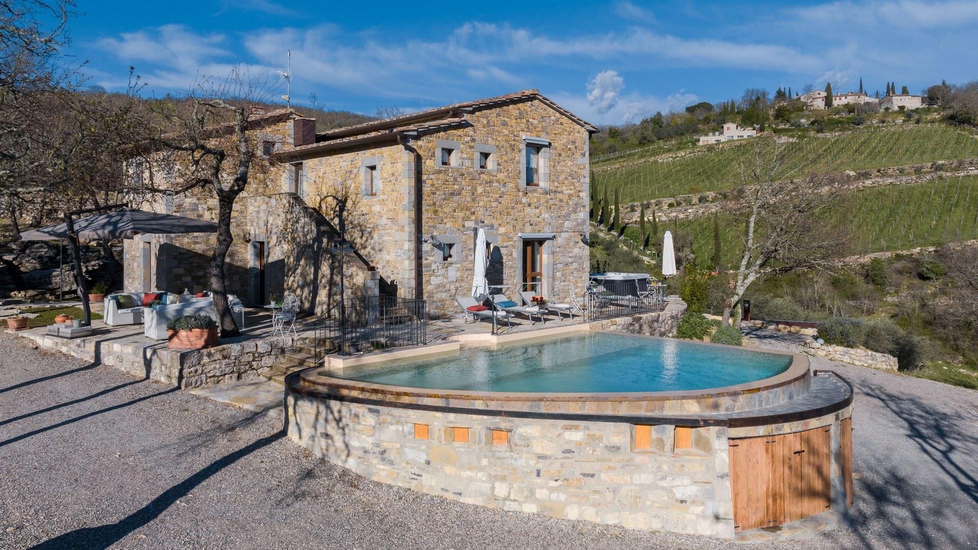 Sit back, relax and soak up the sunshine at this characterful villa in Chianti. It may be a little dated inside, but the twin apartment layout is perfect for families and groups that want their own space. Besides, the garden speaks for itself. Surrounded by vineyards and olive groves, you'll be treated to fantastic views day or night. There's a private pool, a hot tub, and a sauna for ultimate relaxation, while the terrace makes the perfect spot to enjoy an Italian feast. Paths lead down to freshwater springs with natural pools, but if you want to venture out, you'll find Radda in Chianti, Siena, and Florence all within easy driving distance.